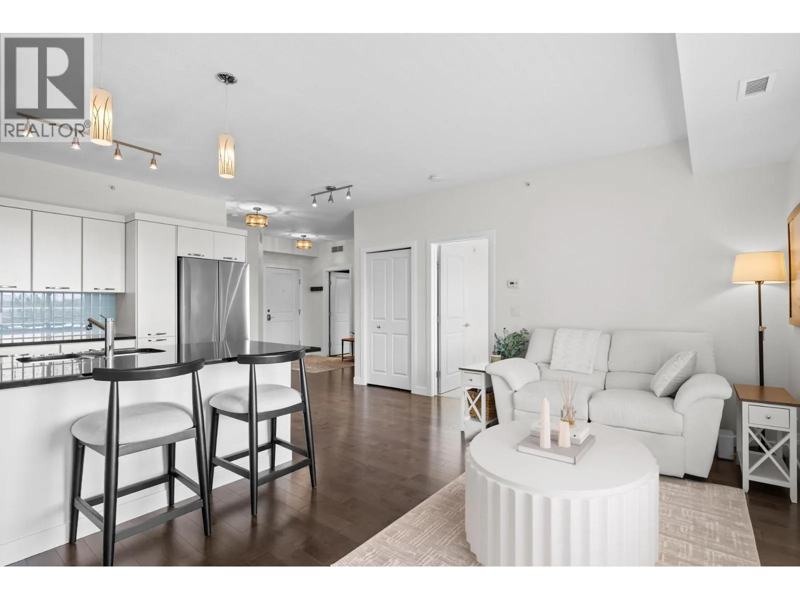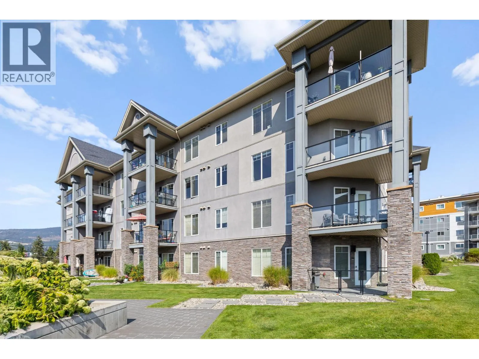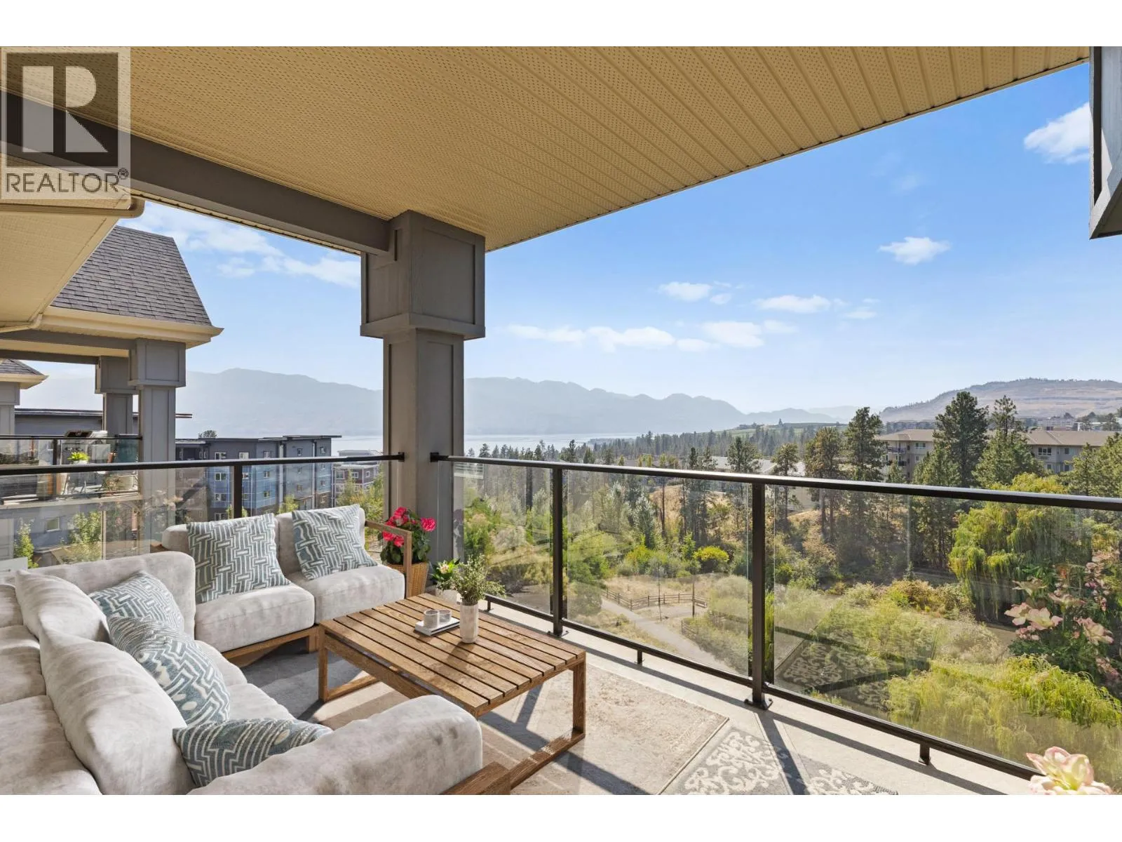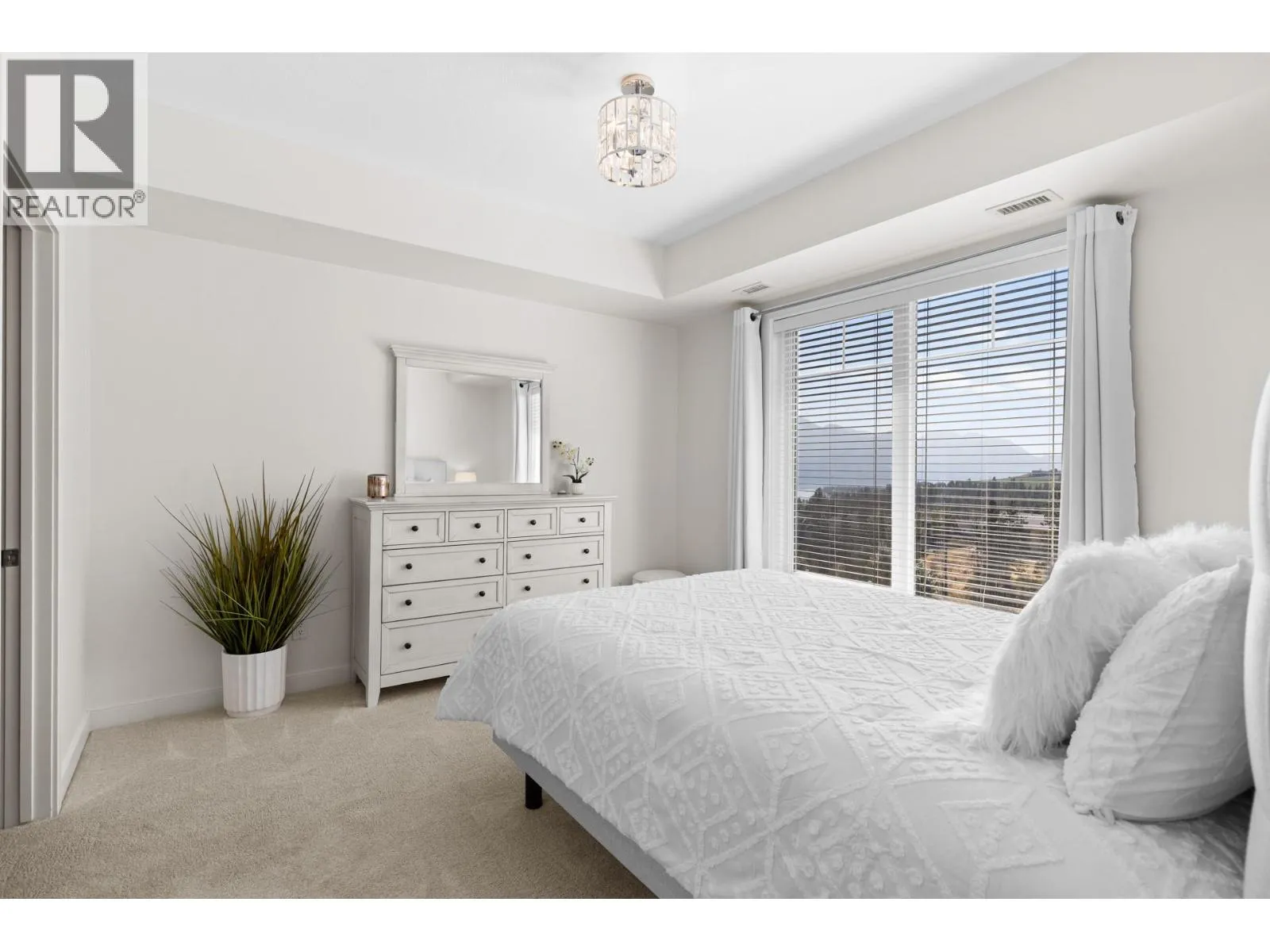 Perched on the top floor with sweeping views of the lake, mountains, and creek, this beautifully upgraded condo invites you to live the Okanagan lifestyle to its fullest. Wake up in a bright, open-concept home where high ceilings, hardwood floors, granite countertops, and modern cabinetry set the stage, and new carpet, appliances (with transferable warranty), fresh paint, new lighting and window blinds add a fresh touch. Step onto your spacious balcony with gas bbq hookup, and watch the sun rise over the hills or the light dance on the water. With central heat and A/C, comfort is yours in every season, and the well-run strata keeps life simple with affordable fees that include heat, water, and cooling! Your secure underground parking stall comes with a large attached storage locker, and guests will always find space in the abundant visitor parking. This pet-friendly (up to 40lbs and 16"" at the shoulder) building is surrounded by parks and green space, with a walking path that leads you straight to the beach! Just minutes from Two Eagles Golf, shops, restaurants, the aquatic centre, library, and only a short drive to Smith Creekâs legendary mountain bike trails, every convenience and adventure is close at hand. Freehold ownership offers peace of mind, while the second bedroom (without a window) is perfect for an office, guest room, or creative space. Here, youâll find not just a condo, but a home that blends comfort, community, and the beauty of West Kelowna all in one! (id:27476)