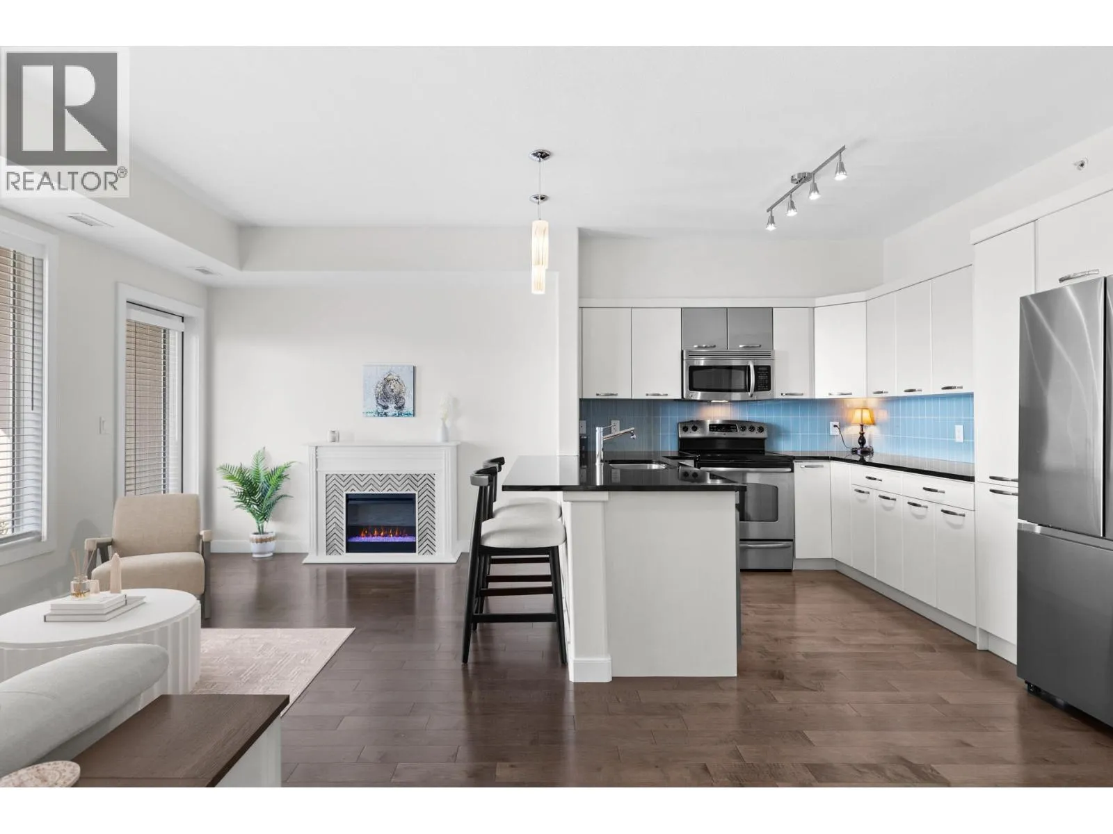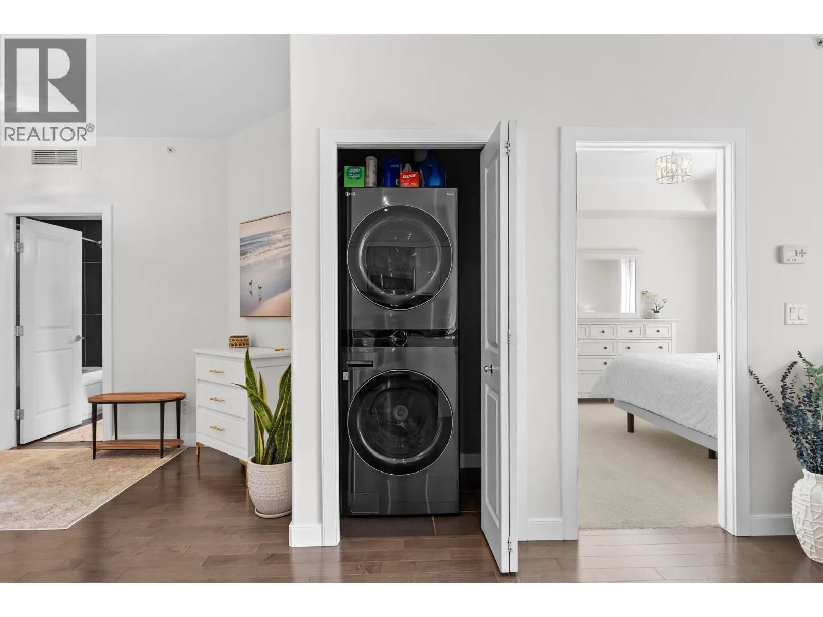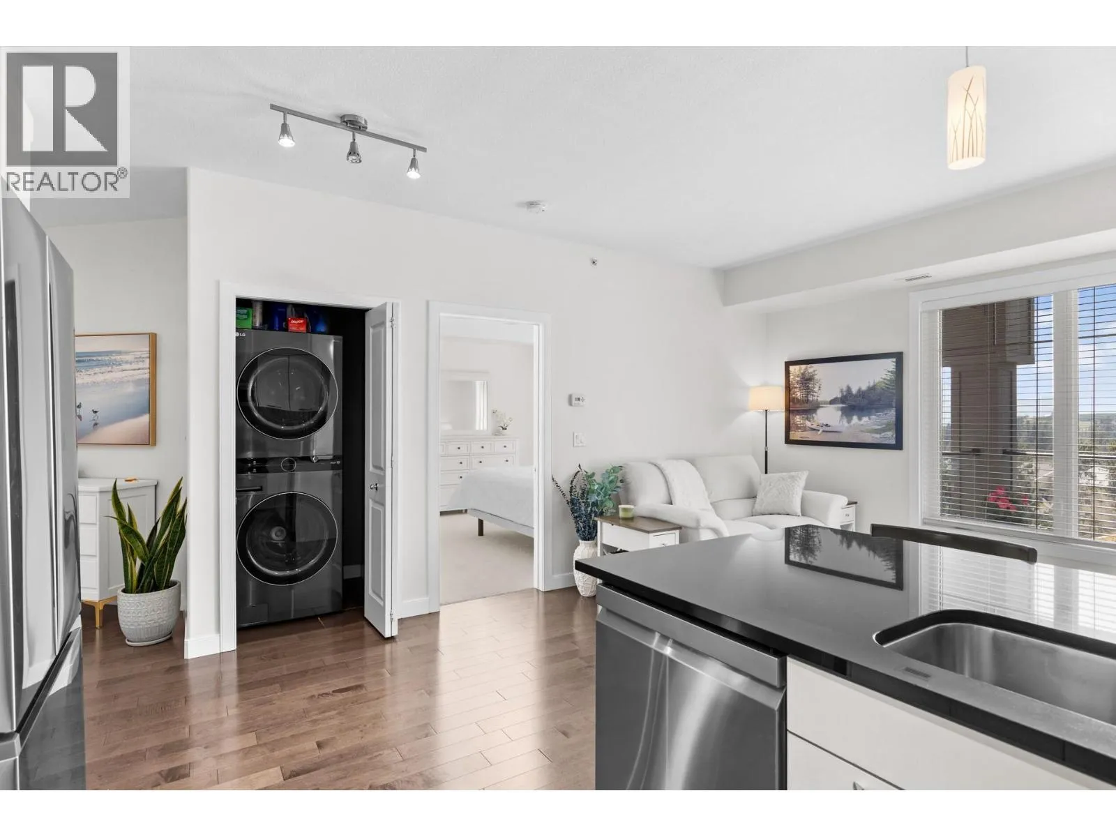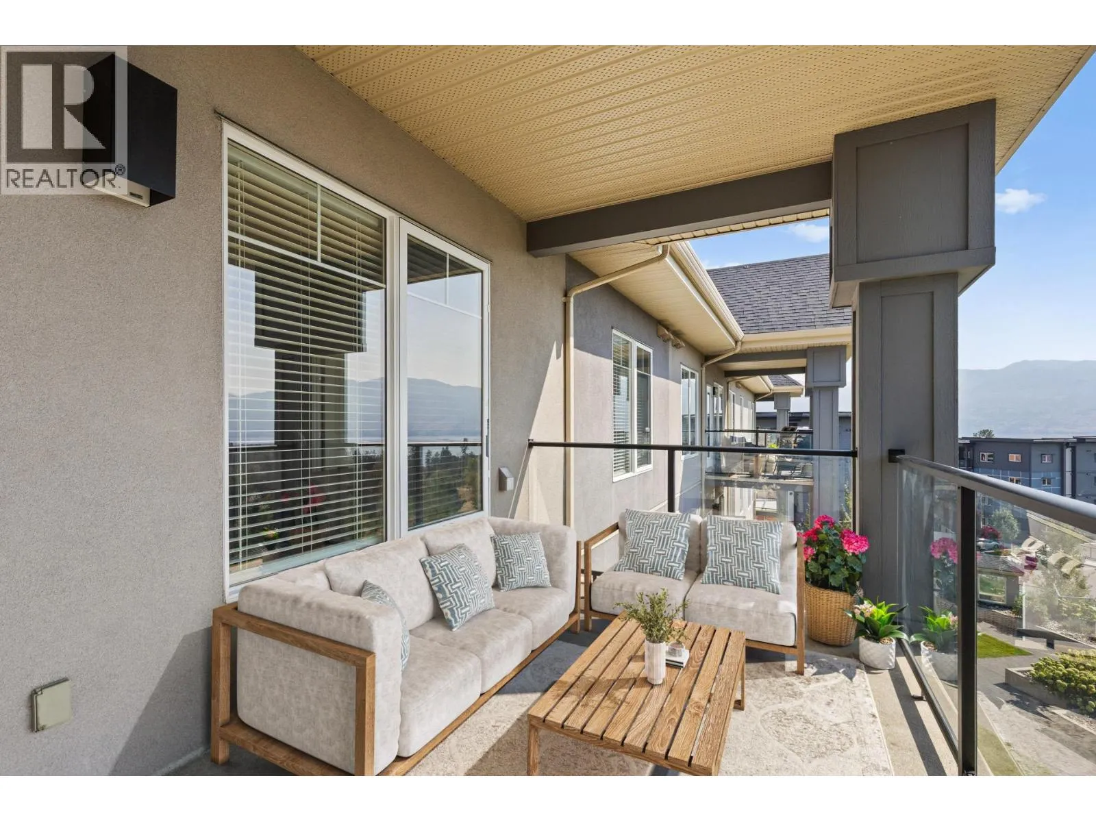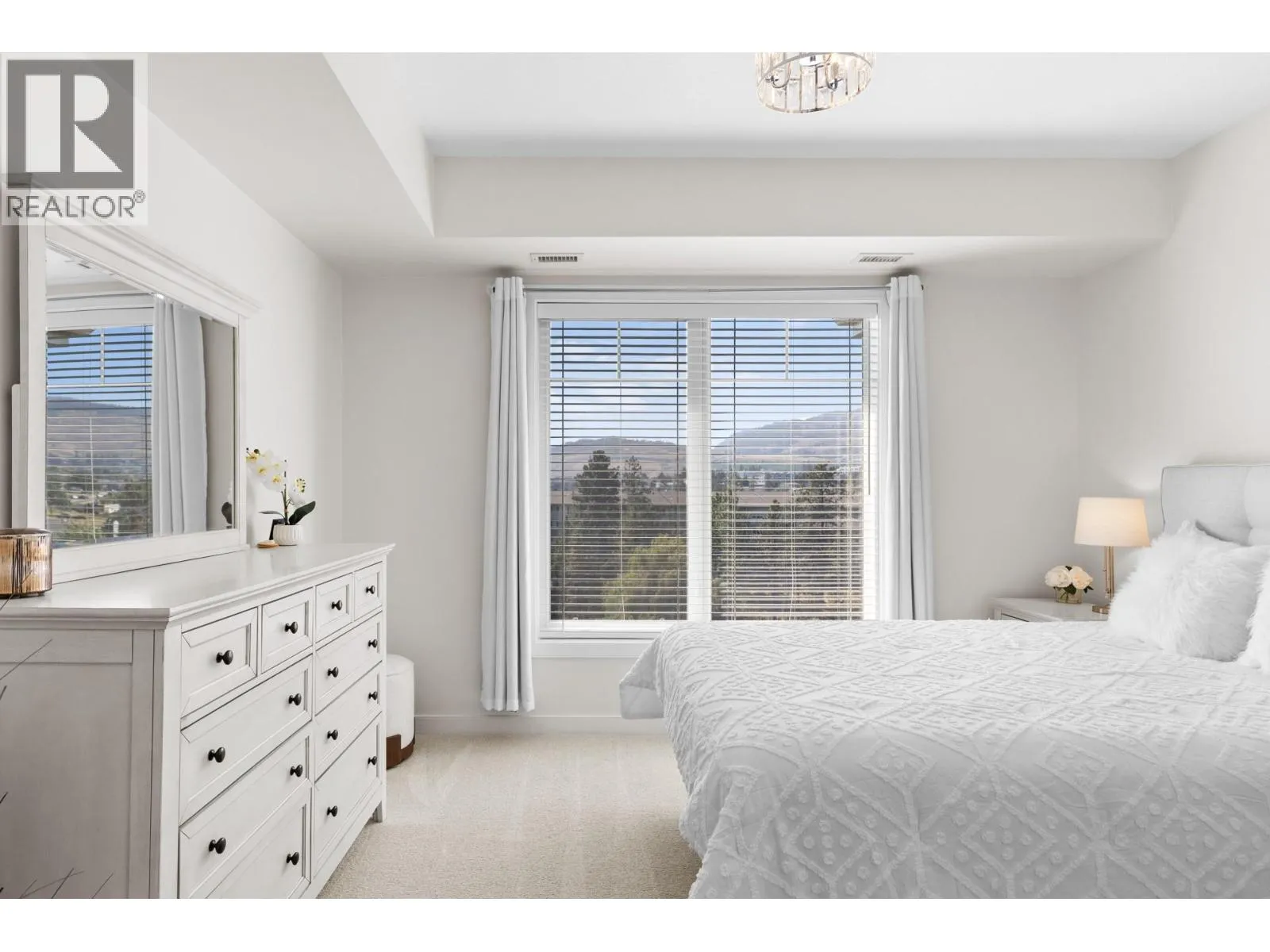 Perched on the top floor with sweeping views of the lake, mountains, and creek, this beautifully upgraded condo invites you to live the Okanagan lifestyle to its fullest. Wake up in a bright, open-concept home where high ceilings, hardwood floors, granite countertops, and modern cabinetry set the stage, and new carpet, appliances (with transferable warranty), fresh paint, new lighting and window blinds add a fresh touch. Step onto your spacious balcony with gas bbq hookup, and watch the sun rise over the hills or the light dance on the water. With central heat and A/C, comfort is yours in every season, and the well-run strata keeps life simple with affordable fees that include heat, water, and cooling! Your secure underground parking stall comes with a large attached storage locker, and guests will always find space in the abundant visitor parking. This pet-friendly (up to 40lbs and 16"" at the shoulder) building is surrounded by parks and green space, with a walking path that leads you straight to the beach! Just minutes from Two Eagles Golf, shops, restaurants, the aquatic centre, library, and only a short drive to Smith Creekâs legendary mountain bike trails, every convenience and adventure is close at hand. Freehold ownership offers peace of mind, while the second bedroom (without a window) is perfect for an office, guest room, or creative space. Here, youâll find not just a condo, but a home that blends comfort, community, and the beauty of West Kelowna all in one! (id:27476)