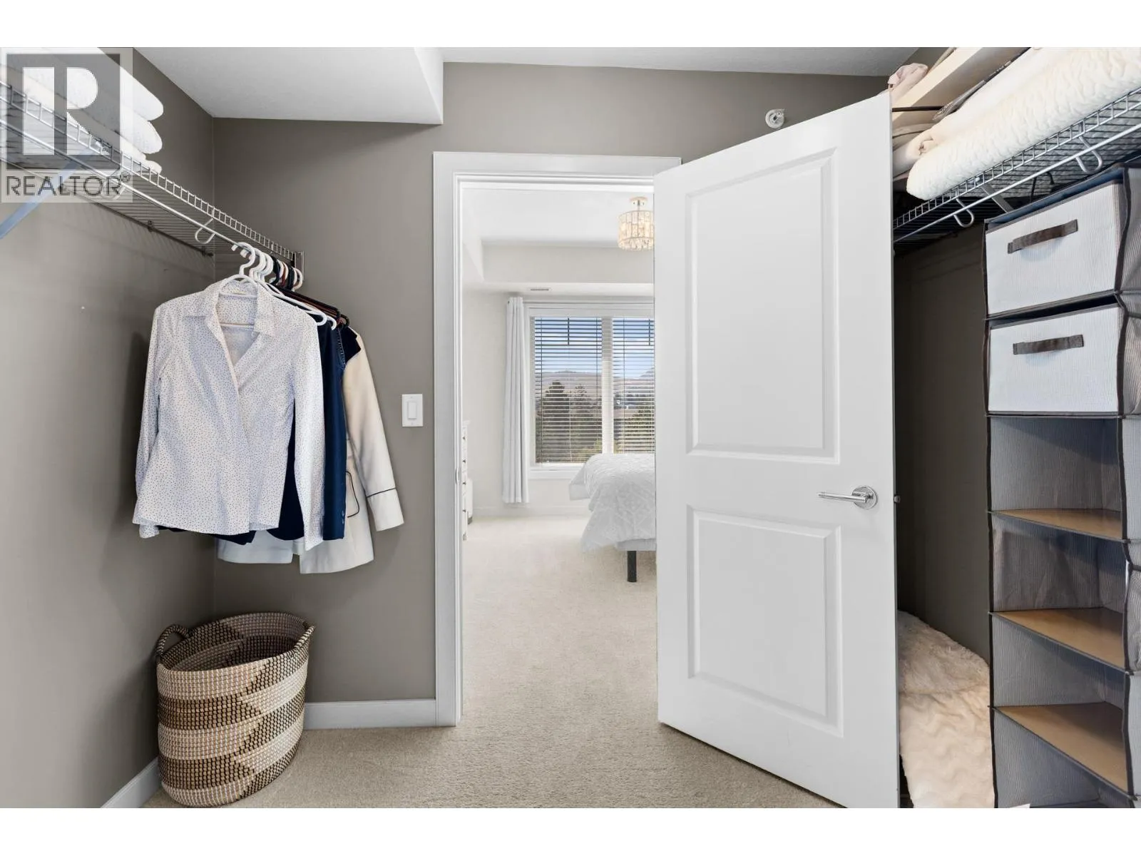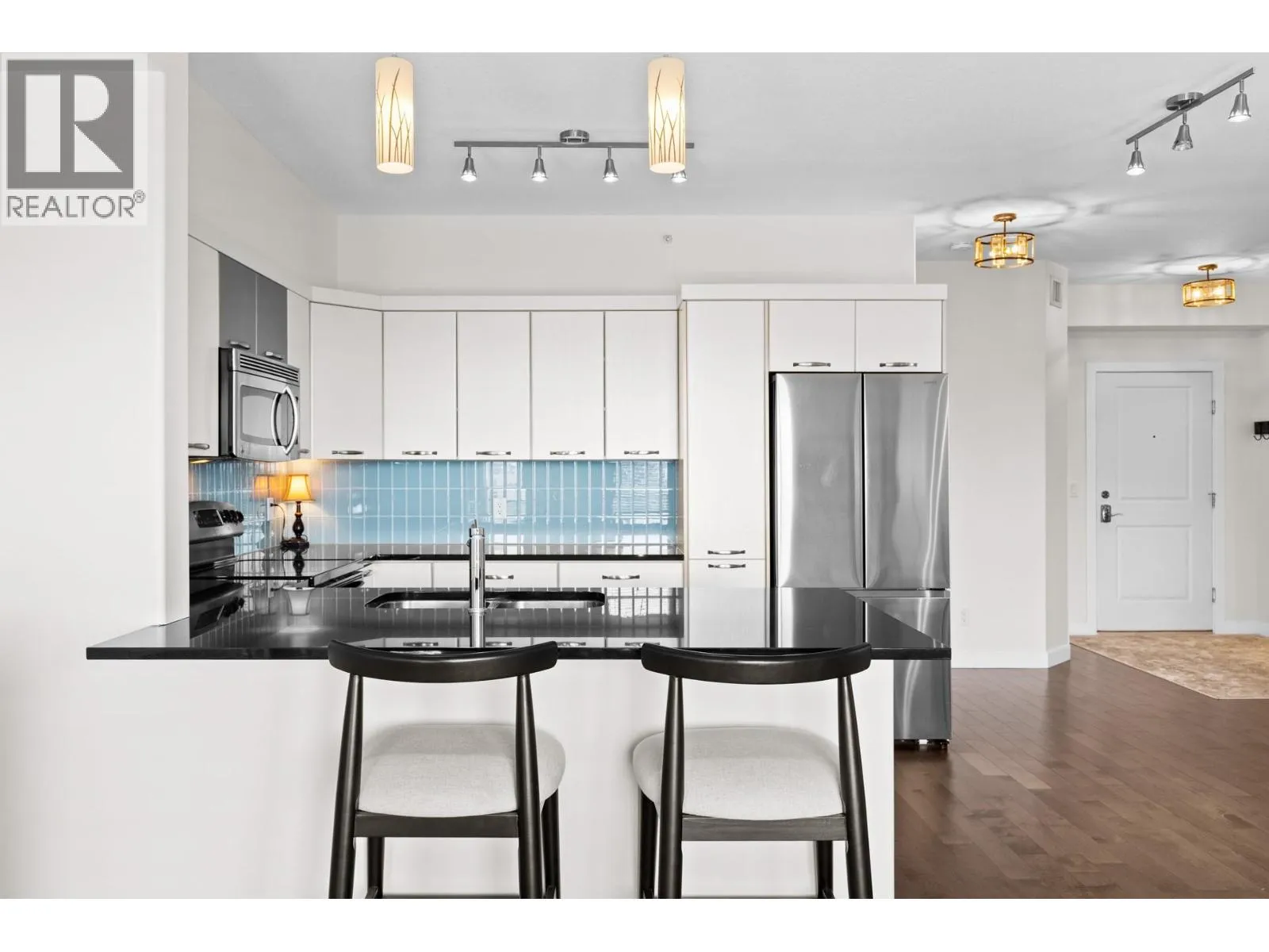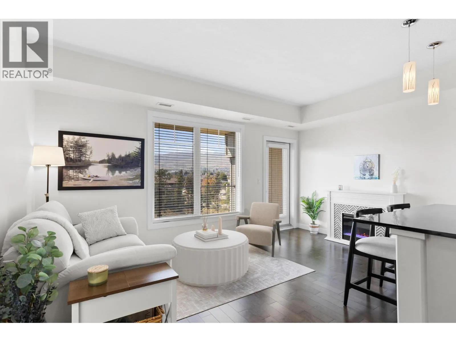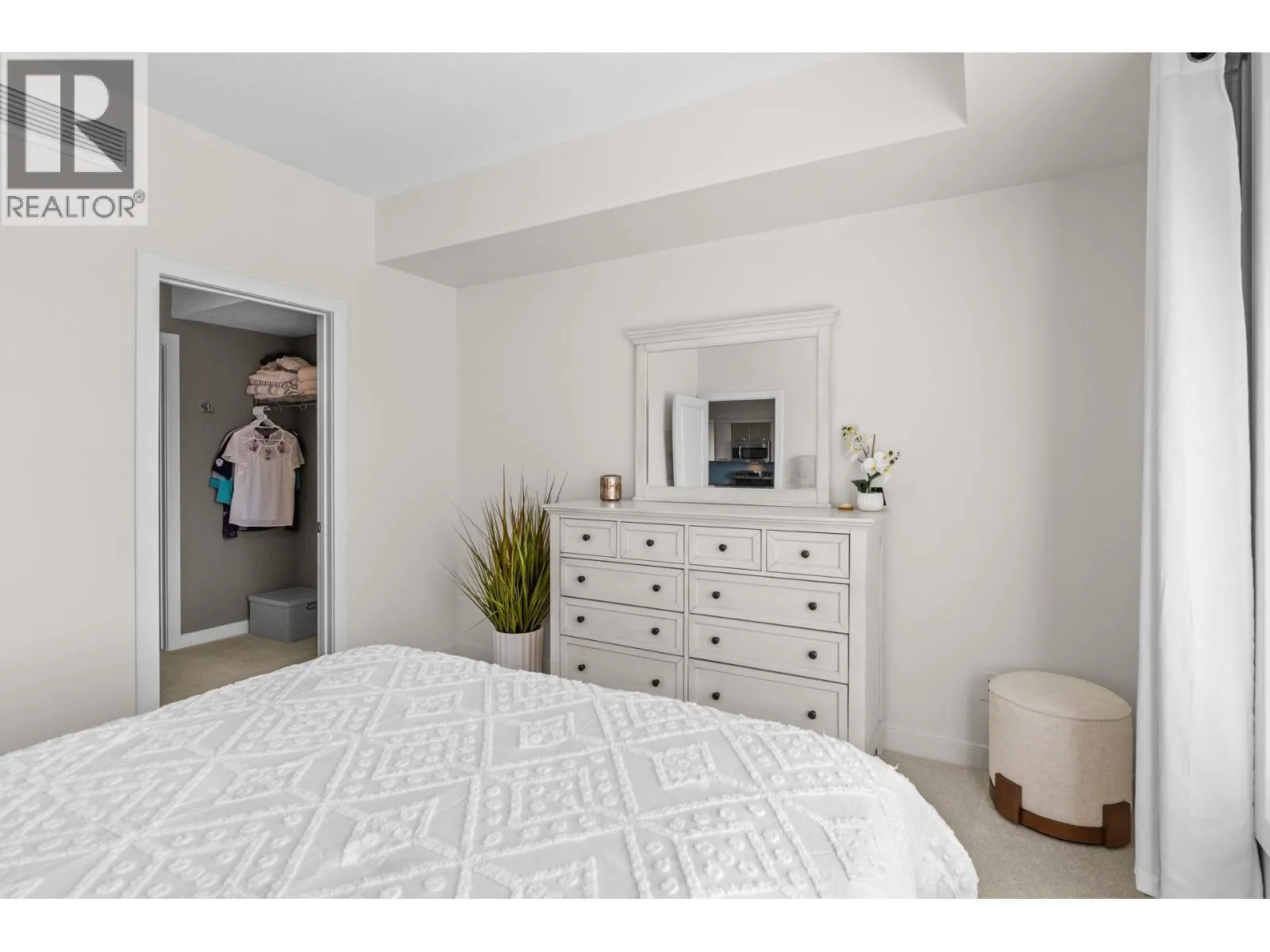 Perched on the top floor with sweeping views of the lake, mountains, and creek, this beautifully upgraded condo invites you to live the Okanagan lifestyle to its fullest. Wake up in a bright, open-concept home where high ceilings, hardwood floors, granite countertops, and modern cabinetry set the stage, and new carpet, appliances (with transferable warranty), fresh paint, new lighting and window blinds add a fresh touch. Step onto your spacious balcony with gas bbq hookup, and watch the sun rise over the hills or the light dance on the water. With central heat and A/C, comfort is yours in every season, and the well-run strata keeps life simple with affordable fees that include heat, water, and cooling! Your secure underground parking stall comes with a large attached storage locker, and guests will always find space in the abundant visitor parking. This pet-friendly (up to 40lbs and 16"" at the shoulder) building is surrounded by parks and green space, with a walking path that leads you straight to the beach! Just minutes from Two Eagles Golf, shops, restaurants, the aquatic centre, library, and only a short drive to Smith Creekâs legendary mountain bike trails, every convenience and adventure is close at hand. Freehold ownership offers peace of mind, while the second bedroom (without a window) is perfect for an office, guest room, or creative space. Here, youâll find not just a condo, but a home that blends comfort, community, and the beauty of West Kelowna all in one! (id:27476)