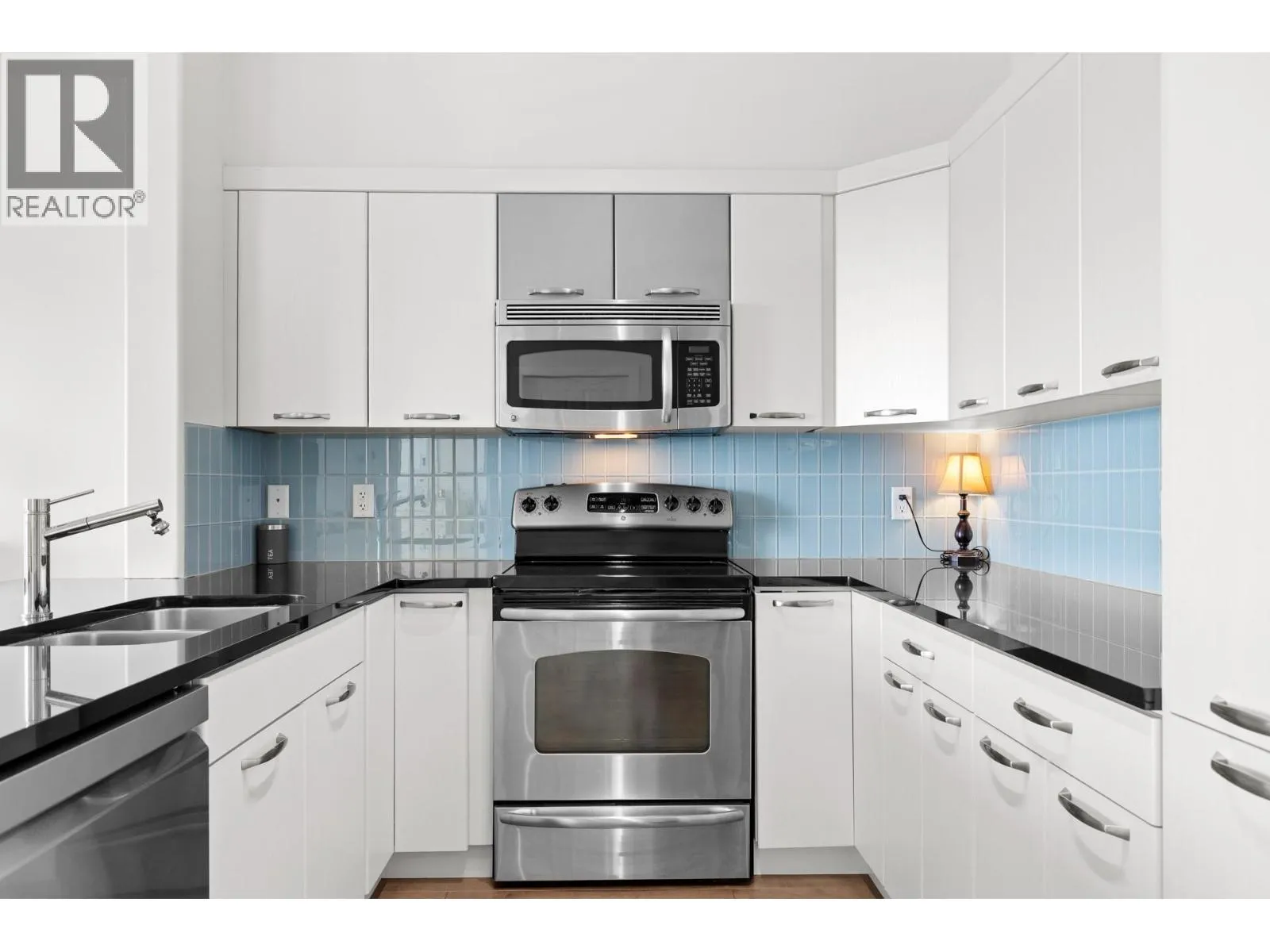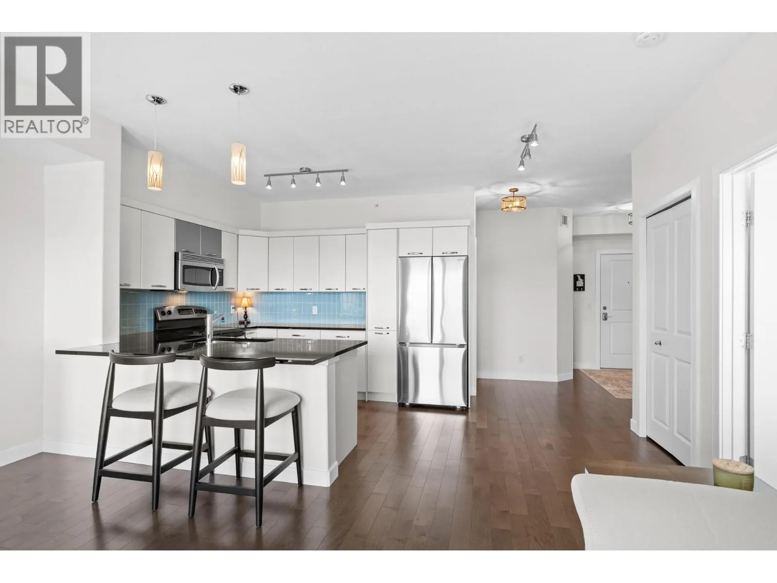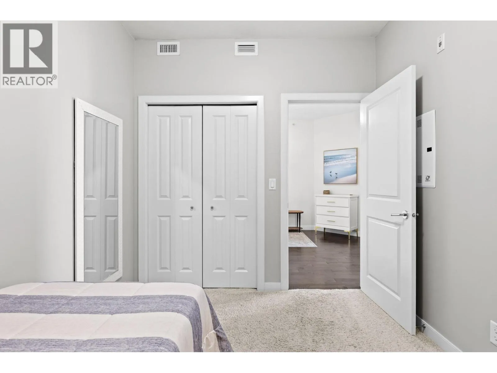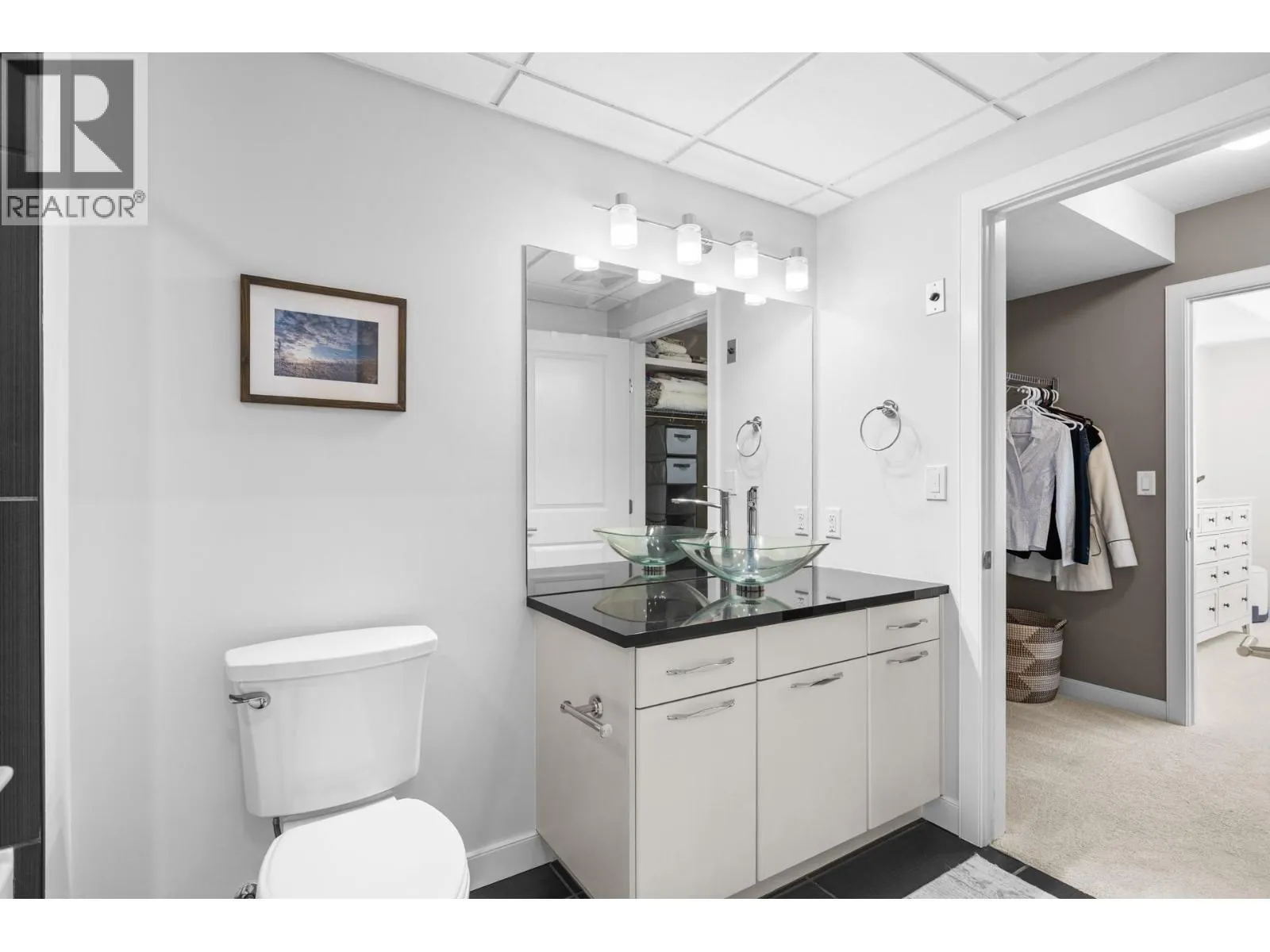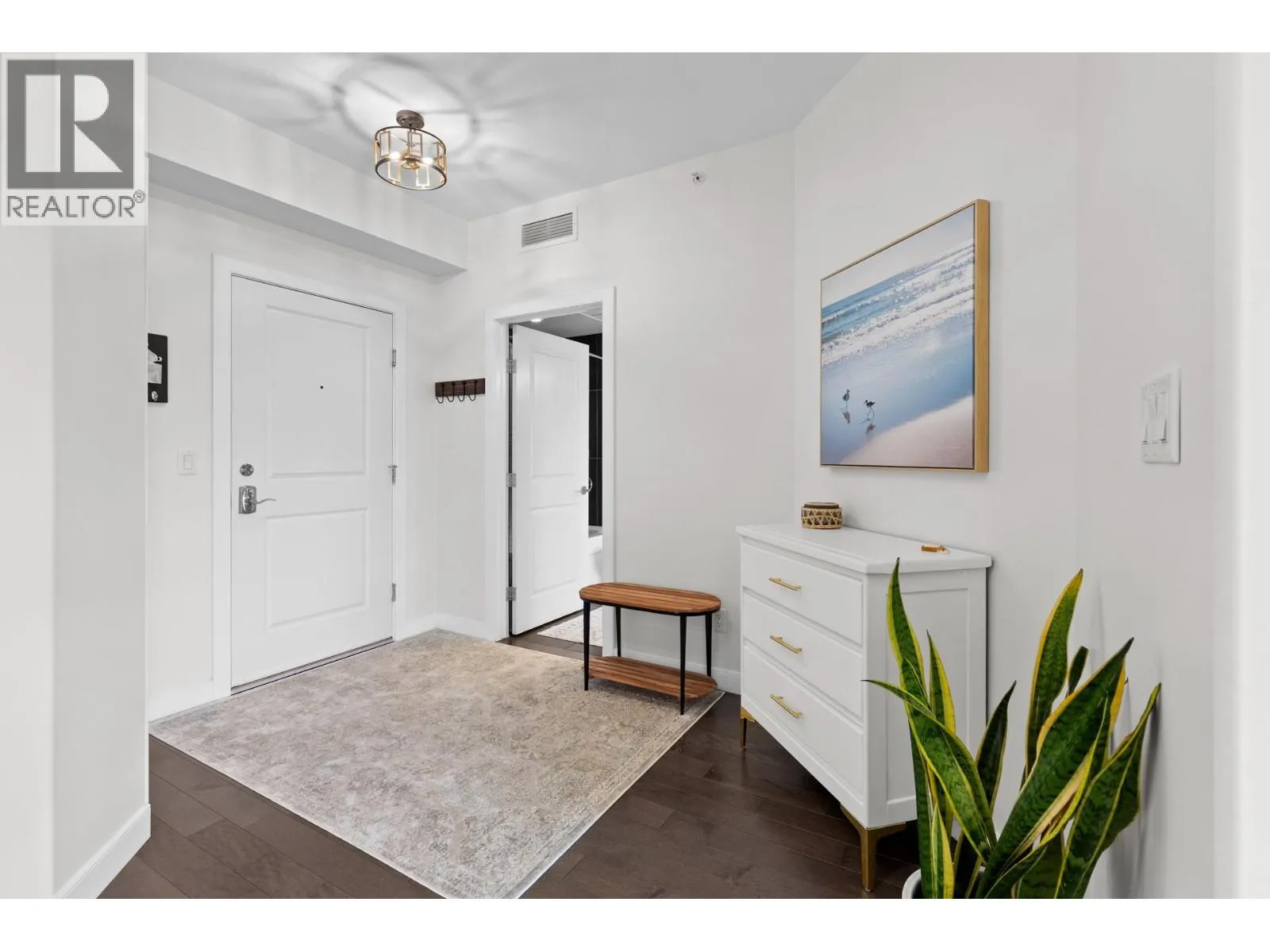 Perched on the top floor with sweeping views of the lake, mountains, and creek, this beautifully upgraded condo invites you to live the Okanagan lifestyle to its fullest. Wake up in a bright, open-concept home where high ceilings, hardwood floors, granite countertops, and modern cabinetry set the stage, and new carpet, appliances (with transferable warranty), fresh paint, new lighting and window blinds add a fresh touch. Step onto your spacious balcony with gas bbq hookup, and watch the sun rise over the hills or the light dance on the water. With central heat and A/C, comfort is yours in every season, and the well-run strata keeps life simple with affordable fees that include heat, water, and cooling! Your secure underground parking stall comes with a large attached storage locker, and guests will always find space in the abundant visitor parking. This pet-friendly (up to 40lbs and 16"" at the shoulder) building is surrounded by parks and green space, with a walking path that leads you straight to the beach! Just minutes from Two Eagles Golf, shops, restaurants, the aquatic centre, library, and only a short drive to Smith Creekâs legendary mountain bike trails, every convenience and adventure is close at hand. Freehold ownership offers peace of mind, while the second bedroom (without a window) is perfect for an office, guest room, or creative space. Here, youâll find not just a condo, but a home that blends comfort, community, and the beauty of West Kelowna all in one! (id:27476)