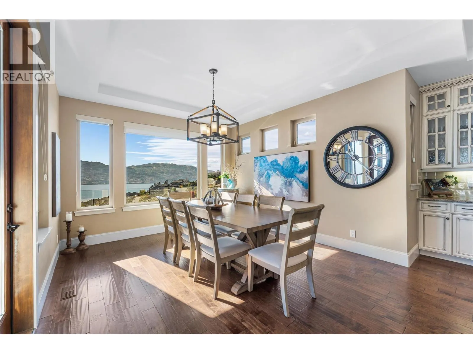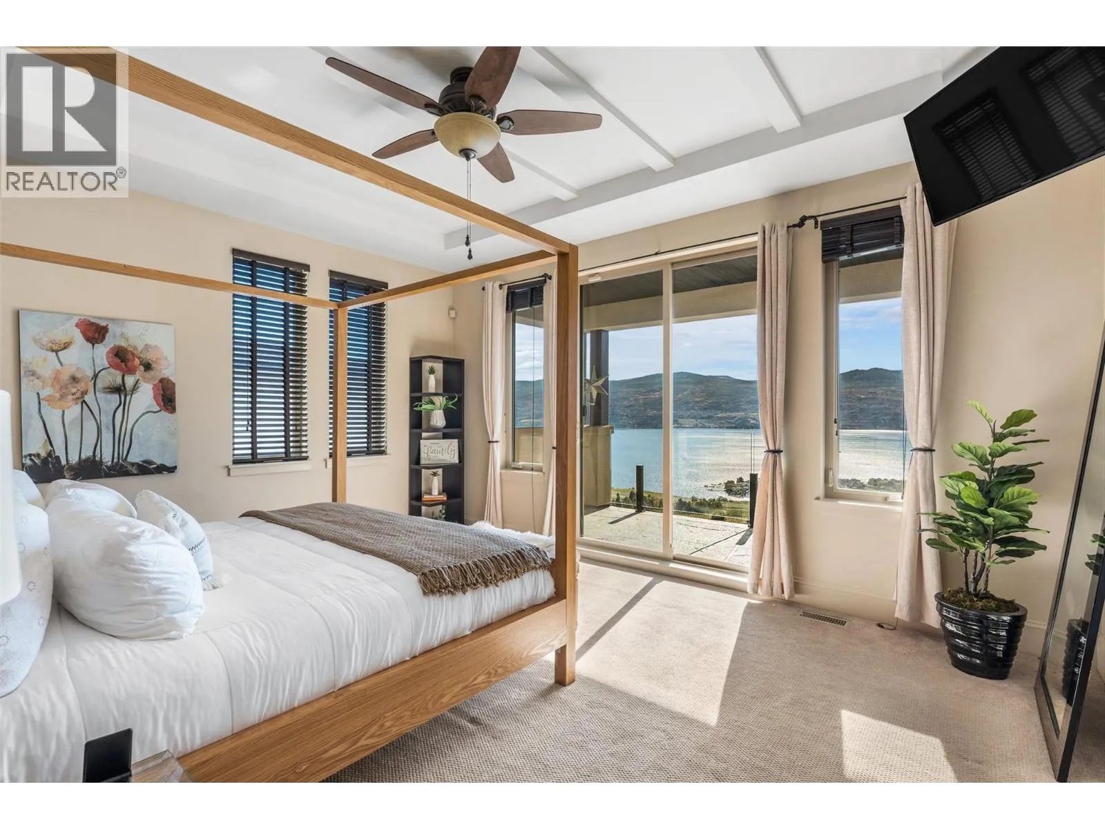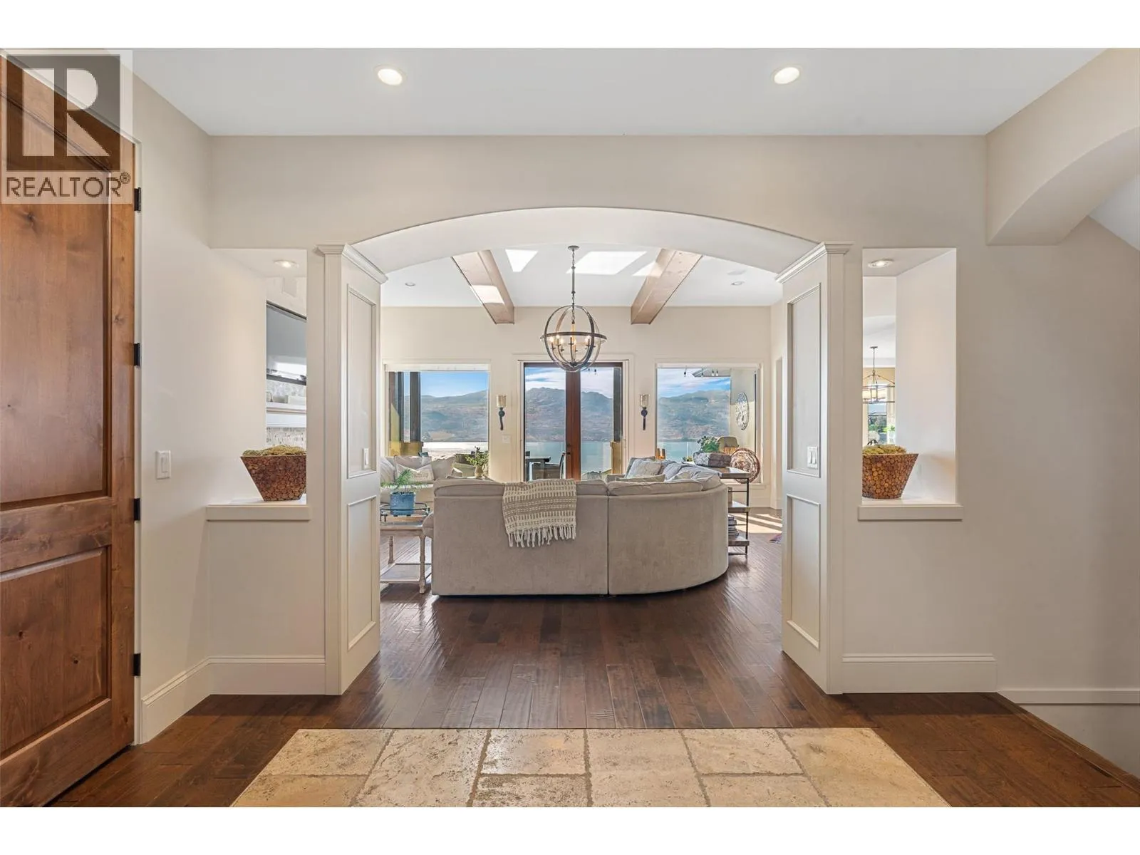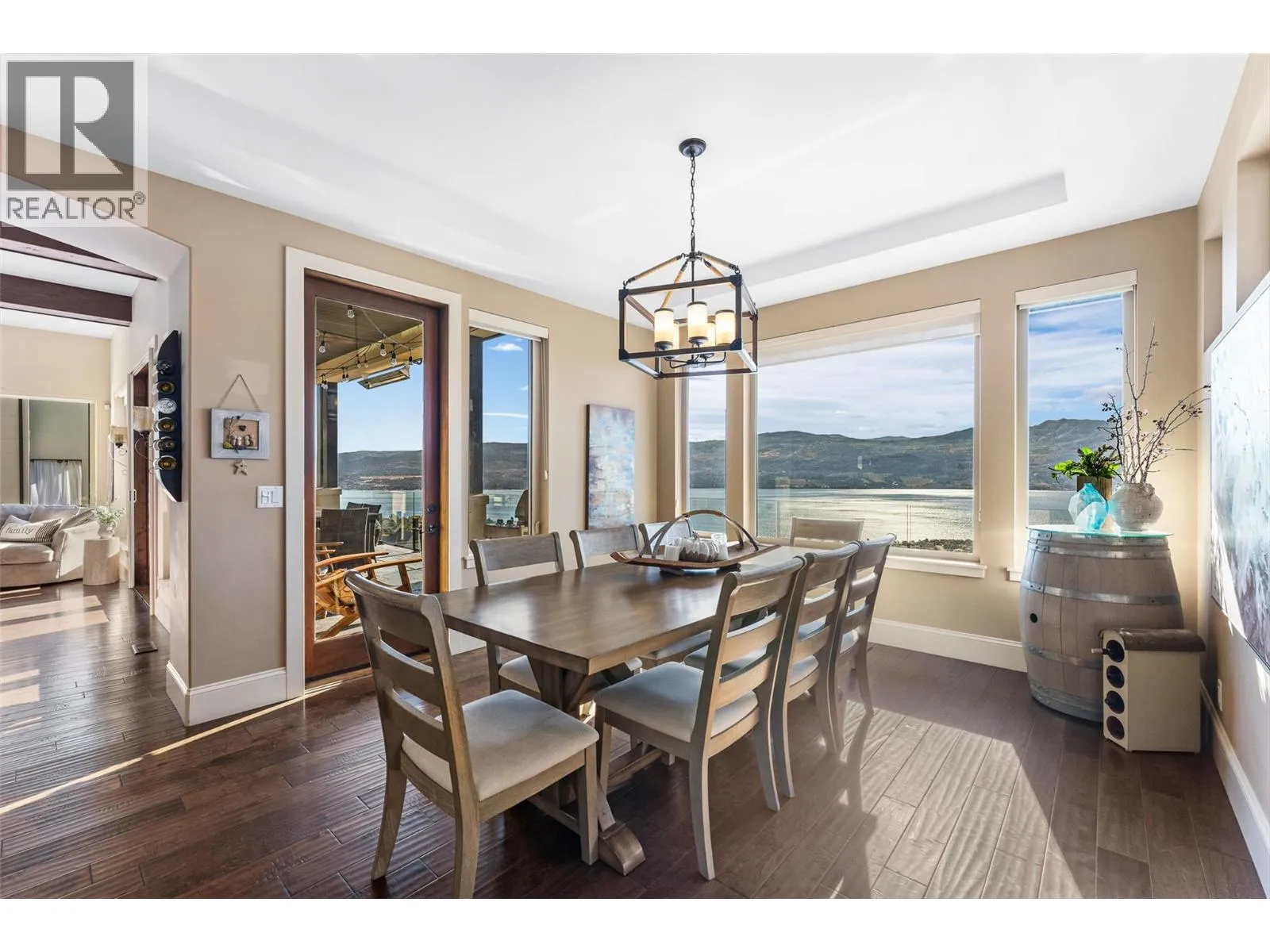Set in one of West Kelownaâs most coveted neighbourhoods, this home blends timeless design with sweeping views of Okanagan Lake. It features 4 bedrooms plus a self-contained studio suiteâideal for extended family or guests. Inside, soaring ceilings with timber beams, and stone accents create an atmosphere both warm and sophisticated. The open-concept great room flows seamlessly to a covered lakeview deck with wood-inlay ceilings, and infrared heatersâperfect for year-round enjoyment. This kitchen showcases hardwood floors, granite countertops, a contrasting island with seating, shaker-style cabinetry, and premium Bosch and Bertazzoni appliances, all connected to the living area. The entire upper level is dedicated to the primary suite, a private sanctuary offering two walk-in closets and a spa-inspired ensuite with heated travertine floors, a soaker tub, and walk-in shower. Step onto the covered balcony to take in panoramic lake and valley vistas. The lower level is designed for entertaining, complete with a bright recreation room, custom bar, and walkout access to the pool terrace. Outdoors, relax beside the pool, soak in the hot tub, or gather around the firepit, all framed by manicured landscaping and tranquil water features. Oversized double garage, abundant storage, and a tiled dog wash. Every detail has been carefully considered, creating a residence that balances refined design, modern comfort, and the unmatched lifestyle of Lakeview Heights. (id:27476)
