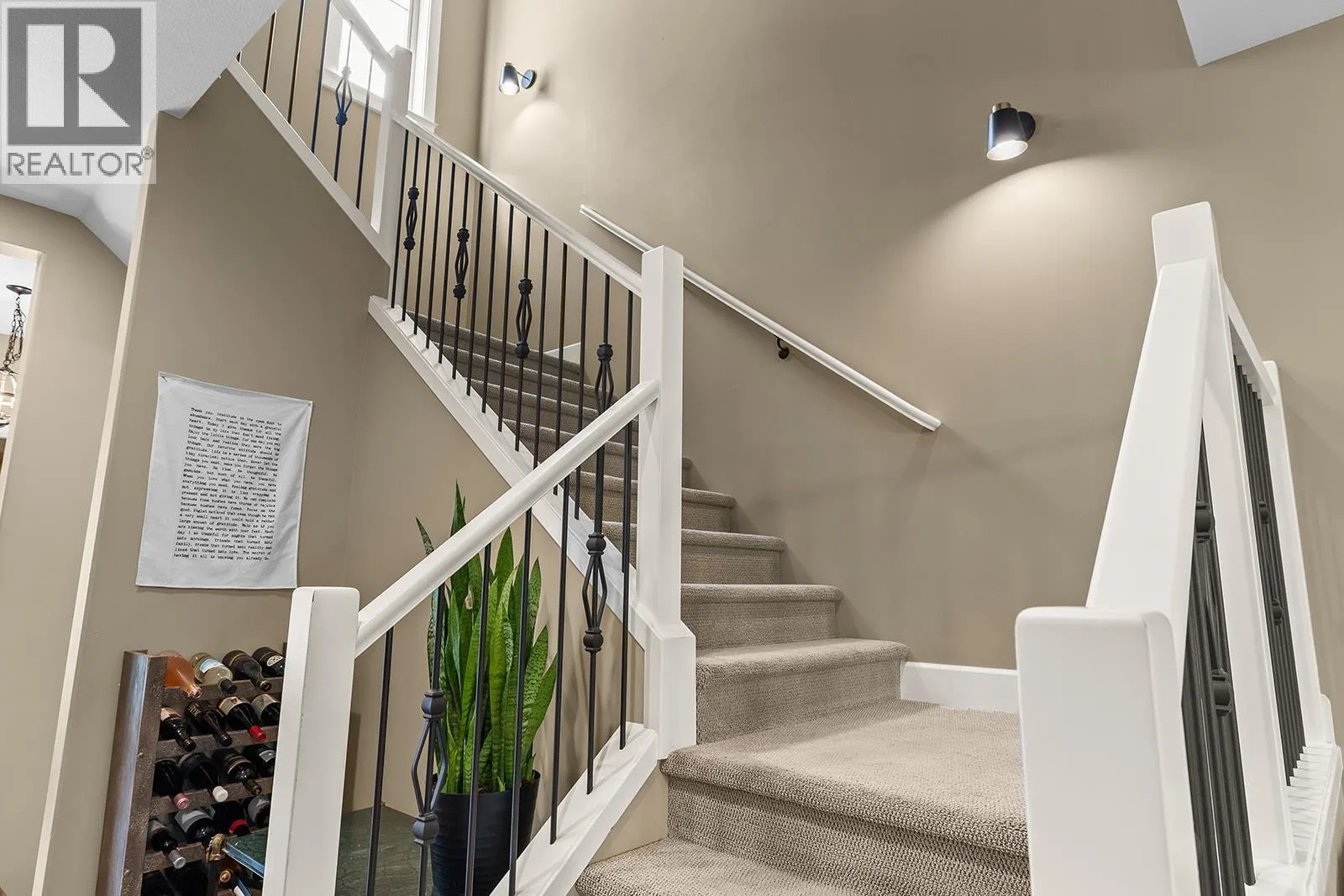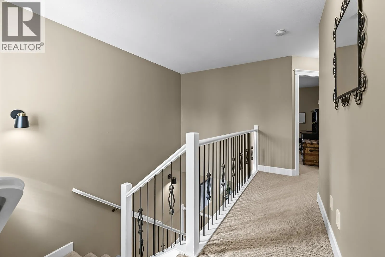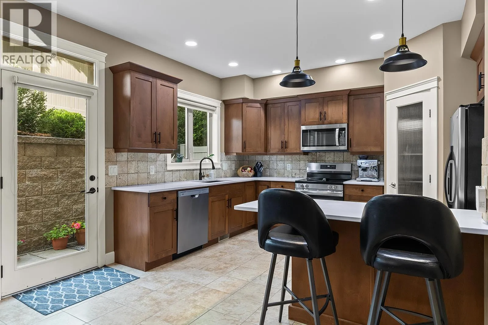 This is currently the only 4 bed 4 bath and largest 4 bed townhouse on the market in Shannon Lake! Tucked at the end of a quiet cul-de-sac in an intimate 20-home complex, where neighbours wave hello, pets are welcome, and a true sense of community fills the air. Enjoy a family hike on the hiking trails just behind the property, or a round of golf at Shannon Lake Golf Course which borders the complex. Sit with a glass of wine on the deck on a peaceful evening and watch the stars. All this, only 15 minutes to Downtown Kelowna, 9 minutes to grocery stores and 6 minutes to multiple schools. Inside, has been thoughtfully refreshed. Quartz counters in the kitchen and bathrooms, new sinks, fixtures, and stylish lighting throughout. Hardwood floors add warmth to the main level, where the living and dining spaces flow onto a covered balcony â the perfect spot to enjoy morning coffee. A private patio off the kitchen offers a space for herbs, flowers, and a BBQ! The layout is designed with families in mind: upstairs, has three bedrooms, including a large primary with walk-in closet, en-suite, and private balcony to soak up sunset views. On the lower level, the 4th bedroom with ensuite makes an ideal guest space, teen hideaway, or office, with direct access to the double car garage. The complex also offers a LARGE grassy dog run/ picnic area overlooking the golf course. Perfect for enjoying pleasant evenings with your furry friend. RV parking space available as well! Come and see!! (id:27476)