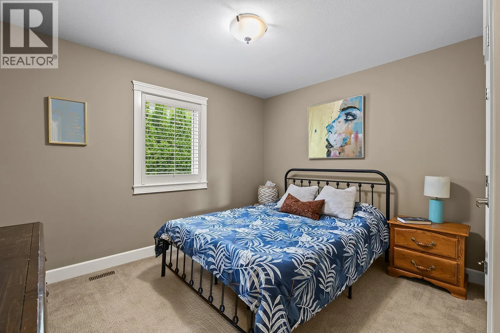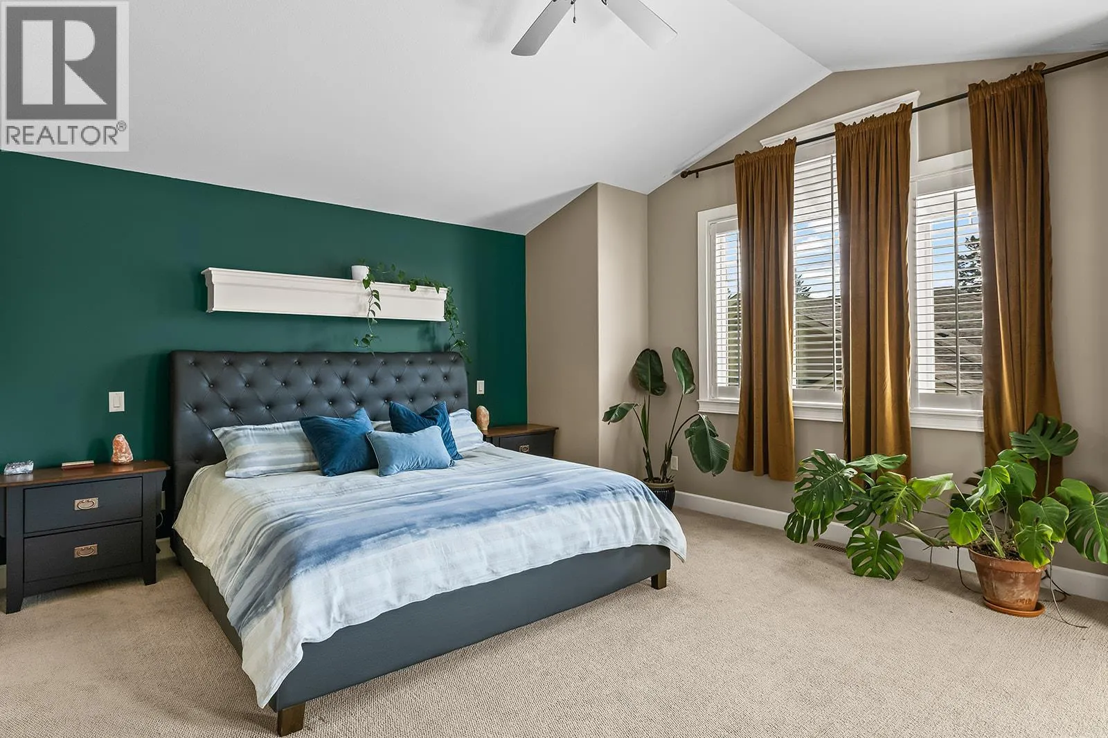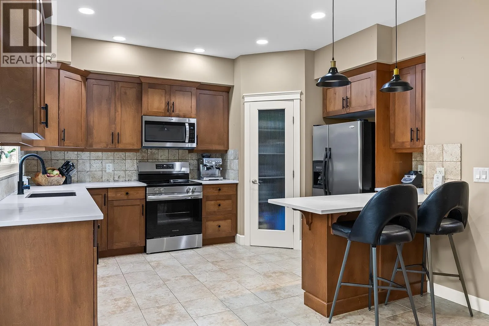 This is currently the only 4 bed 4 bath and largest 4 bed townhouse on the market in Shannon Lake! Tucked at the end of a quiet cul-de-sac in an intimate 20-home complex, where neighbours wave hello, pets are welcome, and a true sense of community fills the air. Enjoy a family hike on the hiking trails just behind the property, or a round of golf at Shannon Lake Golf Course which borders the complex. Sit with a glass of wine on the deck on a peaceful evening and watch the stars. All this, only 15 minutes to Downtown Kelowna, 9 minutes to grocery stores and 6 minutes to multiple schools. Inside, has been thoughtfully refreshed. Quartz counters in the kitchen and bathrooms, new sinks, fixtures, and stylish lighting throughout. Hardwood floors add warmth to the main level, where the living and dining spaces flow onto a covered balcony â the perfect spot to enjoy morning coffee. A private patio off the kitchen offers a space for herbs, flowers, and a BBQ! The layout is designed with families in mind: upstairs, has three bedrooms, including a large primary with walk-in closet, en-suite, and private balcony to soak up sunset views. On the lower level, the 4th bedroom with ensuite makes an ideal guest space, teen hideaway, or office, with direct access to the double car garage. The complex also offers a LARGE grassy dog run/ picnic area overlooking the golf course. Perfect for enjoying pleasant evenings with your furry friend. RV parking space available as well! Come and see!! (id:27476)