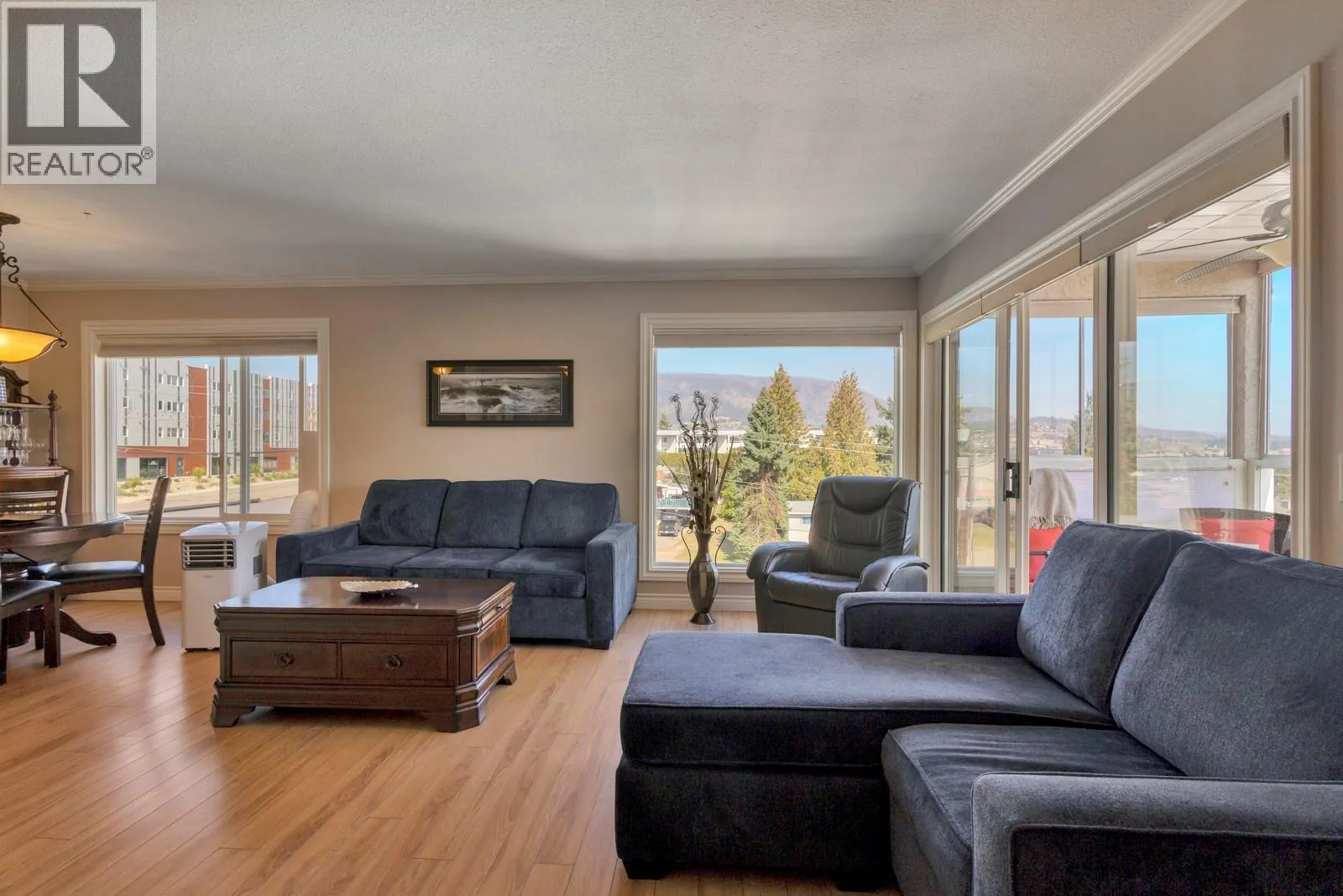 Welcome to lakeview living designed with comfort and ease in mind. This exclusive +55 community offers a rare top-floor, corner unit where every main roomâincluding both bedroomsâframes sweeping lake views. At over 1,060 square feet, this two-bedroom, two-bath home balances space for everyday living with thoughtful extras for visiting guests or a flexible office. A clever murphy bed in the den ensures hosting is easy without sacrificing functionality. Enjoy morning coffee or evening sunsets on the private enclosed deck, where a handy storage unit keeps everything close at hand. Underground parking adds peace of mind, while the quiet corner position enhances both privacy and tranquility. With gardens, community activities, and shopping just minutes away, daily errands and social opportunities are simple. And yes, you can finally say your home has âviews from every angleââwithout exaggeration. Utilities included in your strata fees for double the savings! Whether youâre downsizing, rightsizing, or simply prioritizing quality of life, this residence is a smart investment in both comfort and lifestyle. (id:27476)