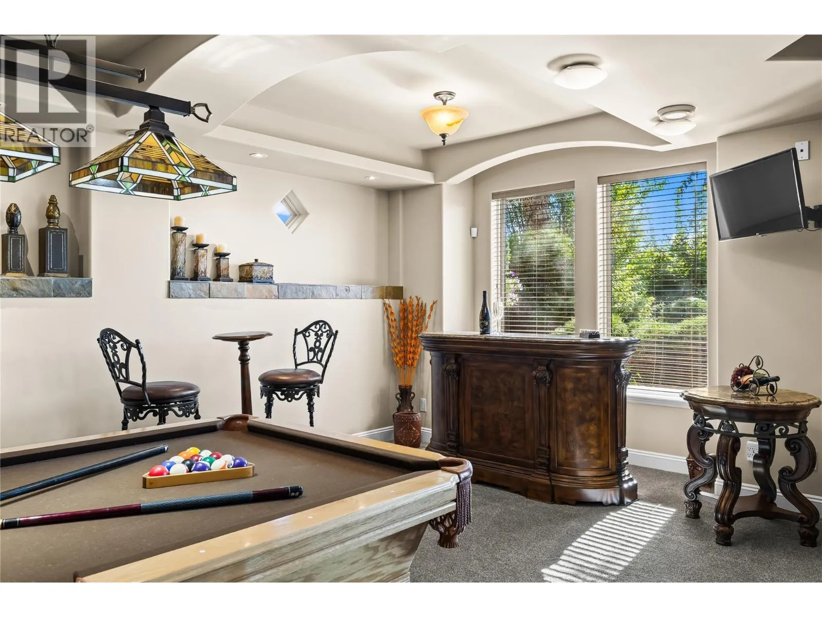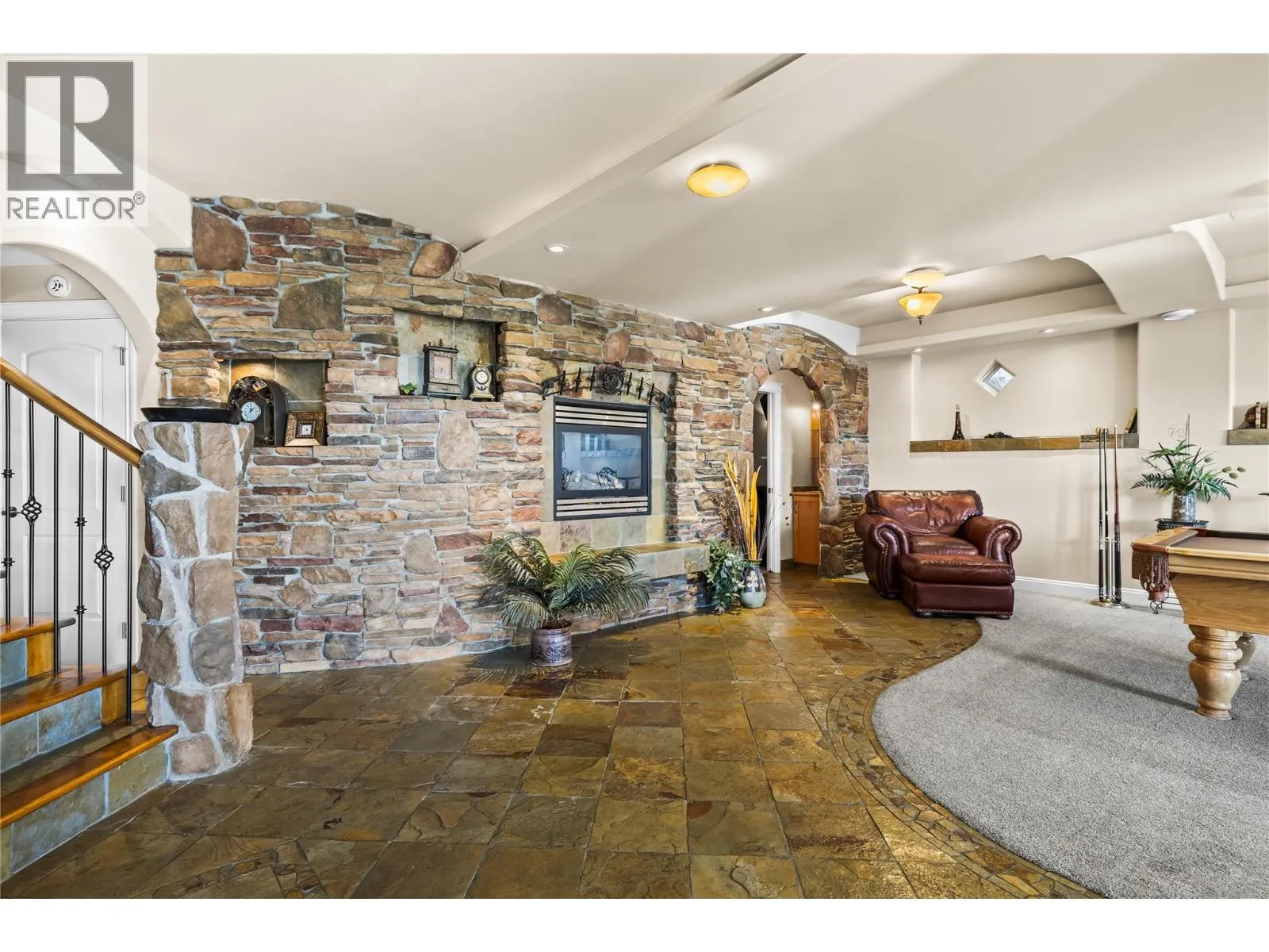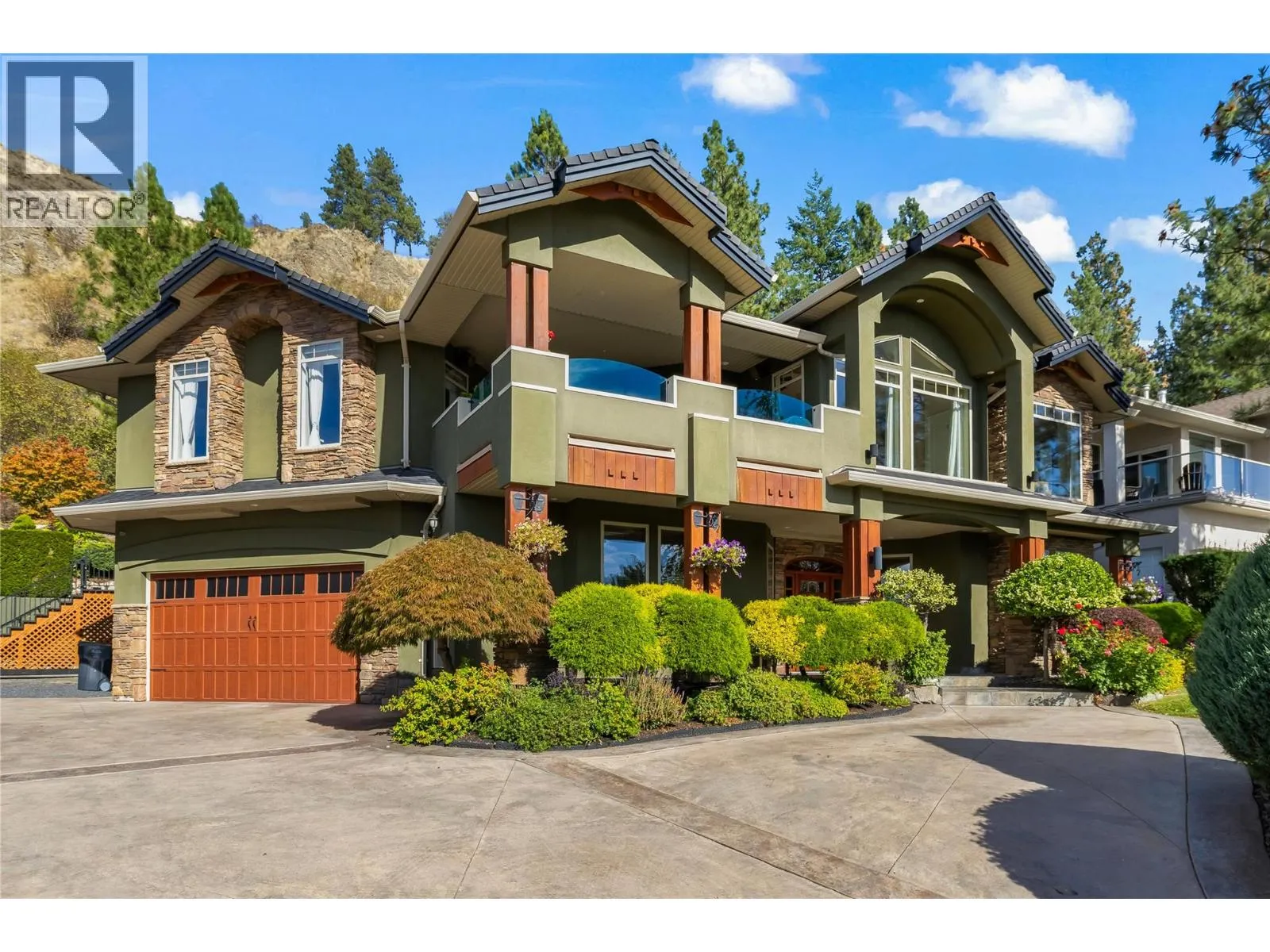 This exceptional lake view West Kelowna estate has a welcoming entrance through a grand wood front door. The stunning interior features a custom art stone wall with a built-in fireplace and archway leading to the media theatre roomâperfect for movie nights. The spacious rec room with a bar, pool table, and seating is ideal for entertaining. Adjacent to the foyer, there is a large bedroom/office that offers an ideal work from home set up with its own separate entrance. The lower level includes 2 more bedrooms, full bath, and laundry room. Up the lit staircase is an open-concept main level filled with natural light. The chefâs kitchen boasts a large island with wine storage, 2 sinks, a KitchenAid fridge, gas range, and a walk-in pantry. An expansive breakfast nook overlooks the stunning lake and mountain views and a bar area that boasts mahogany cabinets, wine fridge, and a seating area. A bright, spacious sitting room with vaulted wood panelled ceilings offer views of the backyard paradise through large windows. The primary suite features a generous walk-thru closet and an ultra-luxurious ensuiteâtiled shower, sunken soaker tub, and an elegant makeup area. Two more bedrooms, and 2 additional bathrooms complete this level. Out back, the landscaped yard has a stone patio, hot tub, pond with waterfall, multiple seating areas, fire table, built-in BBQ with bar fridge, and outdoor bar with sink and fridgeâperfect for entertaining with panoramic lake and mountain views. (id:27476)