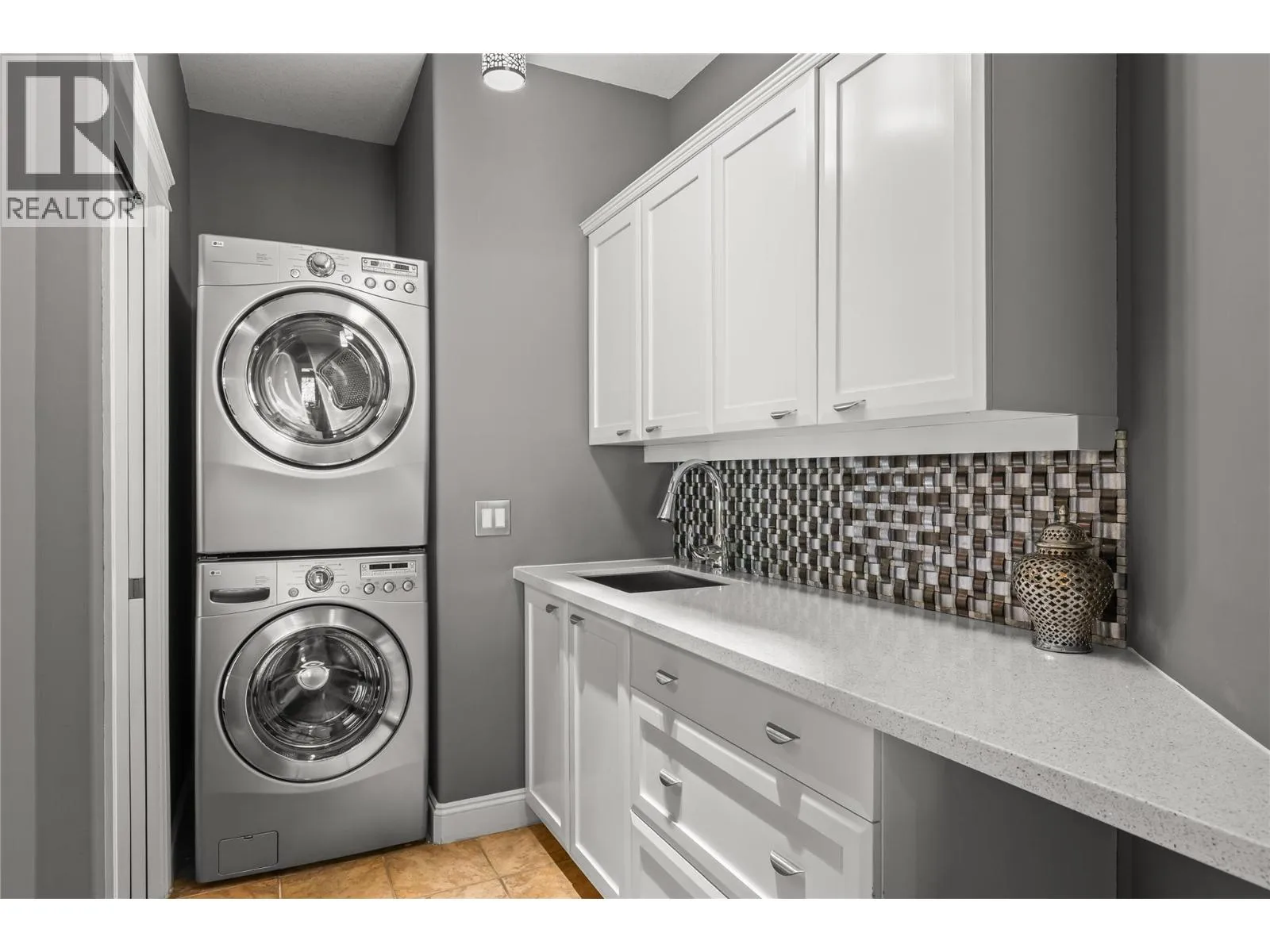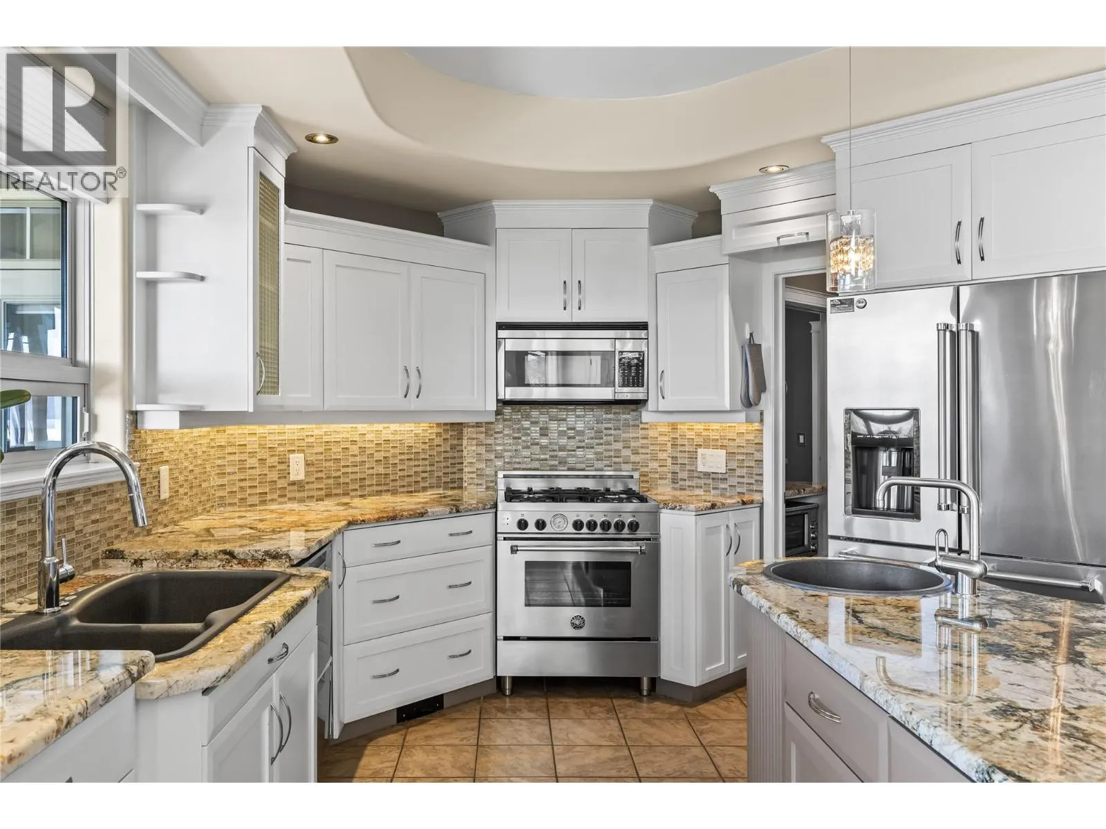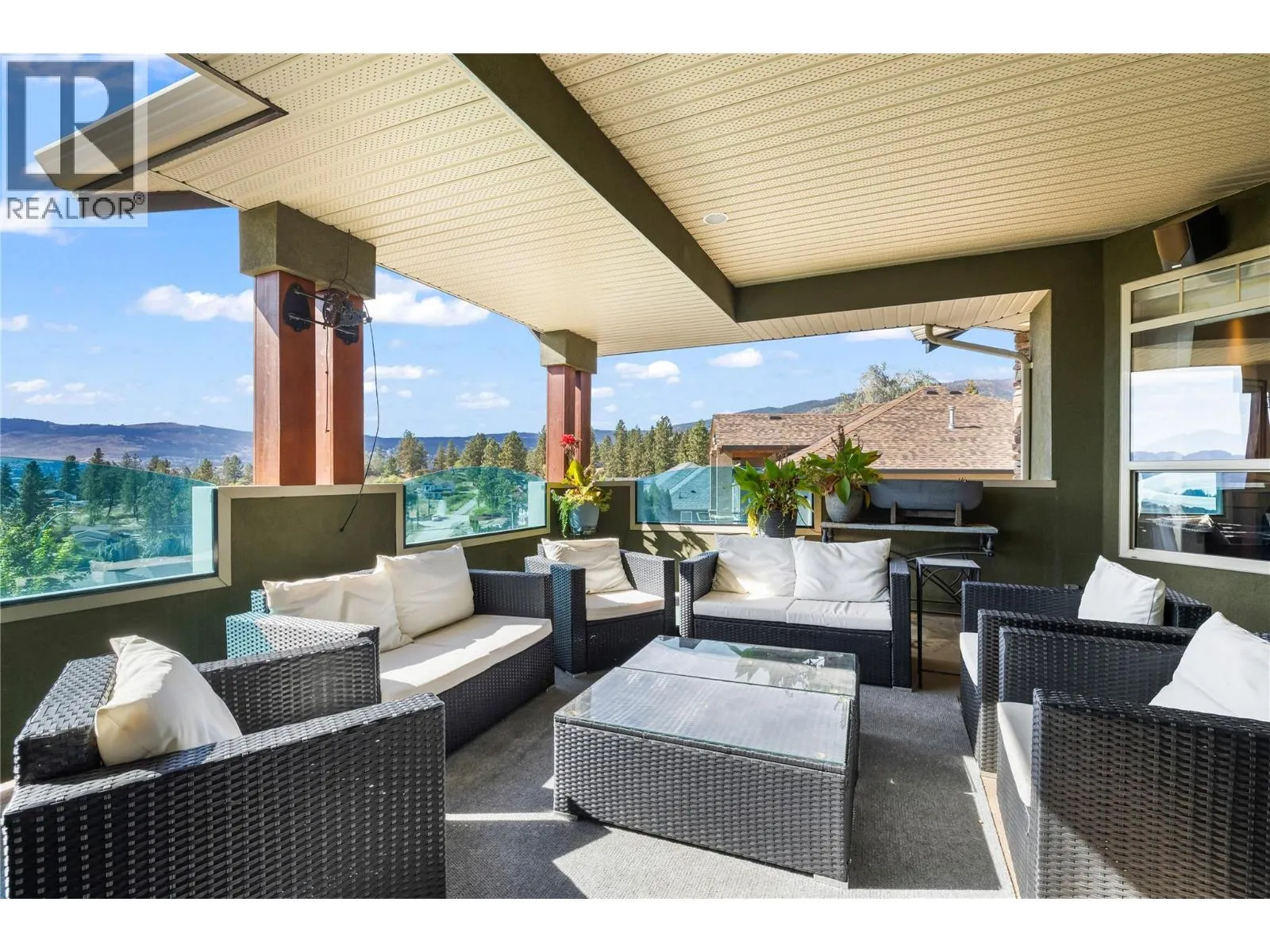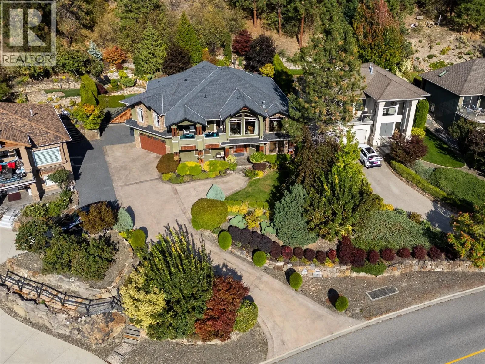 This exceptional lake view West Kelowna estate has a welcoming entrance through a grand wood front door. The stunning interior features a custom art stone wall with a built-in fireplace and archway leading to the media theatre roomâperfect for movie nights. The spacious rec room with a bar, pool table, and seating is ideal for entertaining. Adjacent to the foyer, there is a large bedroom/office that offers an ideal work from home set up with its own separate entrance. The lower level includes 2 more bedrooms, full bath, and laundry room. Up the lit staircase is an open-concept main level filled with natural light. The chefâs kitchen boasts a large island with wine storage, 2 sinks, a KitchenAid fridge, gas range, and a walk-in pantry. An expansive breakfast nook overlooks the stunning lake and mountain views and a bar area that boasts mahogany cabinets, wine fridge, and a seating area. A bright, spacious sitting room with vaulted wood panelled ceilings offer views of the backyard paradise through large windows. The primary suite features a generous walk-thru closet and an ultra-luxurious ensuiteâtiled shower, sunken soaker tub, and an elegant makeup area. Two more bedrooms, and 2 additional bathrooms complete this level. Out back, the landscaped yard has a stone patio, hot tub, pond with waterfall, multiple seating areas, fire table, built-in BBQ with bar fridge, and outdoor bar with sink and fridgeâperfect for entertaining with panoramic lake and mountain views. (id:27476)