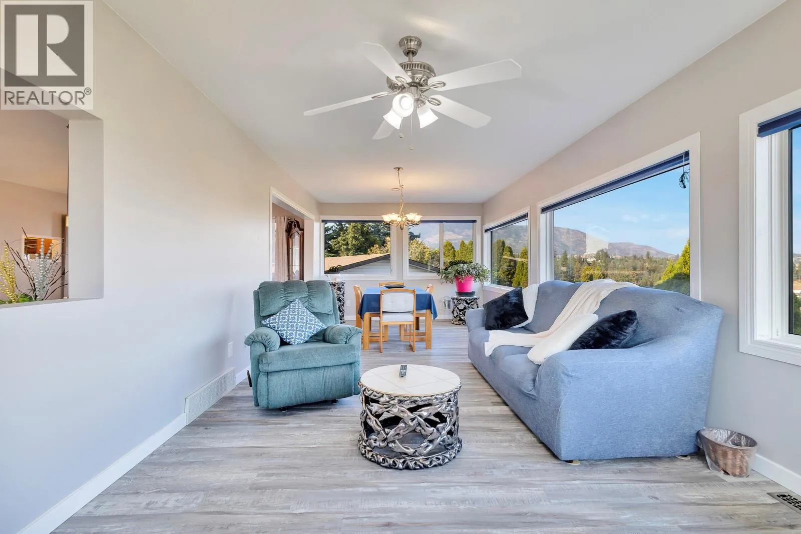 Discover this exceptional single-family home featuring a remarkably detached shop, nestled on a generous 0.29-acre lot at the end of a cul-de-sac. The expansive 2,600 sq. ft. floor plan features a bright, open living area complemented by a charming sunroom that showcases lake and valley viewsâperfect for relaxing or entertaining. The kitchen overlooks the backyard, while the dining area opens onto a covered deck, making it ideal for outdoor meals and gatherings. The main level includes two comfortable bedrooms, with an additional bedroom, a versatile den, and practical utility spaces located downstairs, including refrigerated cold storage and a generous laundry room. A standout feature of this property is the large detached workshopâan impressive garage with 11.5-foot ceilings, measuring 34.5 feet in length and equipped with a 2-piece bathroom. Whether you're a car enthusiast, hobbyist, or simply need ample storage, this unique space offers endless possibilities. The attached double garage adds extra convenience for parking and projects. This home combines comfortable living with workspace options, all set in a well-maintained environment. Don't miss the chance to own this exceptional property! (id:27476)
