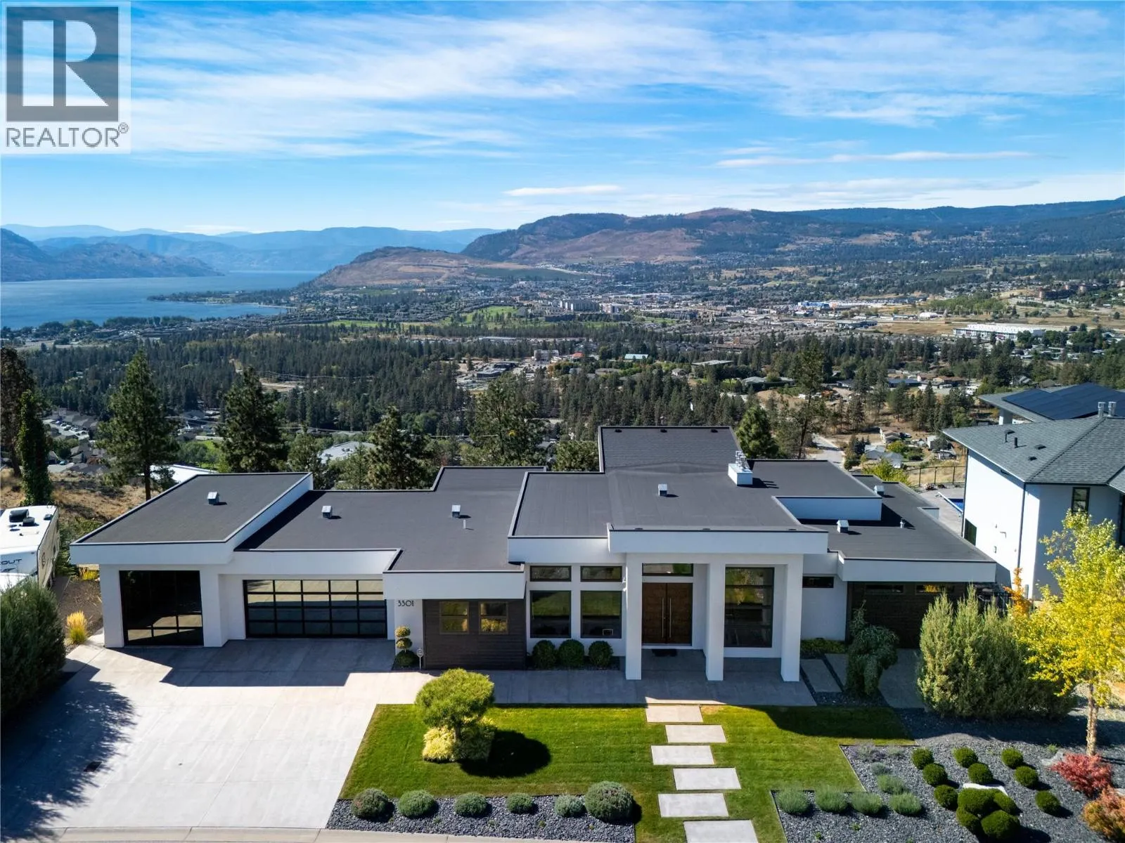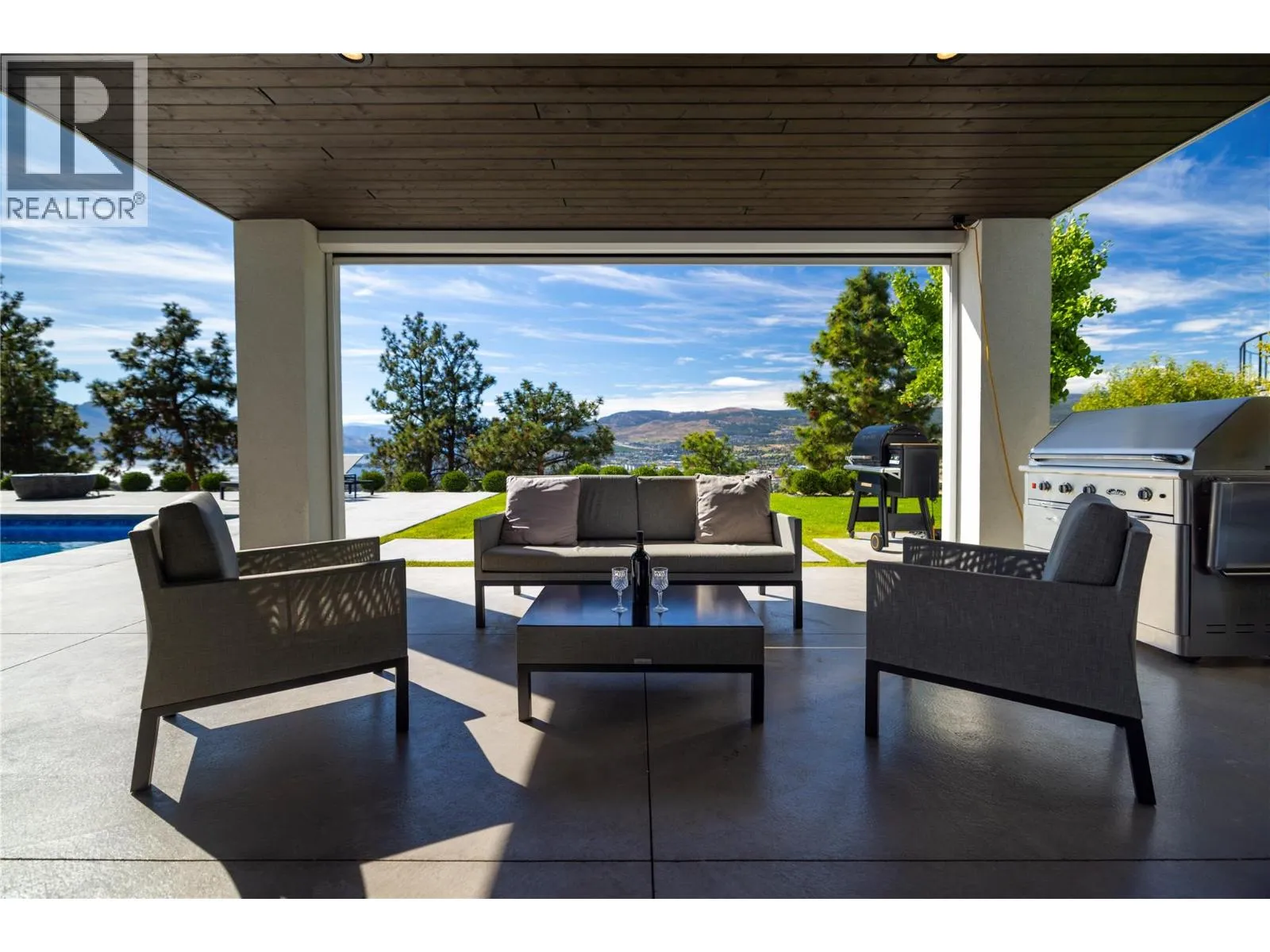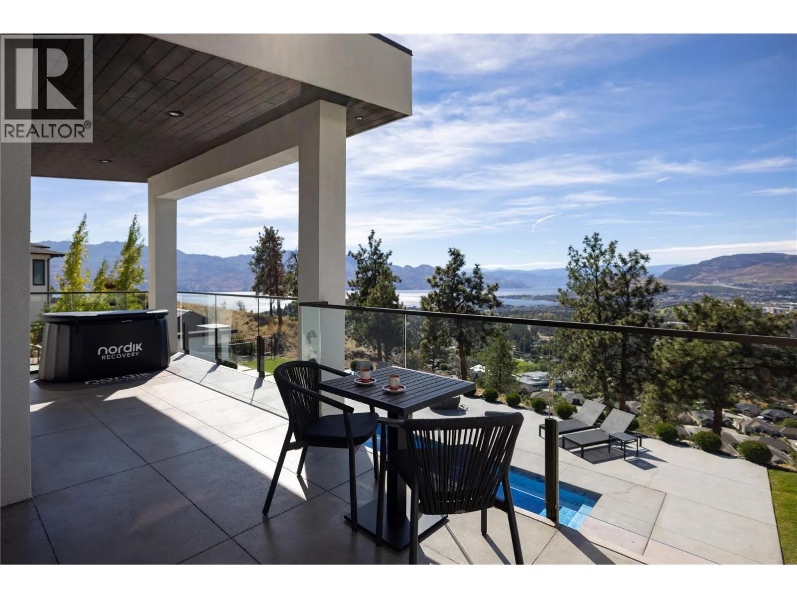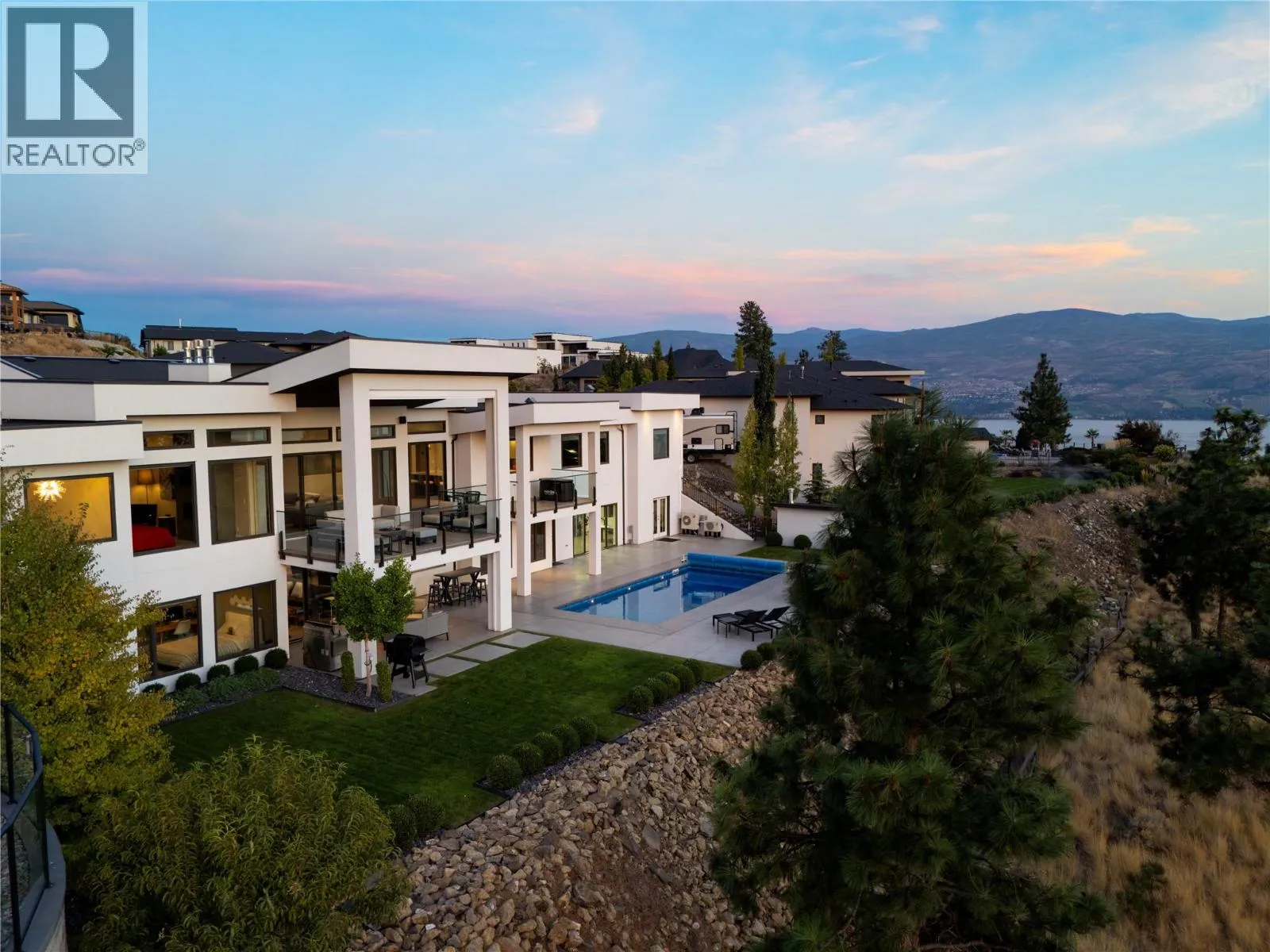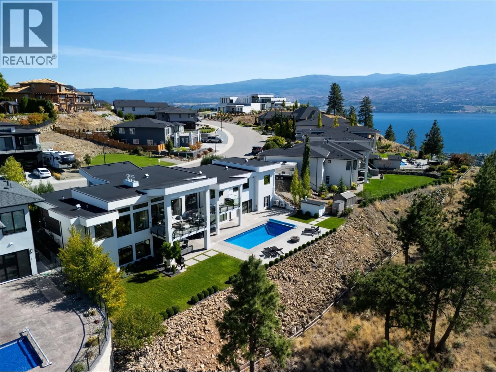 Welcome to your new home, a custom-built contemporary walk-out rancher with over 5,200 sq. ft. of luxurious living space in the prestigious Lakeview Heights community of West Kelowna. Built by the renowned Lenarcic Brothers, this home offers sweeping mountain, lake, city, and sunset views, shared with the iconic Mission Hill Winery. Perched on an unobstructed bench and backing onto a tranquil natural park, the property is flooded with natural light from expansive windows that frame breathtaking vistas in every room, even the oversized, temperature-controlled garage. The chef-inspired kitchen is a true centerpiece, featuring custom cabinetry, quartz countertops, and a spacious butlerâs pantry, perfect for creating culinary masterpieces to share with family and friends. The primary suite is your private retreat, complete with a gas fireplace, heated floors, a spa-like 5-piece ensuite, and a generous walk-in closet, perfect for the avid shoe collector. Three additional bedrooms, a second laundry room, and ample storage ensure the home is as functional as it is beautiful. Designed for entertaining, the walk-out basement includes a rec room, wine cellar, bar, games area, and a spa-inspired poolside change room with a steam shower and gym. Outside, your private backyard oasis awaits with a sparkling pool, covered seating, and panoramic views of Okanagan Lake and West Kelowna. This home is the perfect blend of luxury, comfort, and natural beauty, your dream lifestyle is here! (id:27476)
