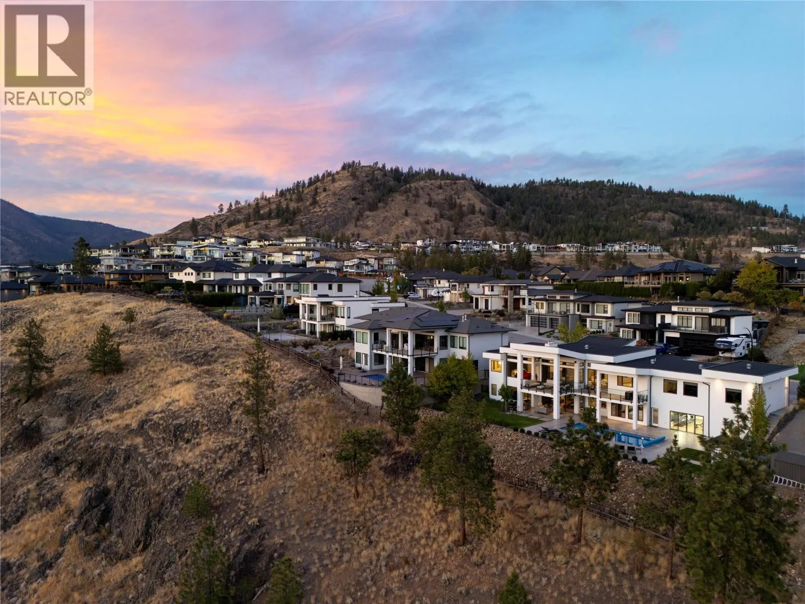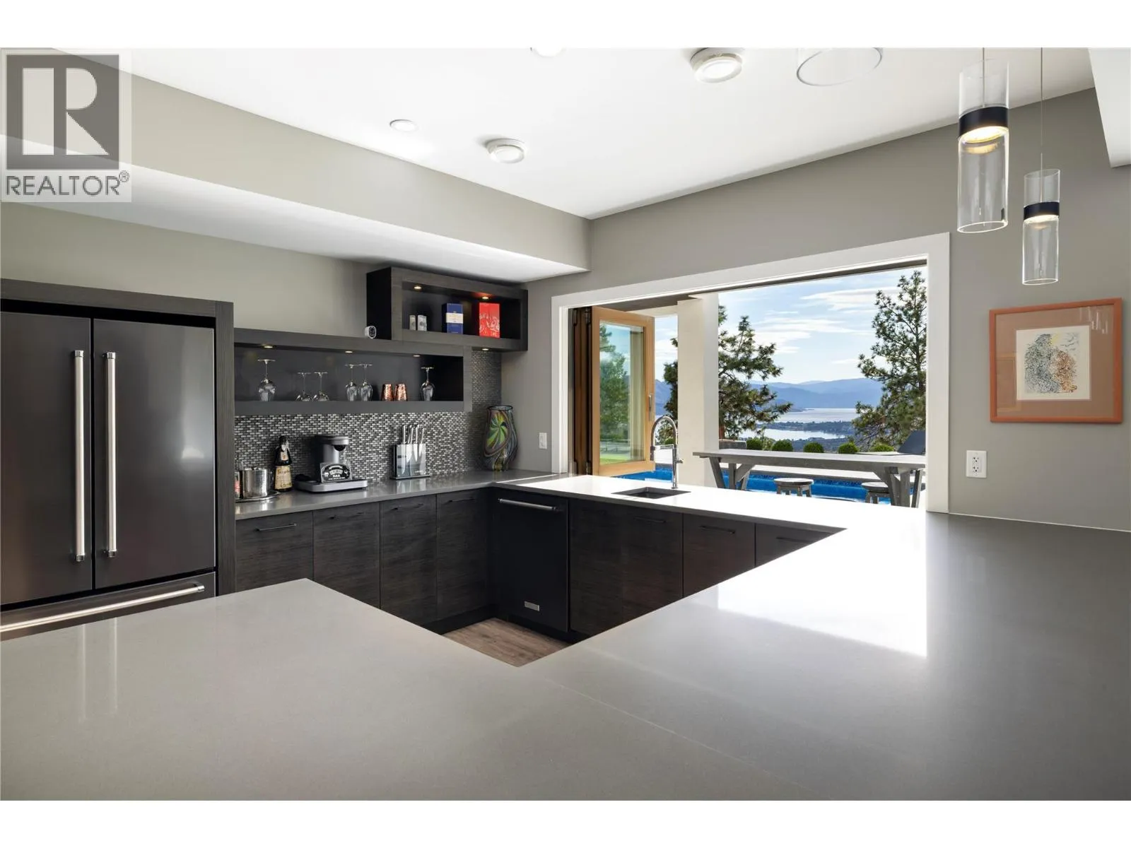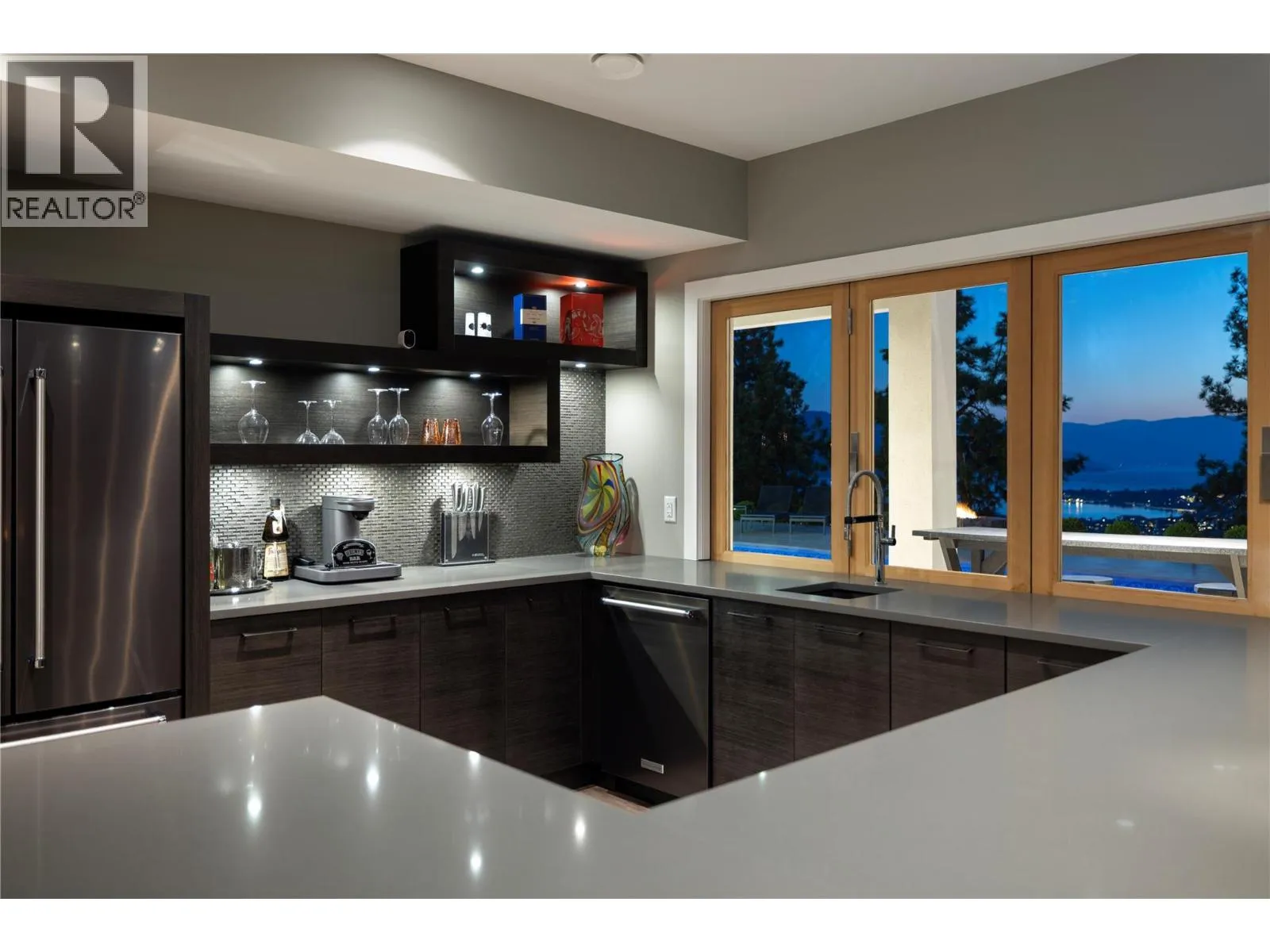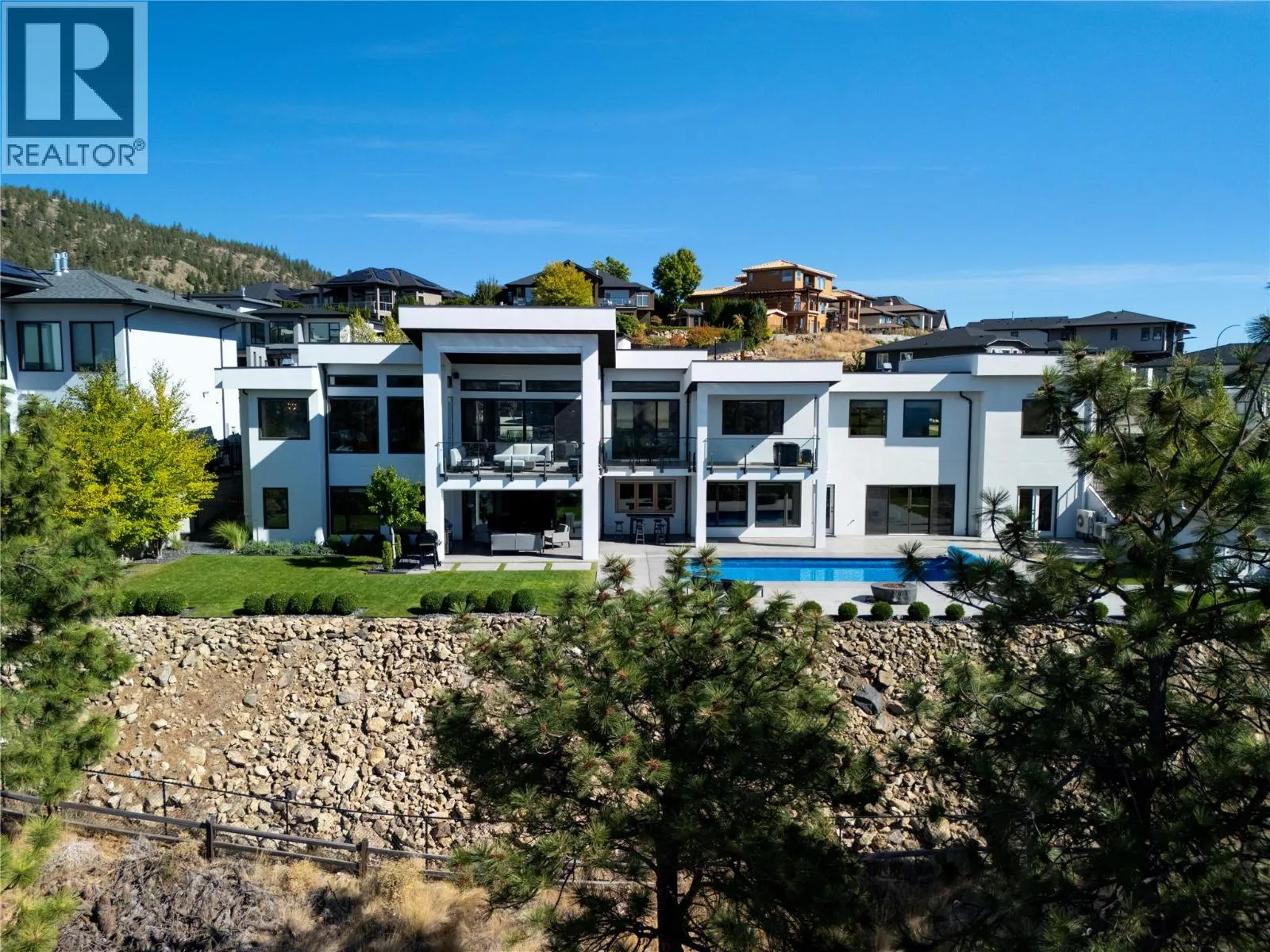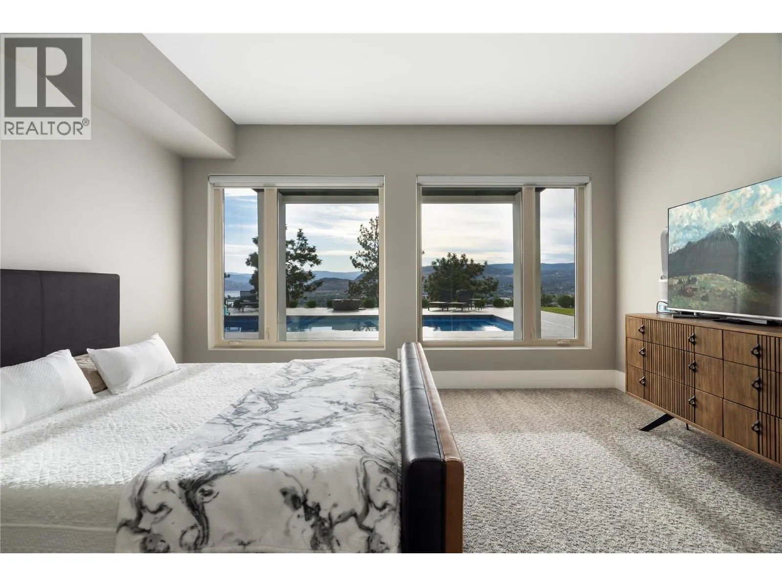 Welcome to your new home, a custom-built contemporary walk-out rancher with over 5,200 sq. ft. of luxurious living space in the prestigious Lakeview Heights community of West Kelowna. Built by the renowned Lenarcic Brothers, this home offers sweeping mountain, lake, city, and sunset views, shared with the iconic Mission Hill Winery. Perched on an unobstructed bench and backing onto a tranquil natural park, the property is flooded with natural light from expansive windows that frame breathtaking vistas in every room, even the oversized, temperature-controlled garage. The chef-inspired kitchen is a true centerpiece, featuring custom cabinetry, quartz countertops, and a spacious butlerâs pantry, perfect for creating culinary masterpieces to share with family and friends. The primary suite is your private retreat, complete with a gas fireplace, heated floors, a spa-like 5-piece ensuite, and a generous walk-in closet, perfect for the avid shoe collector. Three additional bedrooms, a second laundry room, and ample storage ensure the home is as functional as it is beautiful. Designed for entertaining, the walk-out basement includes a rec room, wine cellar, bar, games area, and a spa-inspired poolside change room with a steam shower and gym. Outside, your private backyard oasis awaits with a sparkling pool, covered seating, and panoramic views of Okanagan Lake and West Kelowna. This home is the perfect blend of luxury, comfort, and natural beauty, your dream lifestyle is here! (id:27476)