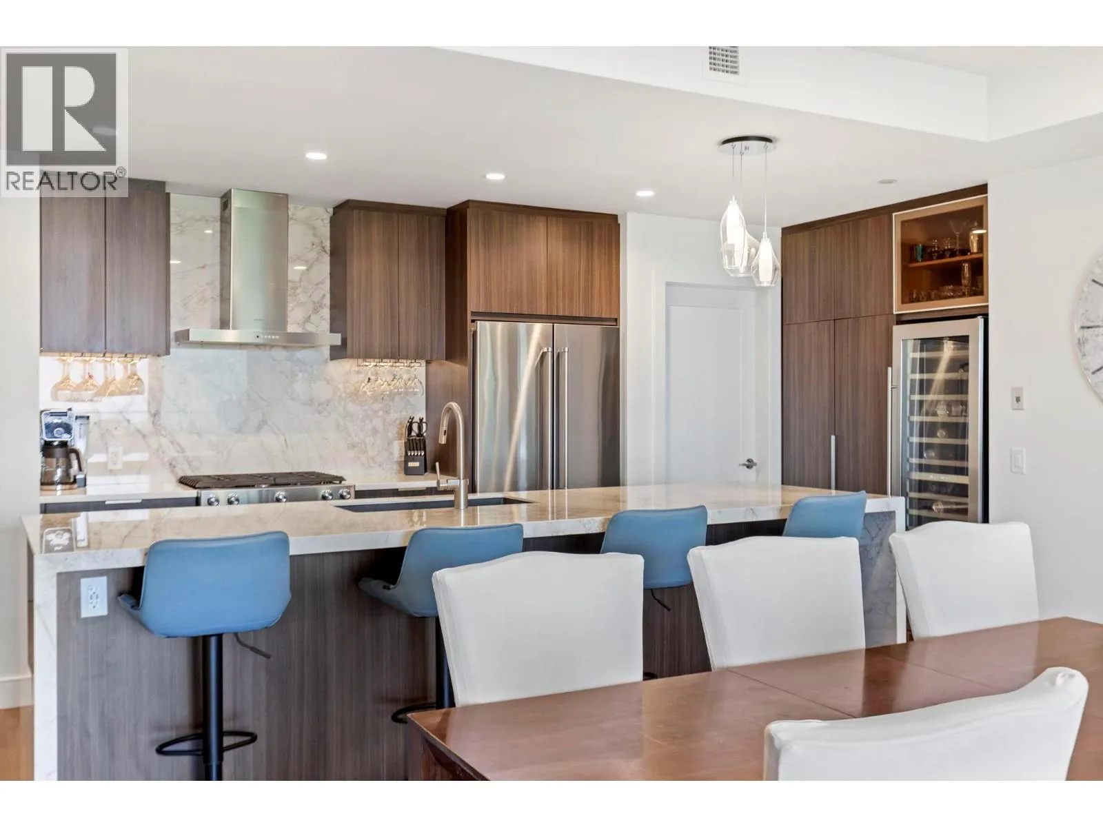""Living at Ariva means a higher quality of life, where the desire to leave doesnt exist since your really have it all . This beautiful new development is a true gem, offering a 'lock and leave' lifestyle just a short walk to Lake Okanagan. Here, luxury meets an unbeatable location. The outdoor space in this unit in particular is truly amazing: over 1000 sqft of patio space with a fire pit, overhead heater, and outdoor kitchen, all boasting expansive lake and valley views. It will make you forget you're in a condo. Don't settle for a tiny condo; they aren't making them like this anymore! This home truly has it all, allowing you to move freely. Discover a very spacious and open floor plan with two beds and a large den (which could almost be another bedroom), and three bathrooms sprawling across over 1500+ sqft. Enjoy exceptional higher-end finishings, including a premium appliance package, waterfall edge countertops, a wine fridge, and the outdoor kitchen.There is abundant storage space and a full-sized laundry room. Ariva also offers a exceptional amount of great amenities and a fantastic sense of community. there is an office area, fitness room, pool, and pickleball courts. All of this is just minutes to the city centre, lake, shopping, and restaurants. Ariva redefines condo living, offering an unparalleled blend of sophistication, comfort, and convenience."" You must see this one in Person ! (id:27476)