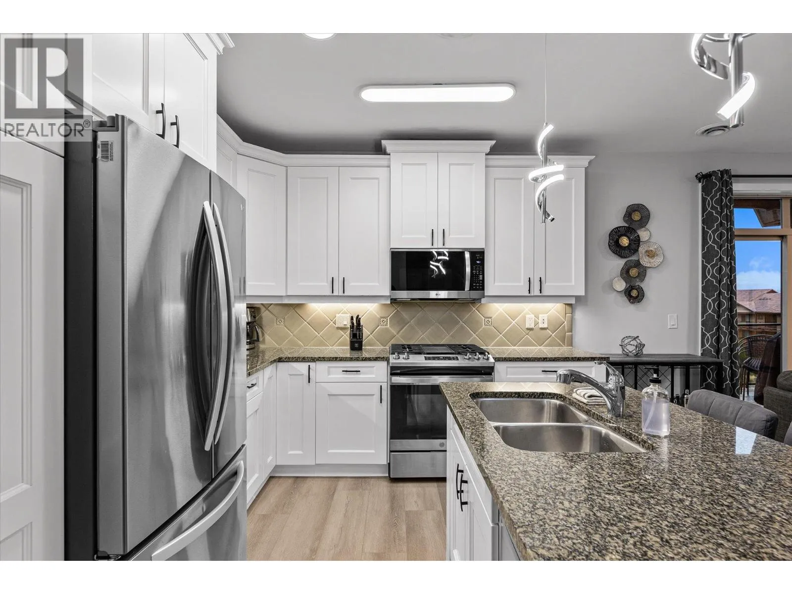 BEST BUY IN BARONA BEACH & PRICED BELOW BC ASSESSMENT $704k! 1 OF ONLY 4 COMPLEXES allowing SHORT-TERM RENTALS in the entire West Kelowna, this gem is not only a dream vacation home but also an enticing investment opportunity ALLOWING airBNB. Positioned on the top floor, you'll enjoy sweeping LAKE and mountain views, while overlooking the pool and marina. This fabulous unit features two bedrooms and a DEN that can easily serve as a third bedroom. LIKE NEW UNIT with newer FLOORING, FRESHLY PAINTED interior and cabinetry, updated light fixtures reflecting a delightful lakeside decor. The spacious kitchen boasts newer appliances and gleaming granite countertops, perfect for entertaining. Step outside to your own slice of paradise with a private sandy beach spanning 600 feet. Enjoy resort-style amenities, including a heated pool, hot tub, full gym, movie theatre, and a rentable party room. For added convenience, there's an on-site beauty salon, a dog run, and community vegetable gardens to grow your own fresh produce! Explore the renowned West Kelowna Wine Trail and vineyards just minutes away, and dining options within a short drive. This condo includes 1 parking stall and a storage unit and can be fully furnished with an additional cost, making it turnkey for short-term rental success. Whether you use it as your own vacation oasis or live at the resort year-round, don't miss out on this rare opportunity to own a piece of the Okanagan lifestyle. (id:27476)