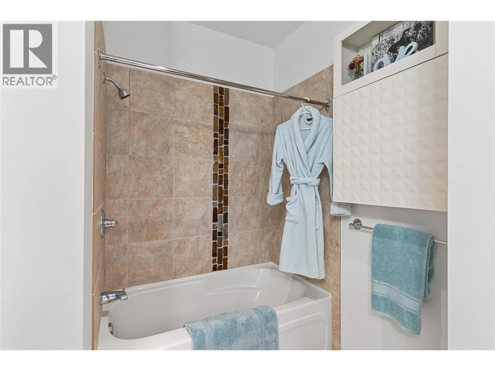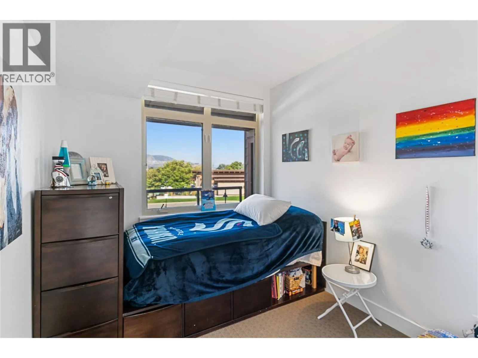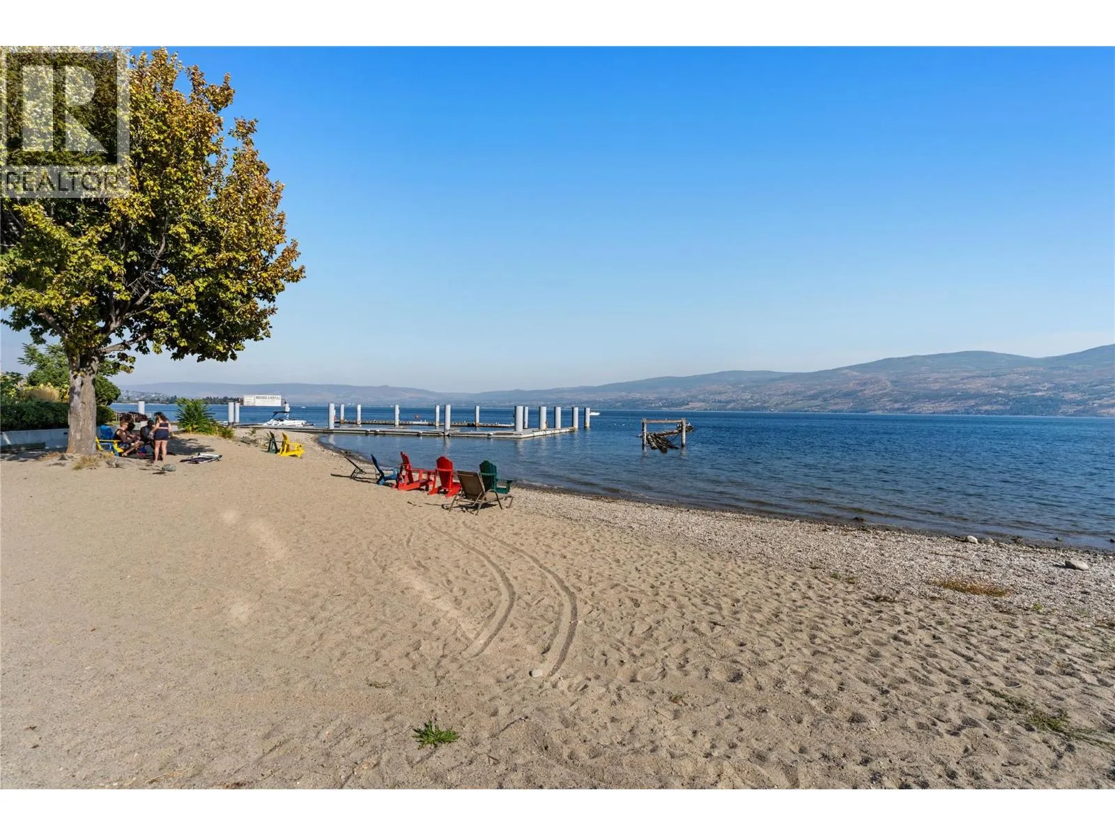 Lakeside Luxury at The Cove â Massive Wraparound Balcony! This rare corner/end suite at The Cove Lakeside Resort offers the perfect blend of comfort and lifestyle with a massive 730 sq ft wraparound covered balconyâone of the largest at the resort! Enjoy peek-a-boo lake views, serene park-side tranquility, and exposures in all directions (E/N/S/W), making this a truly special space to relax and entertain. The intelligently designed floor plan features 3 bedrooms and 3 full bathrooms, including two primary suites with ensuites, plus a guest bedroom and full bath. The âUâ-shaped kitchen with bar seating flows into the dining, family, and living areas, flooded with natural light from expansive windows. The living room boasts a stylish âDon Quixoteâ feature wall, while the cozy family room offers peaceful park views. Extras include an independent laundry/storage room, three lock-off closets, and 3 balcony access points. Whether you're looking for a full-time residence, vacation home, or a profitable rental, this suite offers it all. Enjoy resort-style amenities: outdoor pool, 2 hot tubs, putting green, tennis court, gym, theatre, restaurant/bar, marina, and 600' of Okanagan Lake waterfront on 6.5 acres. Don't miss this opportunity to own one of The Cove's finest suites! (id:27476)