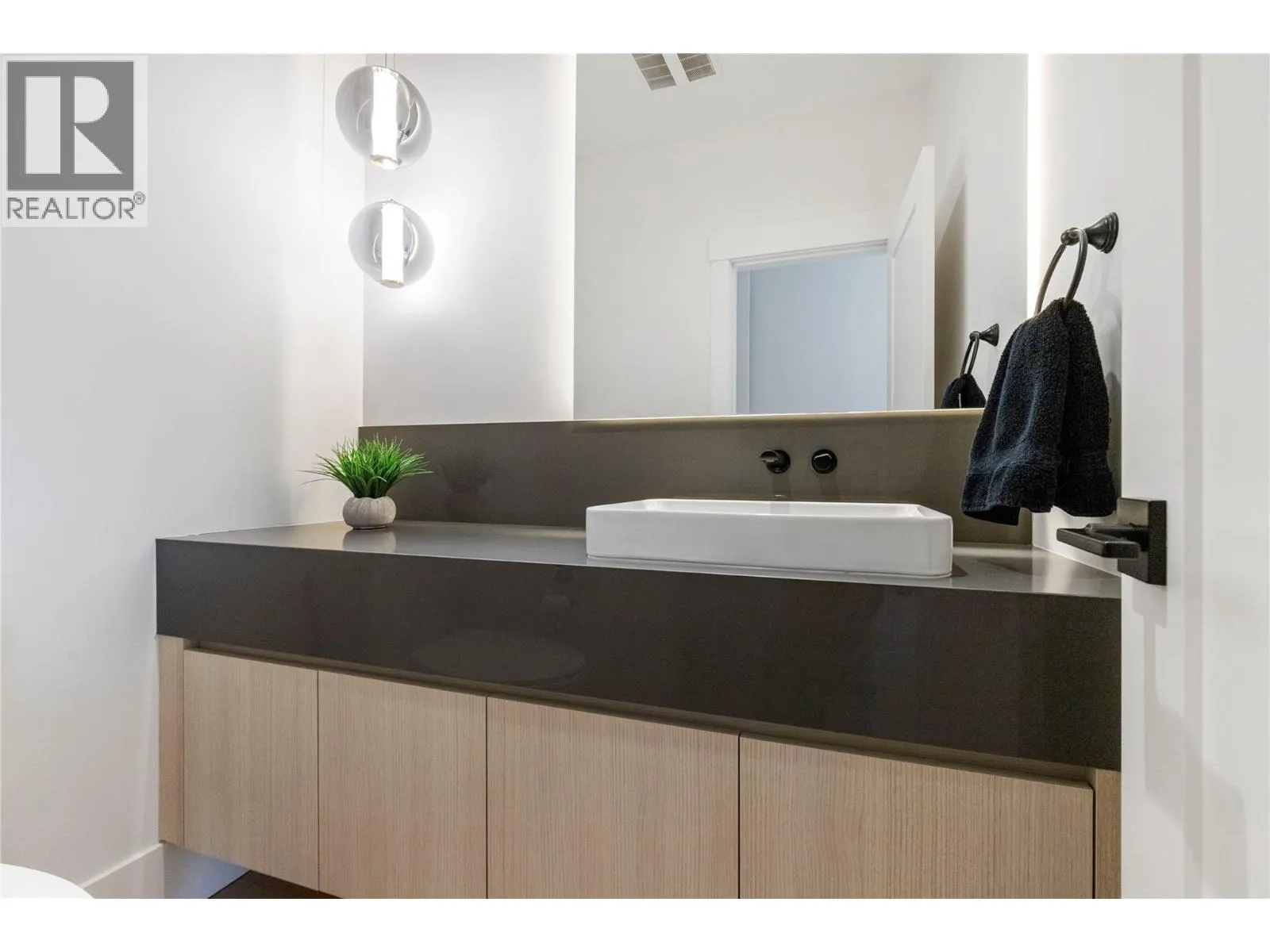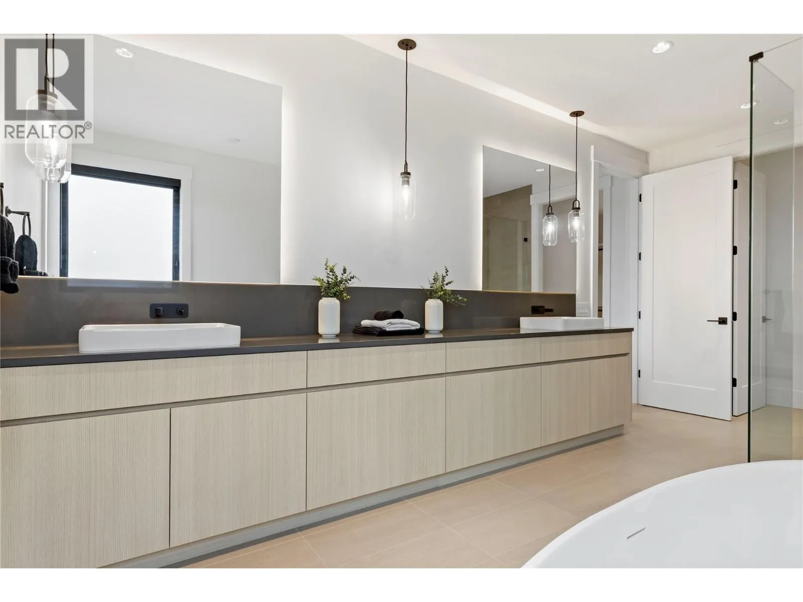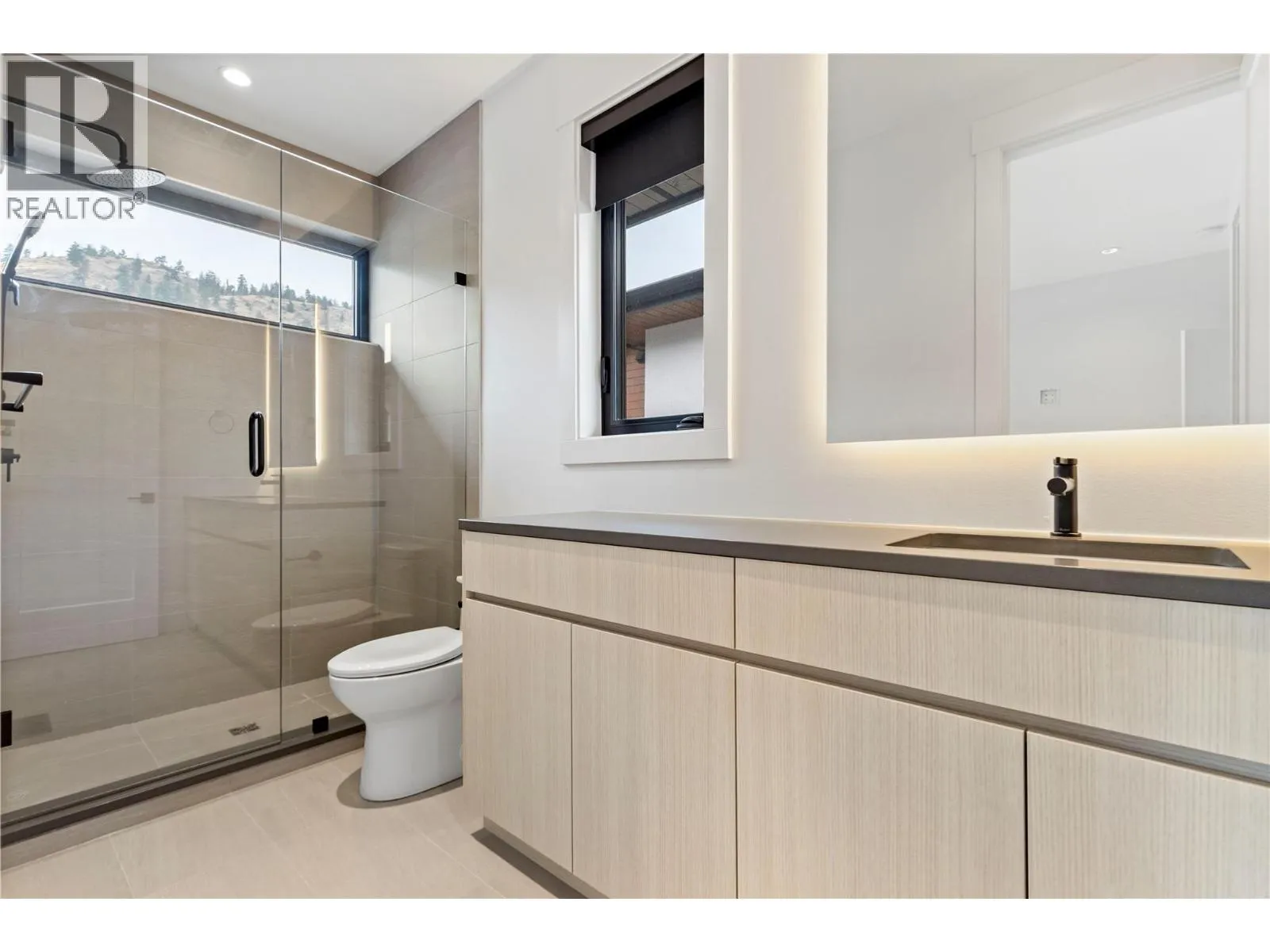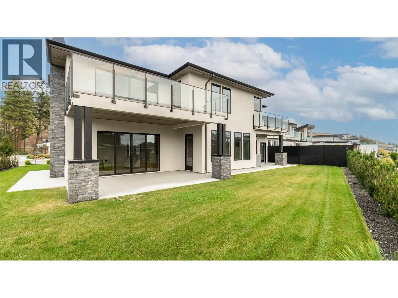 Built by award-winning Palermo Homes, this brand-new custom residence sits proudly on a spacious corner lot, offering over 4,400 sq. ft. With 5 bedrooms and 6 bathrooms, a fully independent legal suite, and a 3 car garage, this home is tailored for todayâs modern family. A welcoming entryway opens to a versatile layout featuring flexible rooms ideal for an office, den, formal dining, or secondary living. At the heart of the home, the great room impresses with expansive open-concept living, a striking tiled fireplace, and seamless flow to the pool-sized backyard. The chefâs kitchen showcases abundant cabinetry, a walk-in pantry, waterfall quartz island, and premium gourmet appliances, while a stylish powder room and mudroom with built-in cabinetry complete the main level. Upstairs, a family/games room with its own patio and fireplace awaits. The primary suite is a private retreat with spa-inspired ensuite and walk-in closet, joined by three additional bedroomsâeach with its own bathroomâplus a functional laundry room. The lower level features a 1-bedroom legal suite. Additional features: heated ensuite floors, designer lighting, EV-charger rough-in, and exterior architectural lighting. An oversized triple garage, generous driveway parking, and exceptional curb appeal further enhance this property. Live steps from world-class wine at Mission Hill, adventure at Mt. Boucherie Park, and quick access to Okanagan Lake just down the hill. You can have it all at Vineyard Estates (id:27476)