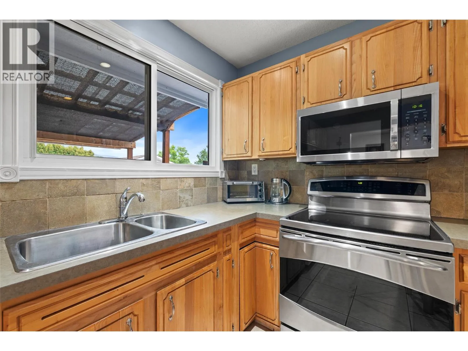 MASSIVE PRICE DROP FROM PREVIOUS LISTING! Spacious and well-maintained home located in the heart of West Kelownaâs desirable Apollo Road neighbourhood. Freshly painted including trim and doors. New laminate flooring. The main level features an open-concept living and dining area, a bright and functional kitchen, and three comfortable bedrooms, including a spacious primary. A full 4-piece bathroom completes the main floor, making it ideal for everyday family living. The lower level offers additional living space that can easily be suited, with two large bedrooms, a full bathroom, second kitchen, rec room, and dedicated laundry, storage, and utility areasâproviding flexibility for a variety of living arrangements. New flush mounted ceiling lights throughout. Oversized garage with built-in shelving. Covered deck with composite deck material and aluminum railings. Large second deck with with pressure treated decking material. Set in the vibrant Westbank Centre, this property is within walking distance to schools, shopping, restaurants, parks, and public transit. Residents will enjoy close proximity to community amenities, Okanagan Lake, and outdoor recreation, while being part of one of West Kelownaâs most walkable and evolving neighbourhoods. With its generous layout, central location, and future development potential, this home is not only a comfortable place to live but also a great holding property for the years ahead. (id:27476)