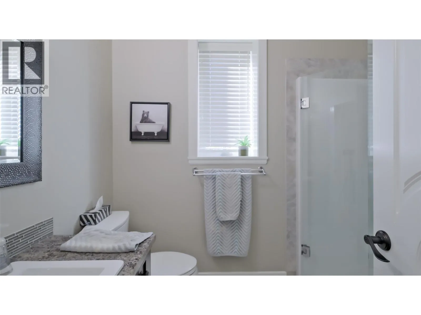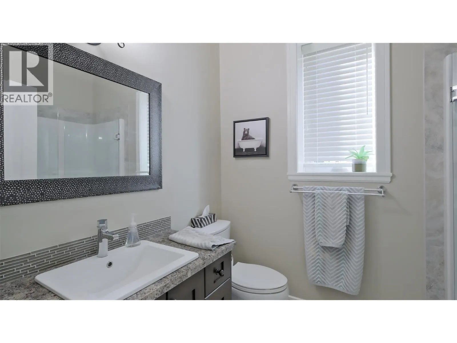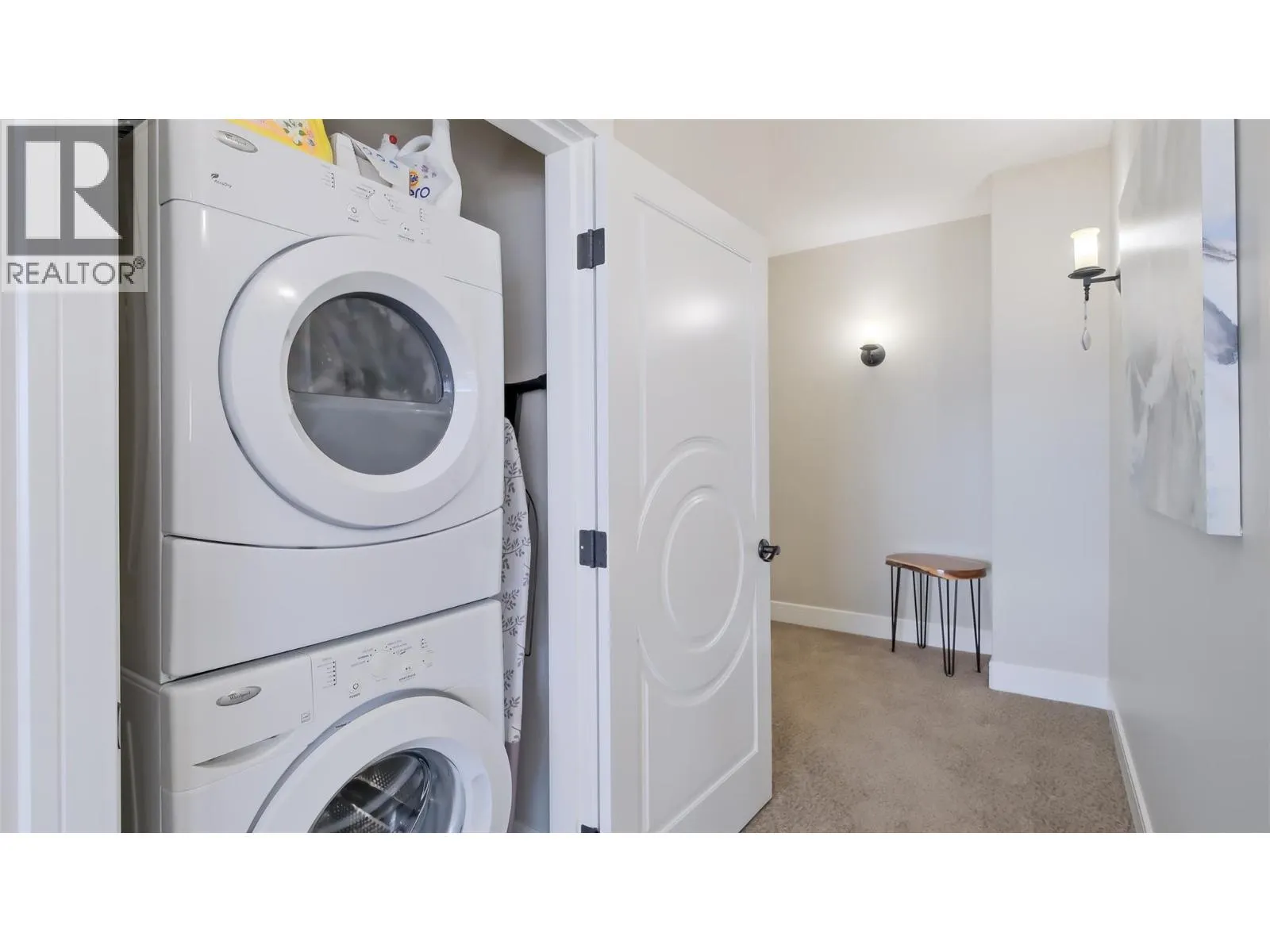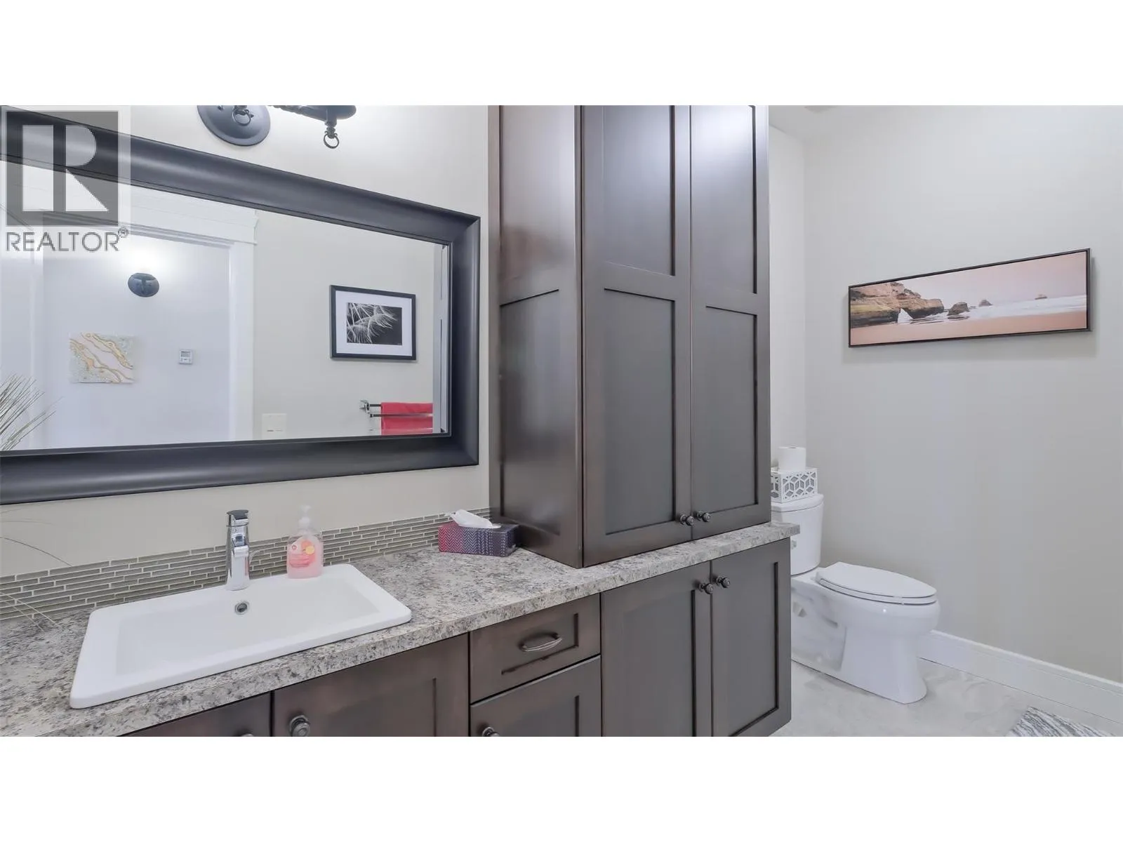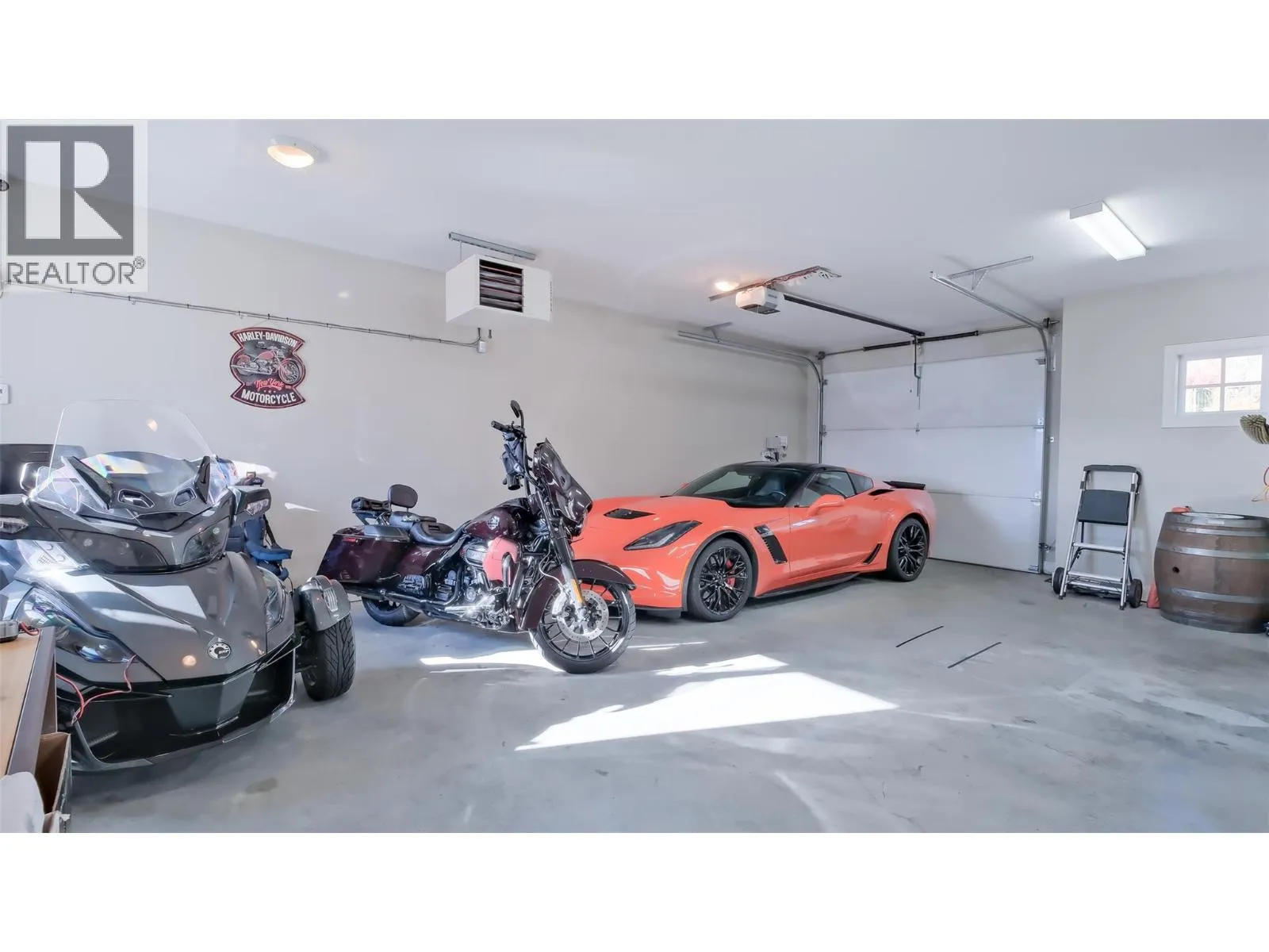 Exceptional 5 bed, 4 bath executive home is nestled in the prestigious Vineyard Estates with panoramic views of Okanagan Lake, mountains, and vineyards. Open-concept main level combines comfort and elegance, featuring 11' ceilings, maple hardwood, and custom curved windows that flood the space with natural light. The main level primary bedroom, complete with a spa-like ensuite, heated floors, motion-sensor lighting is conveniently located alongside a spacious office (or second bedroom). Well appointed kitchen showcases custom cabinetry, a Bertazzoni gas stove, Miele double steam oven, and dishwasher. A butlerâs pantry with a second dishwasher and fridge, a designated laundry room, and a stamped concrete covered deck enhance the homeâs thoughtful design. The bright, walkout lower level offers full lake views, 3 generously sized bedrooms, 2 full baths (including one with a separate entrance to the pool deck), a wet bar with a third dishwasher and fridge, a second washer/dryer, a large family room and a media room. Additionally, there is a heated workshop with its own entrance, perfect for hobbyists. Enjoy your own private oasis with an inground pool, hot tub, and an expansive pool deck with ample storage. The property features cherry trees, grapevines, and sits adjacent to a greenbelt for added privacy. The triple pull-through gas-heated garage and flat driveway ensure easy parking. Full lake views from every level of this stunning home! (id:27476)