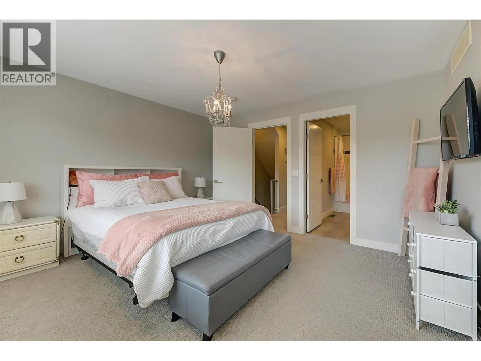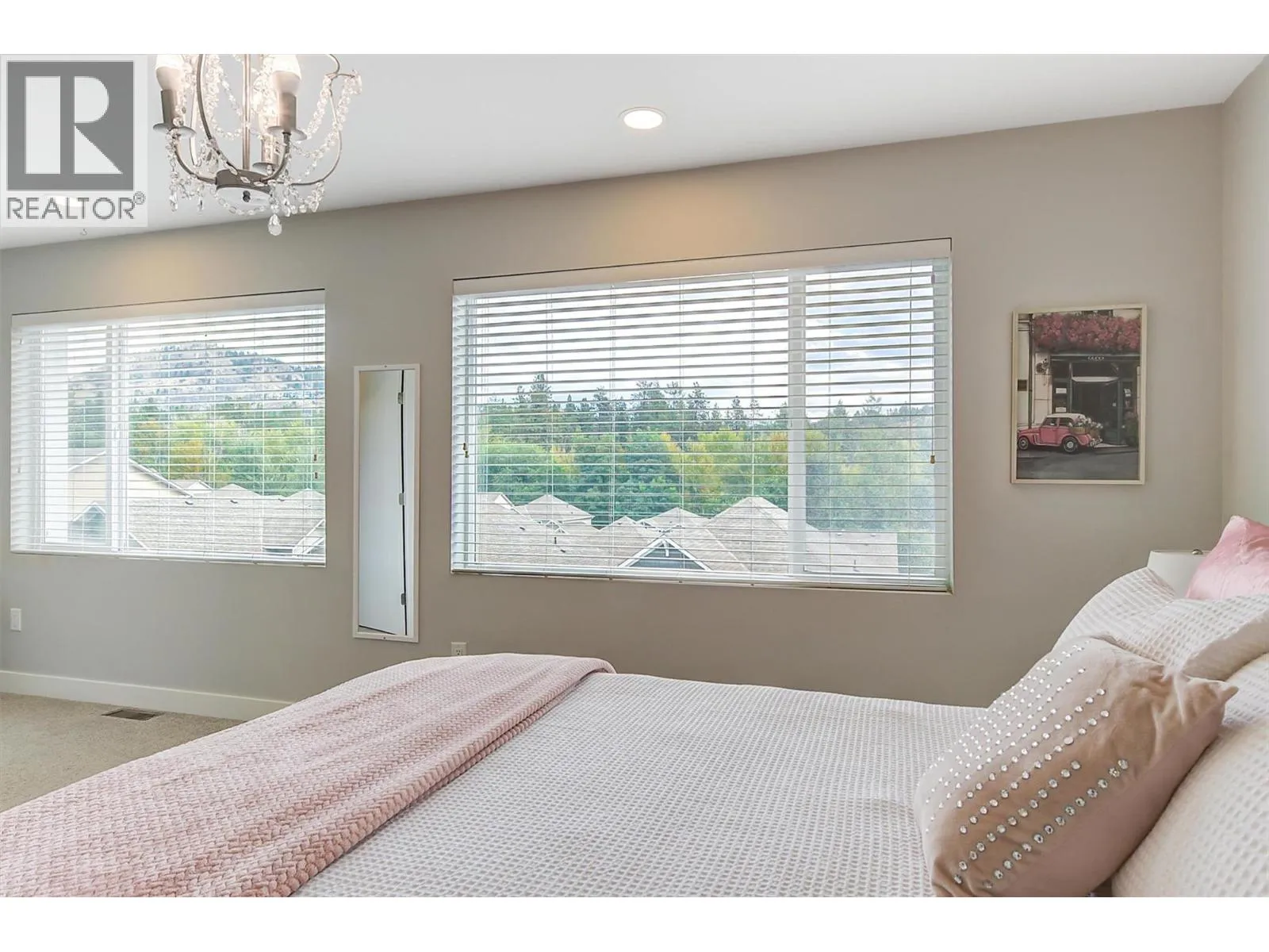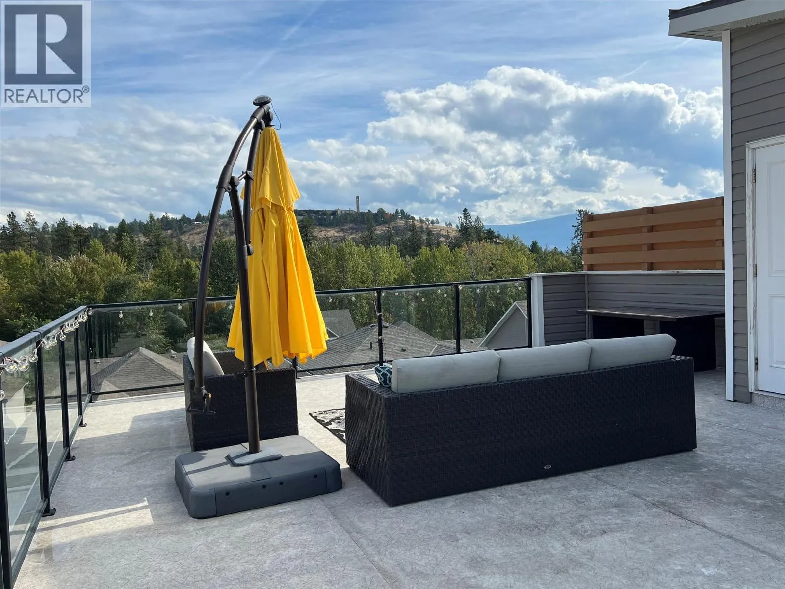 Welcome to the Elkridge community! This stunning townhome features a contemporary open-concept space with 9 ft ceilings in the main living area and oversized windows allowing natural light in. There's both a Private Fenced Safe Backyard PLUS a 540 sq ft ROOFTOP PATIO offering panoramic views of the mountains & Mission Hill Estate Winery. Two (2) very spacious and Completely SEPARATE PRIMARY BEDROOMS both with their own Ensuite Bathrooms and Walk in Closets. Additionally there's a 3rd room you can use for an office or storage. The kitchen has an earthy modern twist featuring high gloss easy clean white and driftwood tone cabinetry, quartz counter tops, stainless steel appliances and pantry. Walk straight out to the patio from the kitchen into the fully fenced backyard. Easy in and out for for barbequing, small garden, pets, kids and ultimately privacy. Double garage with ample storage plus 2 cars can park in the driveway. Laundry in entry and Garage door access into home. Fantastic convenient location just minutes to the lake, beaches, all shopping, schools, golf, restaurants, award winning wineries - you name it! 2 Pets allowed with no size restriction. Rentals allowed. NO Property Transfer Tax. No lease fees. Strata fee is only $275.50 a month. CMHC approved development. The lease is pre paid until 2109. This is a great family friendly community to become a part of. Let's go! (id:27476)