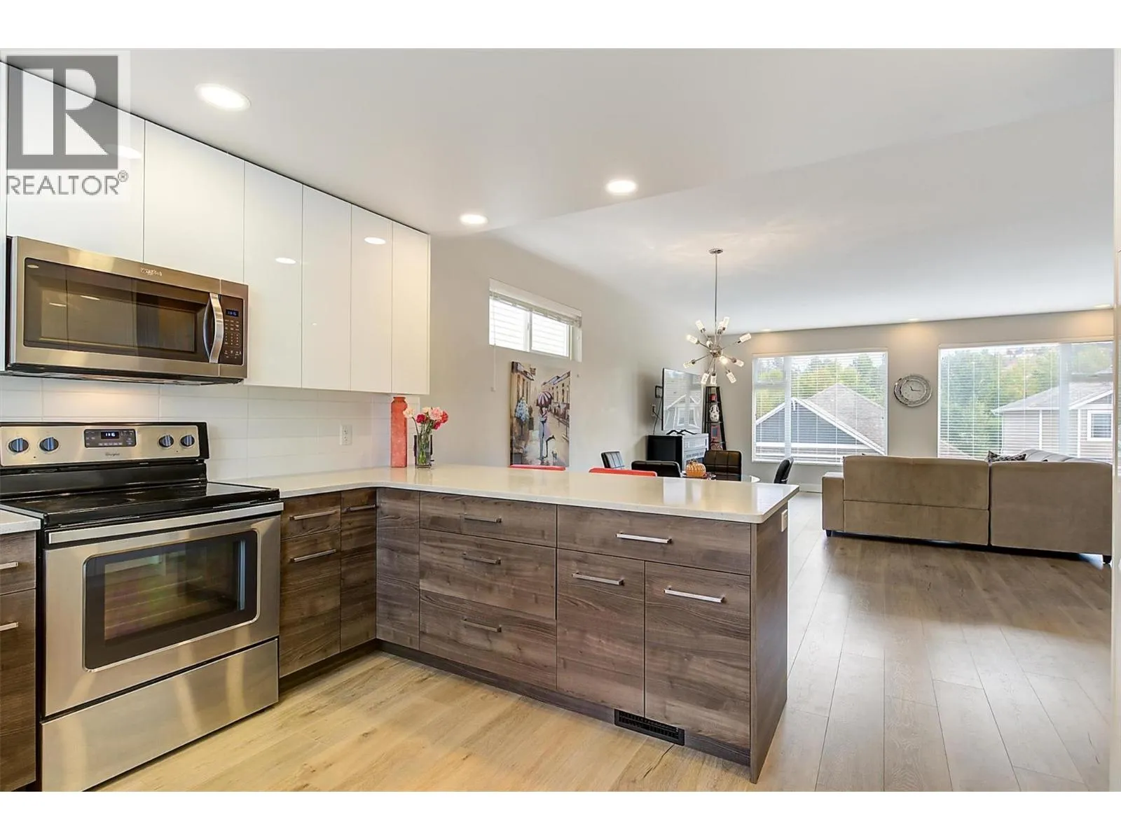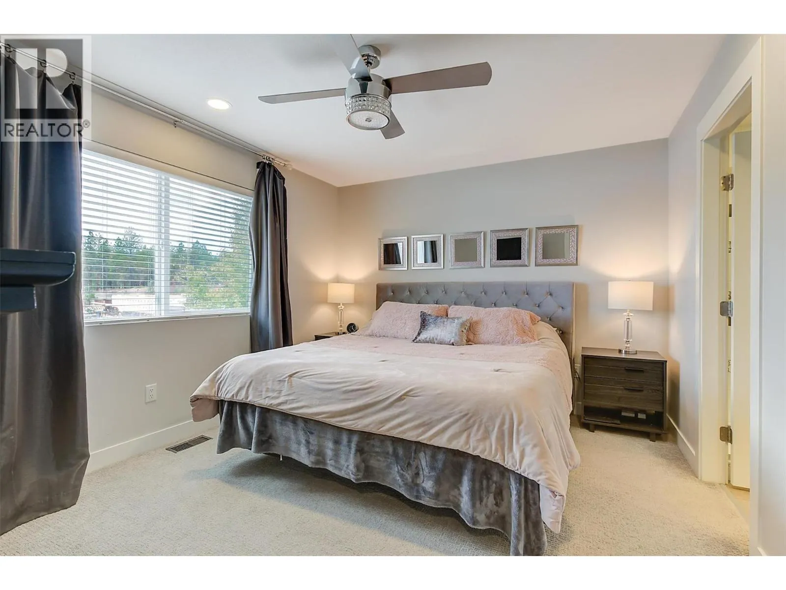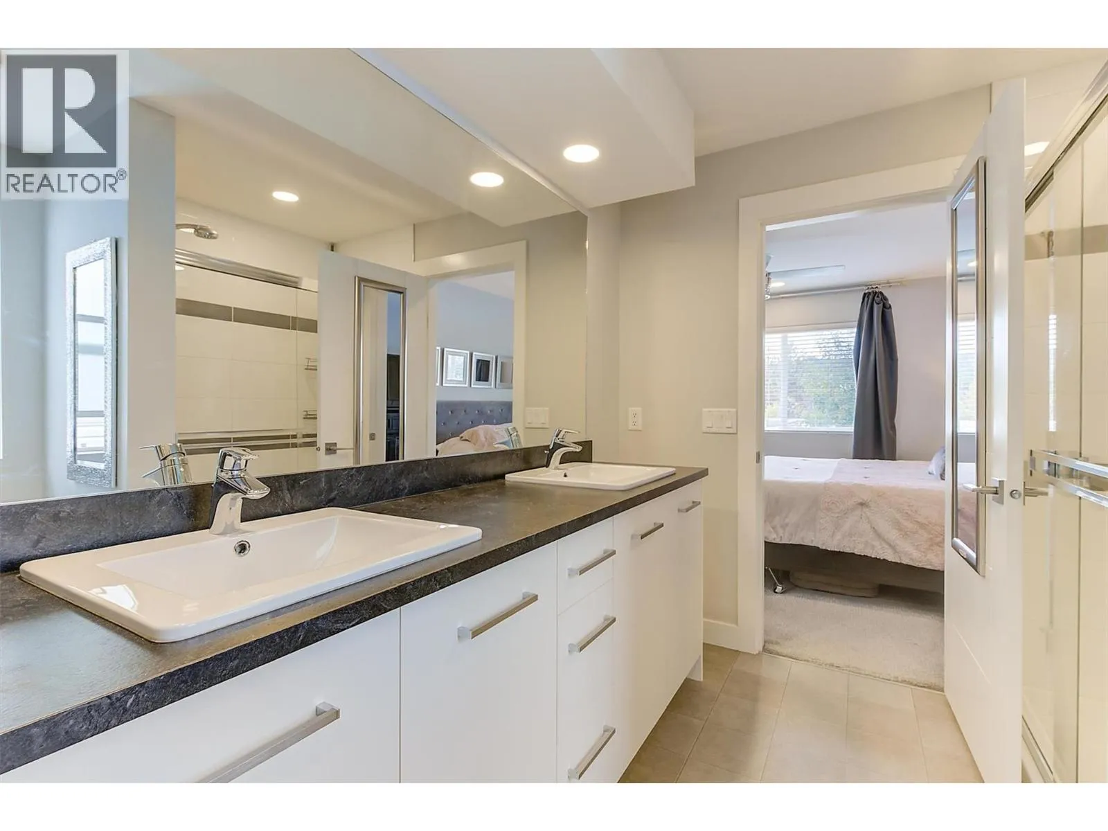 Welcome to the Elkridge community! This stunning townhome features a contemporary open-concept space with 9 ft ceilings in the main living area and oversized windows allowing natural light in. There's both a Private Fenced Safe Backyard PLUS a 540 sq ft ROOFTOP PATIO offering panoramic views of the mountains & Mission Hill Estate Winery. Two (2) very spacious and Completely SEPARATE PRIMARY BEDROOMS both with their own Ensuite Bathrooms and Walk in Closets. Additionally there's a 3rd room you can use for an office or storage. The kitchen has an earthy modern twist featuring high gloss easy clean white and driftwood tone cabinetry, quartz counter tops, stainless steel appliances and pantry. Walk straight out to the patio from the kitchen into the fully fenced backyard. Easy in and out for for barbequing, small garden, pets, kids and ultimately privacy. Double garage with ample storage plus 2 cars can park in the driveway. Laundry in entry and Garage door access into home. Fantastic convenient location just minutes to the lake, beaches, all shopping, schools, golf, restaurants, award winning wineries - you name it! 2 Pets allowed with no size restriction. Rentals allowed. NO Property Transfer Tax. No lease fees. Strata fee is only $275.50 a month. CMHC approved development. The lease is pre paid until 2109. This is a great family friendly community to become a part of. Let's go! (id:27476)