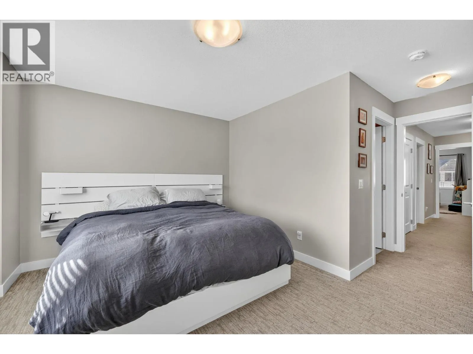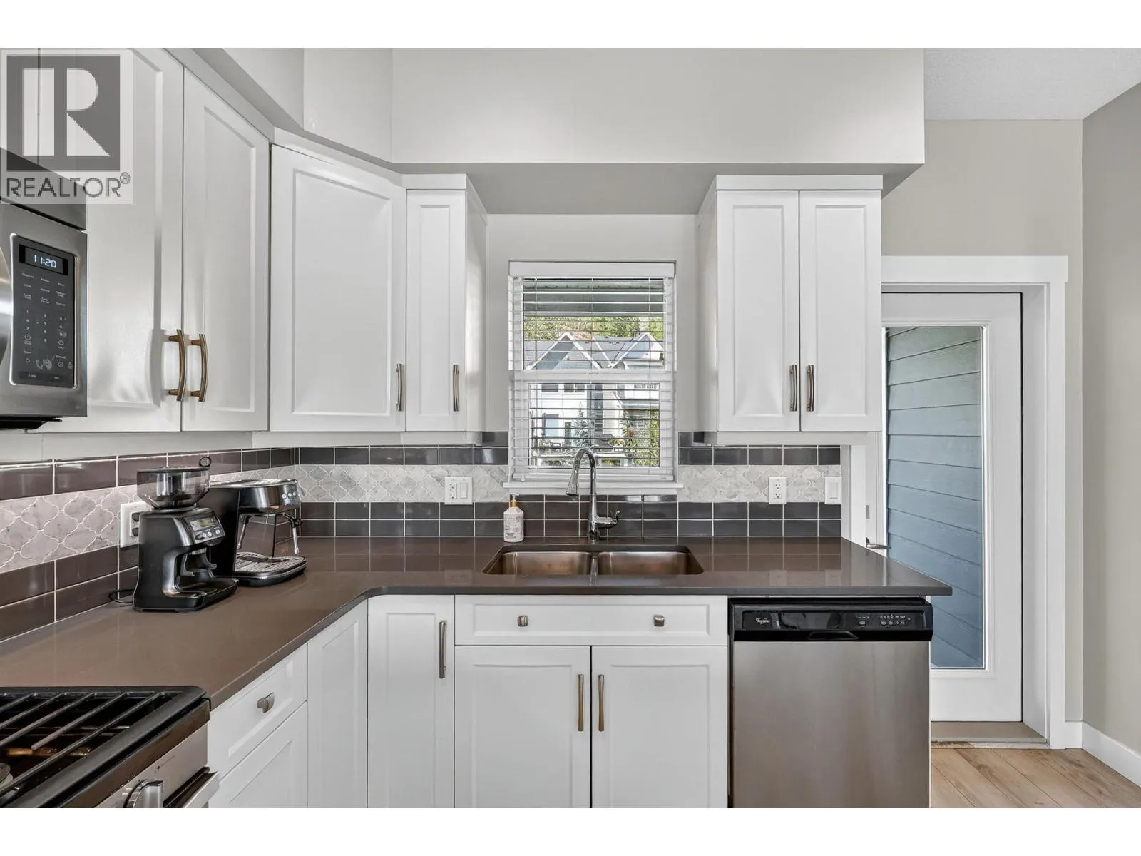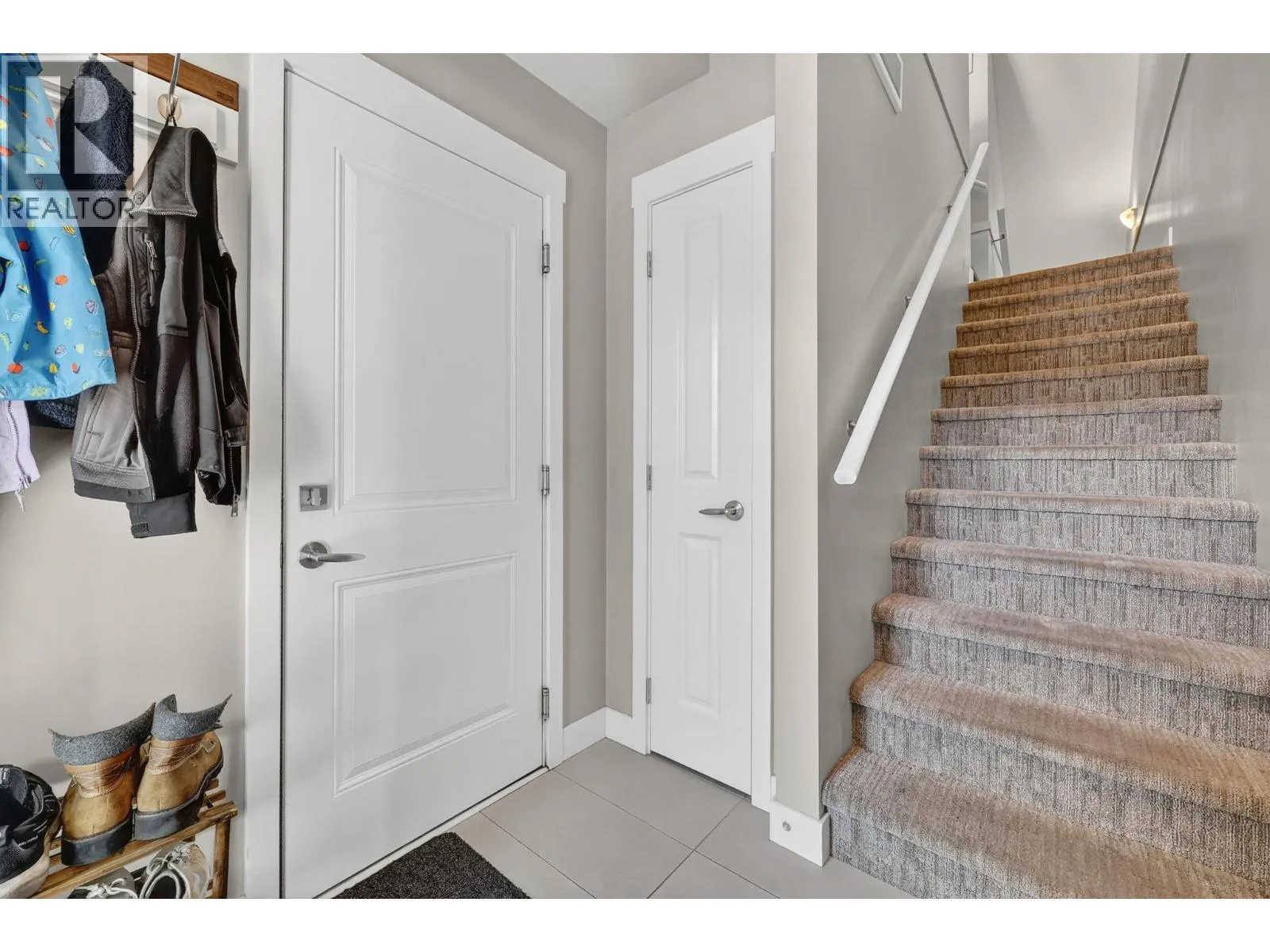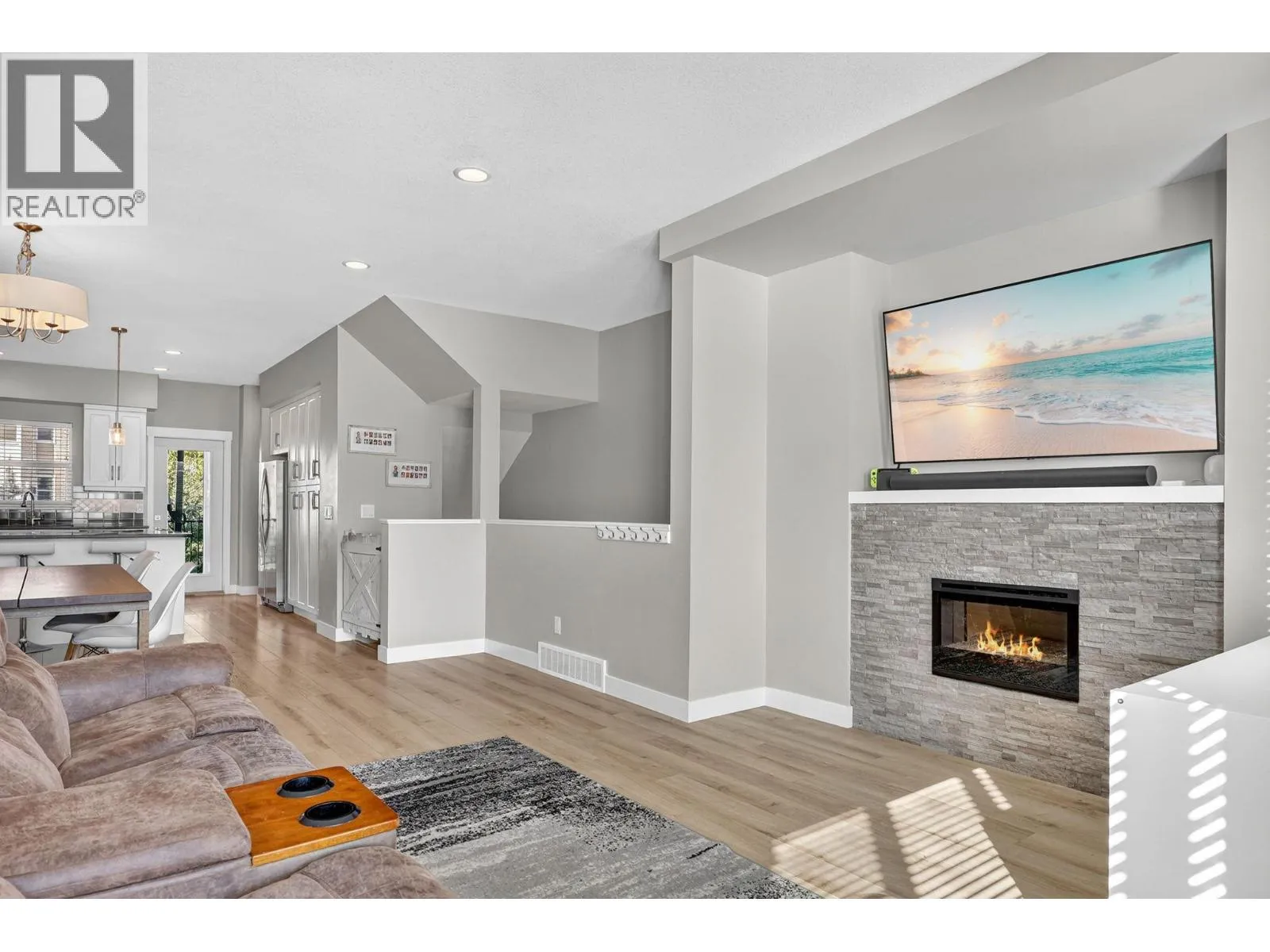 Welcome to ERA, an immaculate townhome community where style meets convenience. This spacious 4-bedroom, 2.5-bath, 3-story home is one of the largest in the complex, backing onto the courtyard for privacy and a perfect spot to watch the kids play. Ideally located just minutes from Shannon Lake Golf Course, schools, transit, shopping, hiking trails, and world-class wineries. The main floor features 9â ceilings, an open-concept design, wide plank laminate flooring, and an electric fireplace. The large kitchen offers custom cabinetry, quartz countertops, stainless steel appliances with a gas stove, soft-close cupboards, pantry, and under-mount sink. A 2-piece powder room and partially covered sundeck with a gas BBQ hookup complete the level. Upstairs, the primary suite boasts a large walk-in closet and a luxurious 4-piece ensuite with quartz counters and double sinks. Two additional bedrooms, a full bath, and laundry area with a sink add convenience. The entry level offers a 4th bedroom/flex space with walkout access to the patio and fenced backyard. With 3 parking spots, including a large single garage and two full-length exterior stalls, plus eco-smart features like a high-efficiency furnace and Low-E windows, this home is designed for modern living. Low strata fees, rentals, and pets, including up to two large dogs, are all welcome! (id:27476)