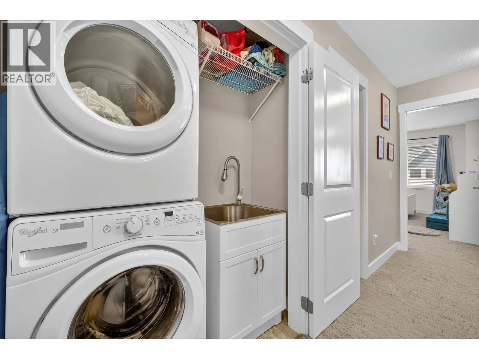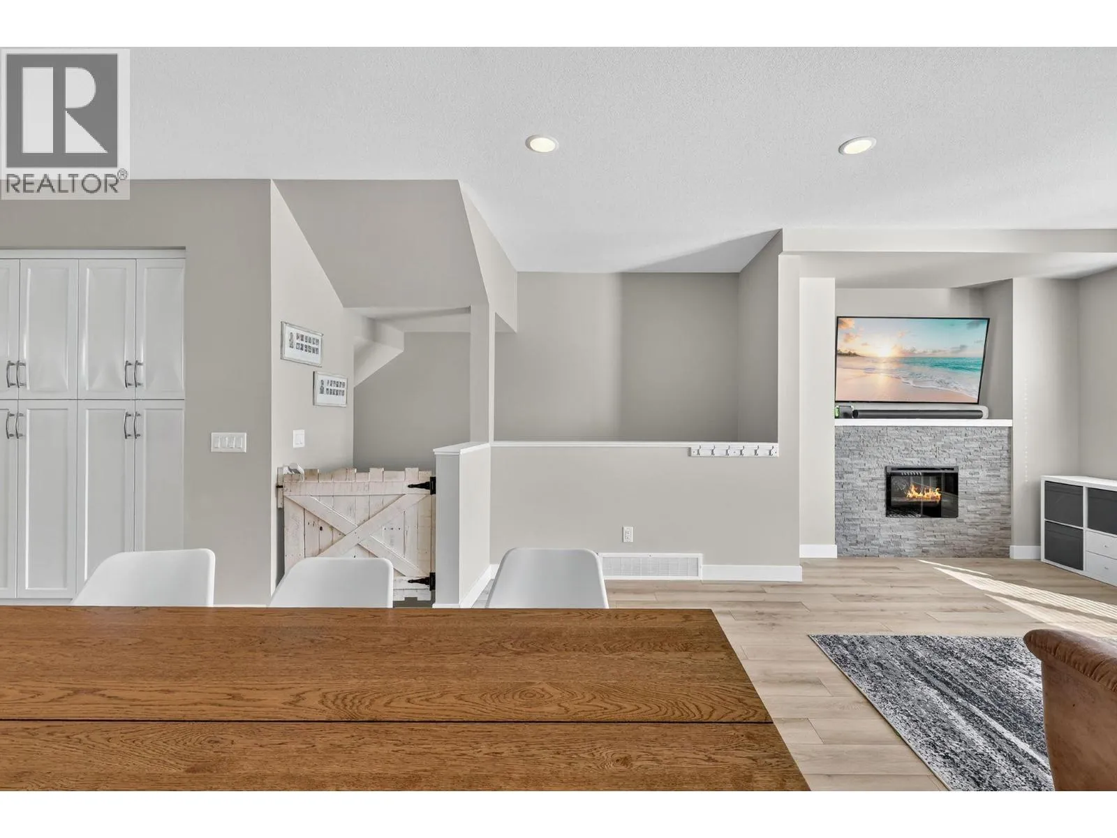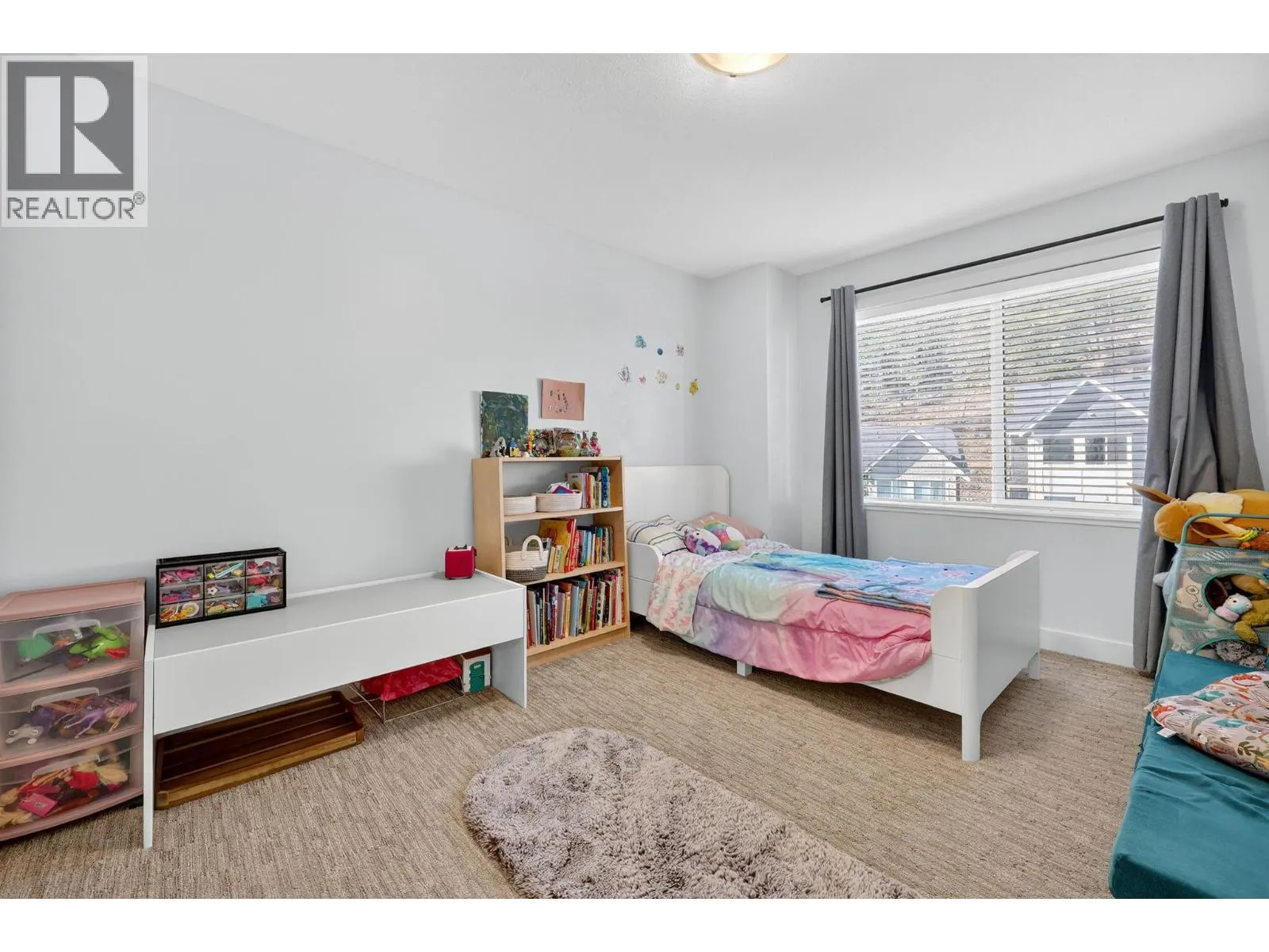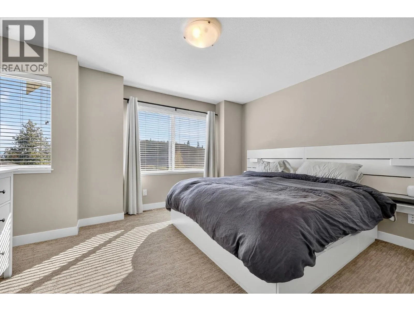 Welcome to ERA, an immaculate townhome community where style meets convenience. This spacious 4-bedroom, 2.5-bath, 3-story home is one of the largest in the complex, backing onto the courtyard for privacy and a perfect spot to watch the kids play. Ideally located just minutes from Shannon Lake Golf Course, schools, transit, shopping, hiking trails, and world-class wineries. The main floor features 9â ceilings, an open-concept design, wide plank laminate flooring, and an electric fireplace. The large kitchen offers custom cabinetry, quartz countertops, stainless steel appliances with a gas stove, soft-close cupboards, pantry, and under-mount sink. A 2-piece powder room and partially covered sundeck with a gas BBQ hookup complete the level. Upstairs, the primary suite boasts a large walk-in closet and a luxurious 4-piece ensuite with quartz counters and double sinks. Two additional bedrooms, a full bath, and laundry area with a sink add convenience. The entry level offers a 4th bedroom/flex space with walkout access to the patio and fenced backyard. With 3 parking spots, including a large single garage and two full-length exterior stalls, plus eco-smart features like a high-efficiency furnace and Low-E windows, this home is designed for modern living. Low strata fees, rentals, and pets, including up to two large dogs, are all welcome! (id:27476)
