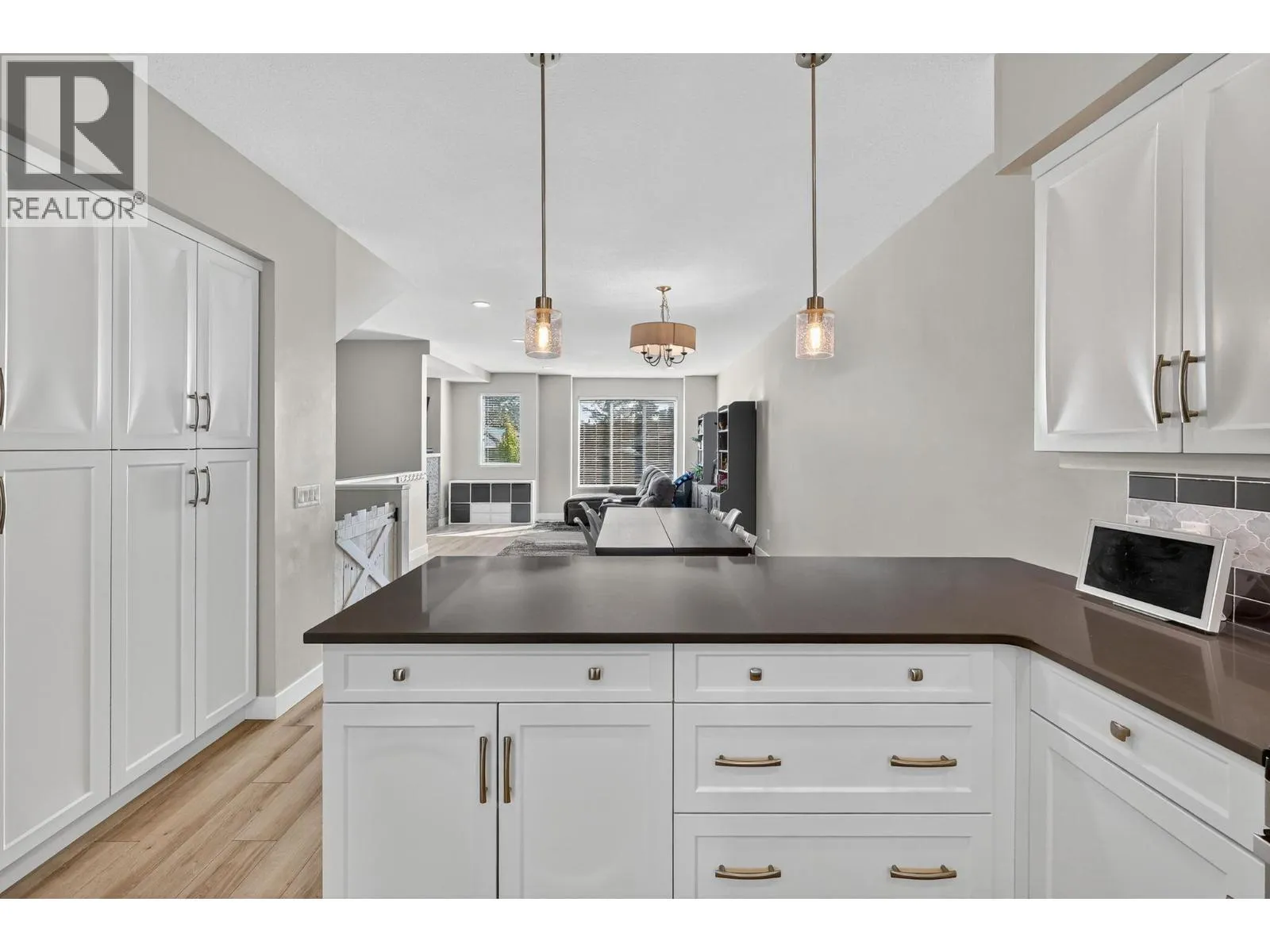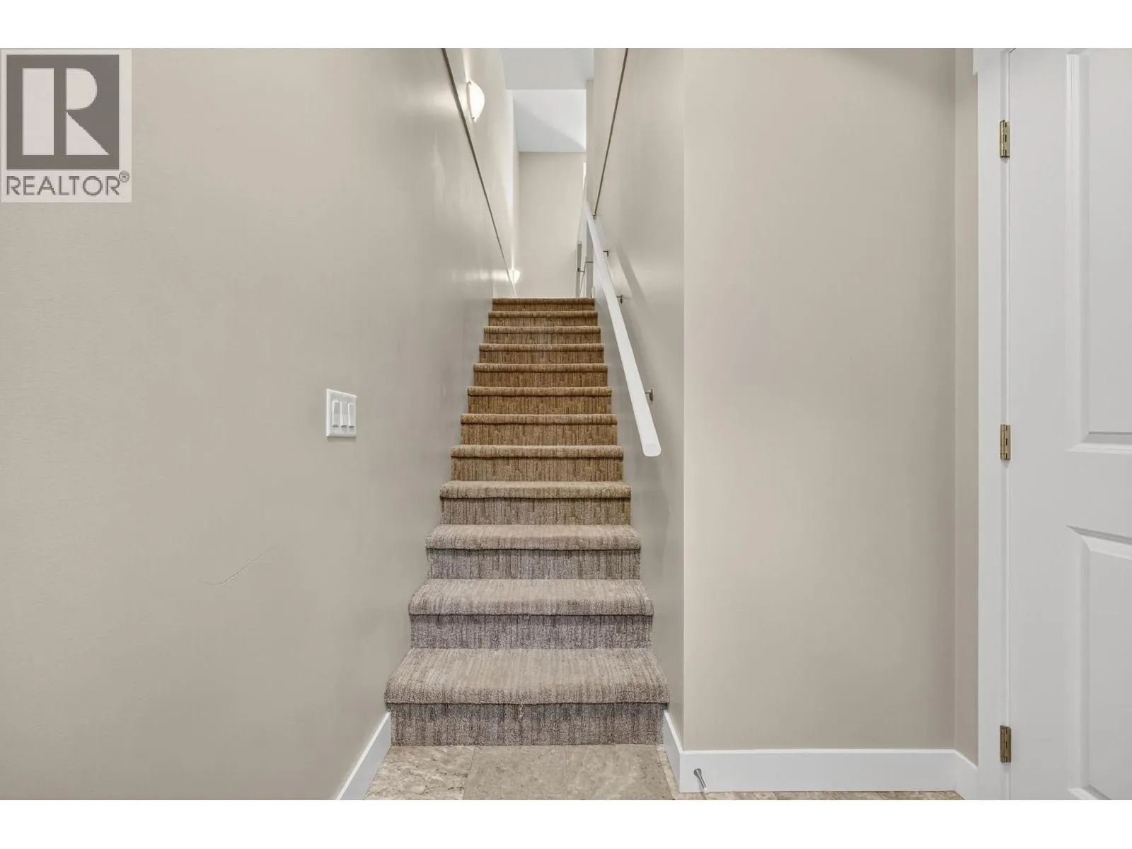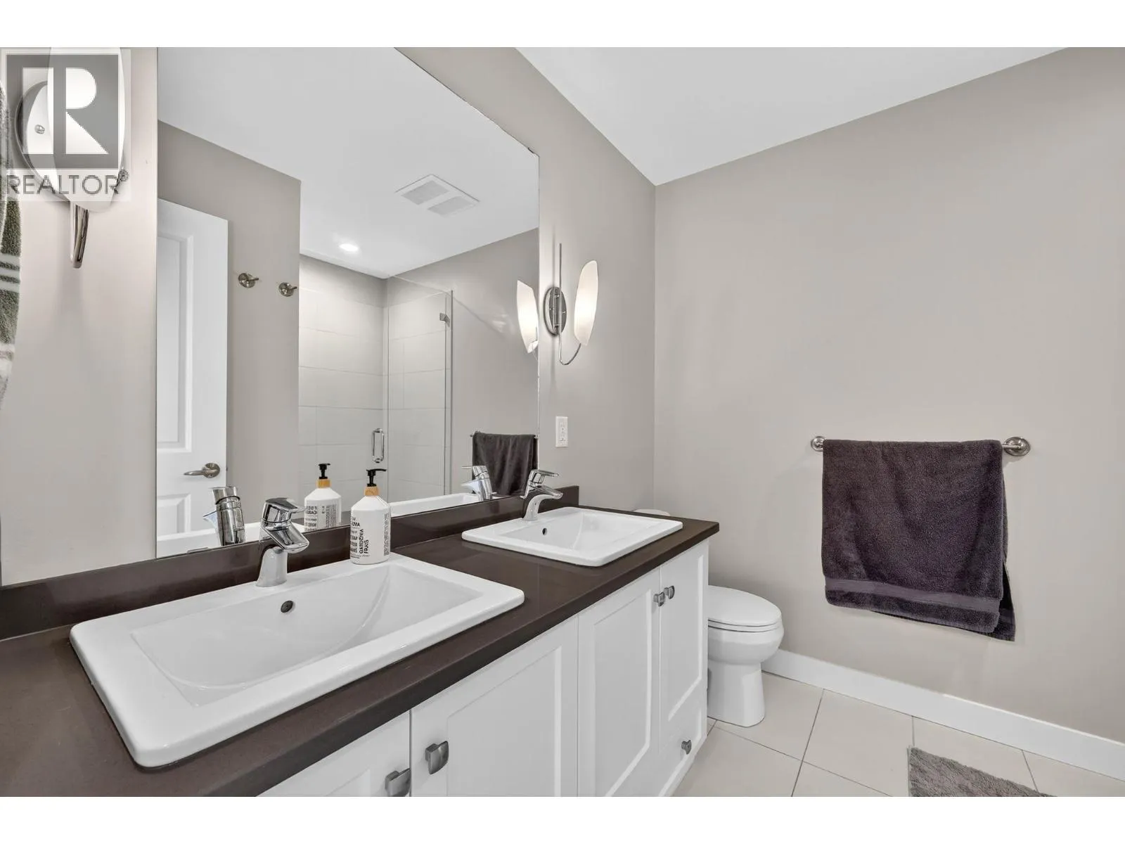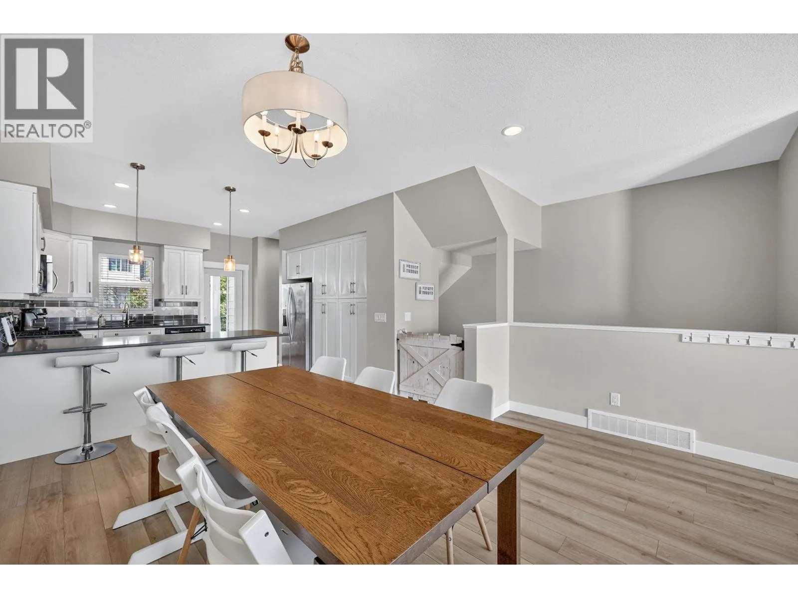 Welcome to ERA, an immaculate townhome community where style meets convenience. This spacious 4-bedroom, 2.5-bath, 3-story home is one of the largest in the complex, backing onto the courtyard for privacy and a perfect spot to watch the kids play. Ideally located just minutes from Shannon Lake Golf Course, schools, transit, shopping, hiking trails, and world-class wineries. The main floor features 9â ceilings, an open-concept design, wide plank laminate flooring, and an electric fireplace. The large kitchen offers custom cabinetry, quartz countertops, stainless steel appliances with a gas stove, soft-close cupboards, pantry, and under-mount sink. A 2-piece powder room and partially covered sundeck with a gas BBQ hookup complete the level. Upstairs, the primary suite boasts a large walk-in closet and a luxurious 4-piece ensuite with quartz counters and double sinks. Two additional bedrooms, a full bath, and laundry area with a sink add convenience. The entry level offers a 4th bedroom/flex space with walkout access to the patio and fenced backyard. With 3 parking spots, including a large single garage and two full-length exterior stalls, plus eco-smart features like a high-efficiency furnace and Low-E windows, this home is designed for modern living. Low strata fees, rentals, and pets, including up to two large dogs, are all welcome! (id:27476)