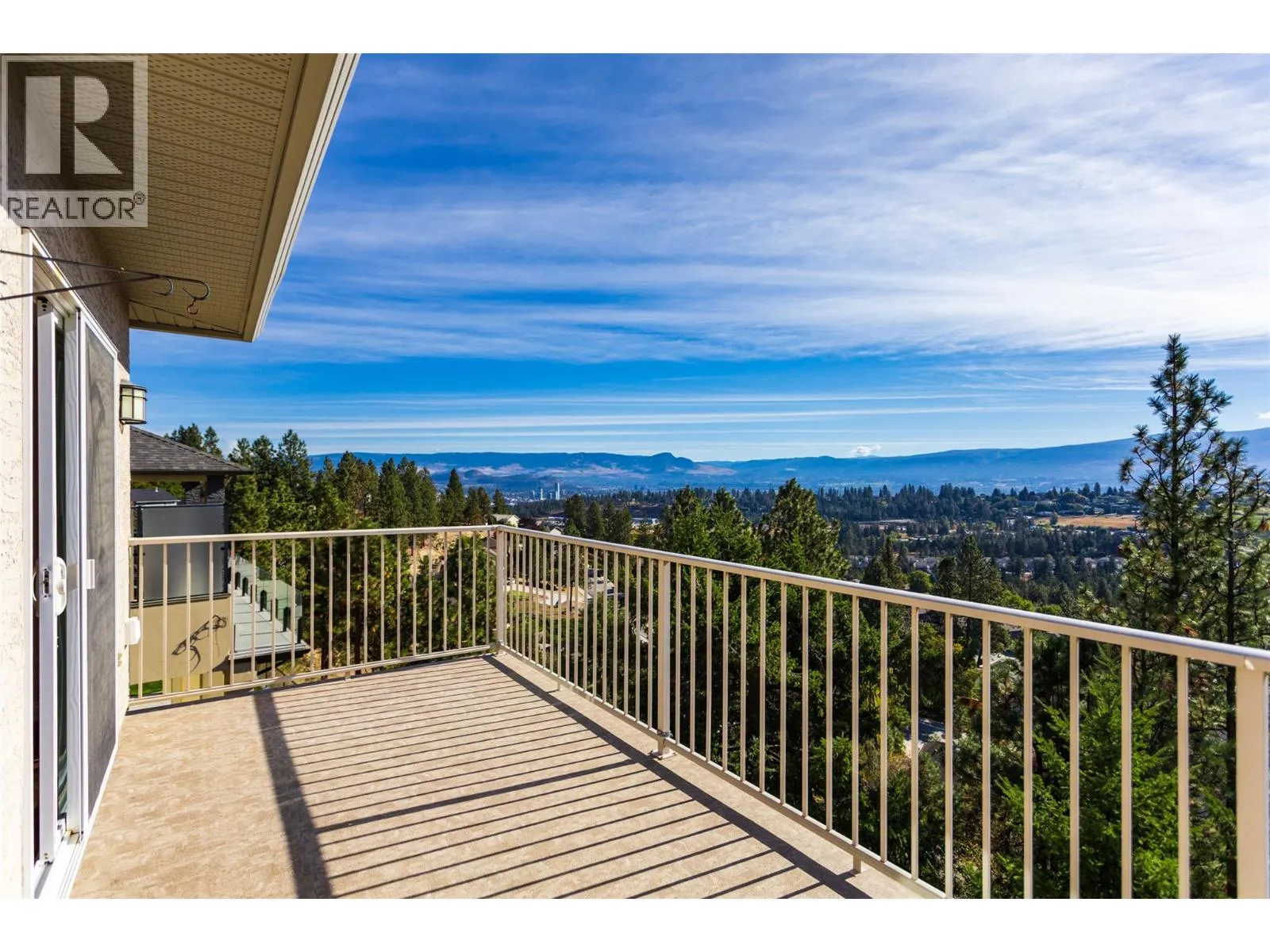 Welcome to Aurora Heights â an exclusive gated community where luxury and tranquility meet, offering breathtaking panoramic views of Okanagan Lake, the city, and the surrounding mountains. This beautifully updated home is perfectly positioned to take full advantage of its setting, with expansive windows that fill the interior with natural light and frame the stunning scenery beyond. Inside, the home has been freshly painted throughout, complemented by new flooring and brand-new appliances that lend a fresh, modern feel. The lighting has been thoughtfully updated, enhancing the ambiance in every room and highlighting the homeâs bright and inviting character. With 4 bedrooms, 3 bathrooms, and a spacious media room, this home is ideal for both everyday living and entertaining. Two large decks provide exceptional outdoor spaces to relax or gather with friends while enjoying the captivating views. The large 550 sqft crawl space with 6â ceilings offers an abundance of convenient storage. Situated on over one-third of an acre, the property includes a beautifully landscaped front yard and a natural forested area in the back â perfect for those who appreciate a touch of nature and privacy. Set within one of the areaâs most desirable gated neighbourhoods, this home combines style, comfort, and stunning vistas â a true retreat above the lake. (id:27476)