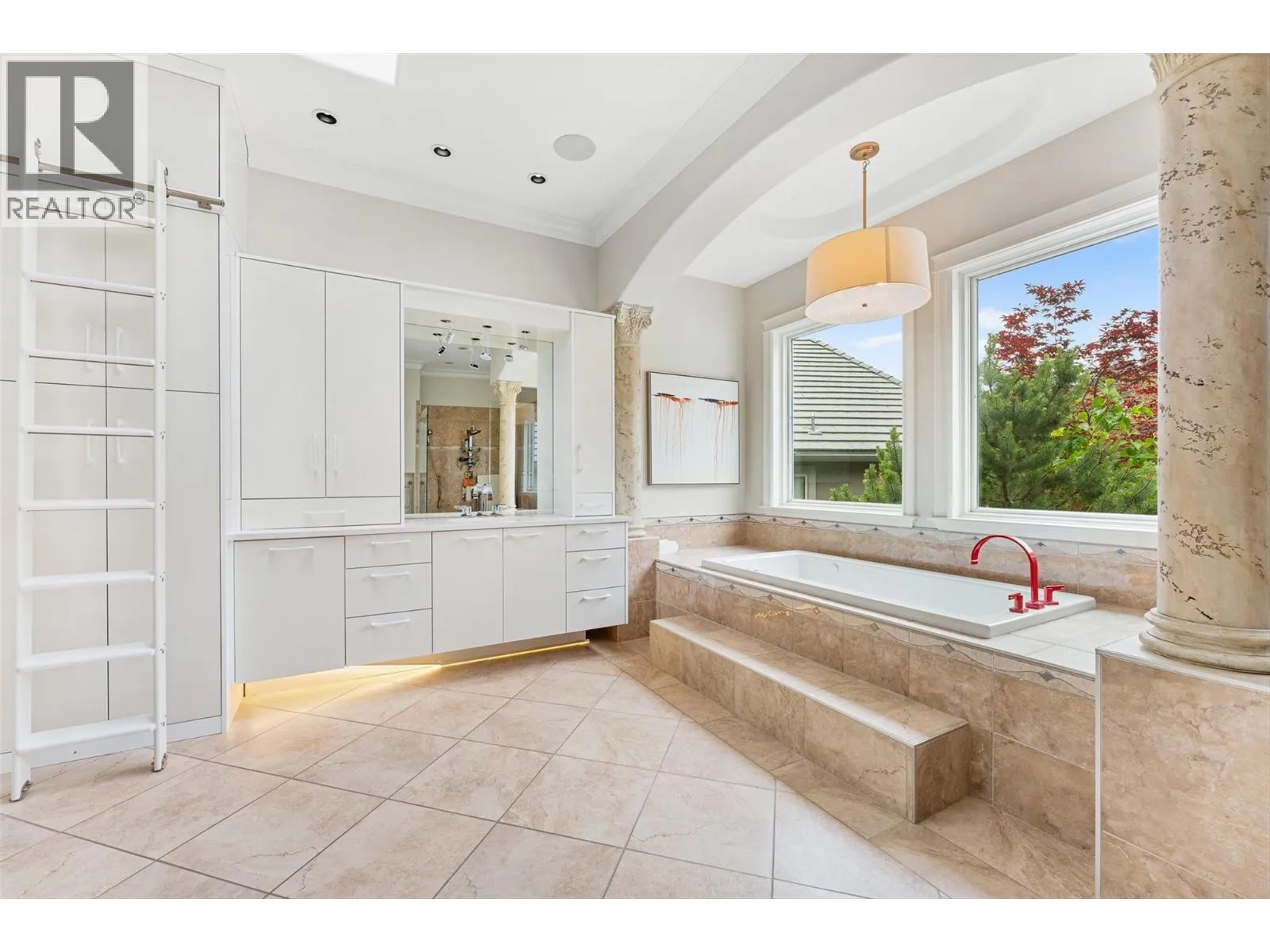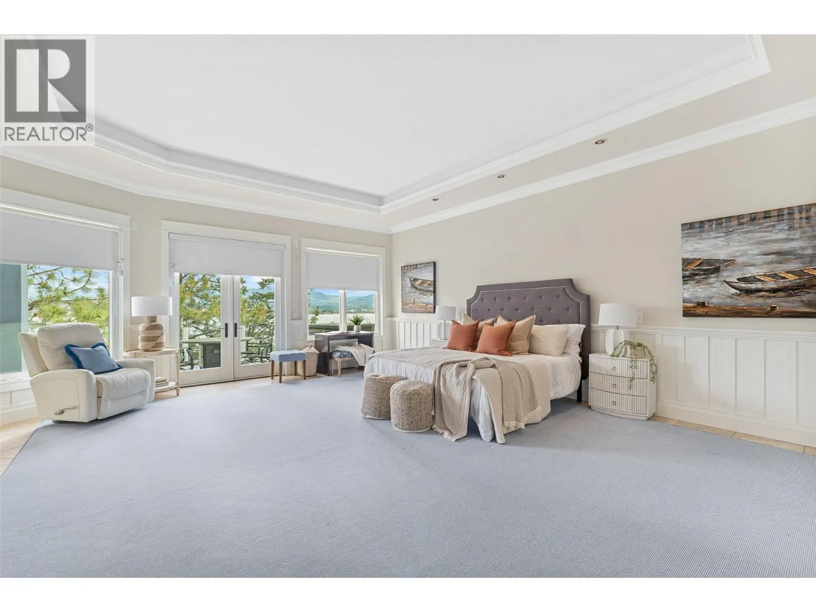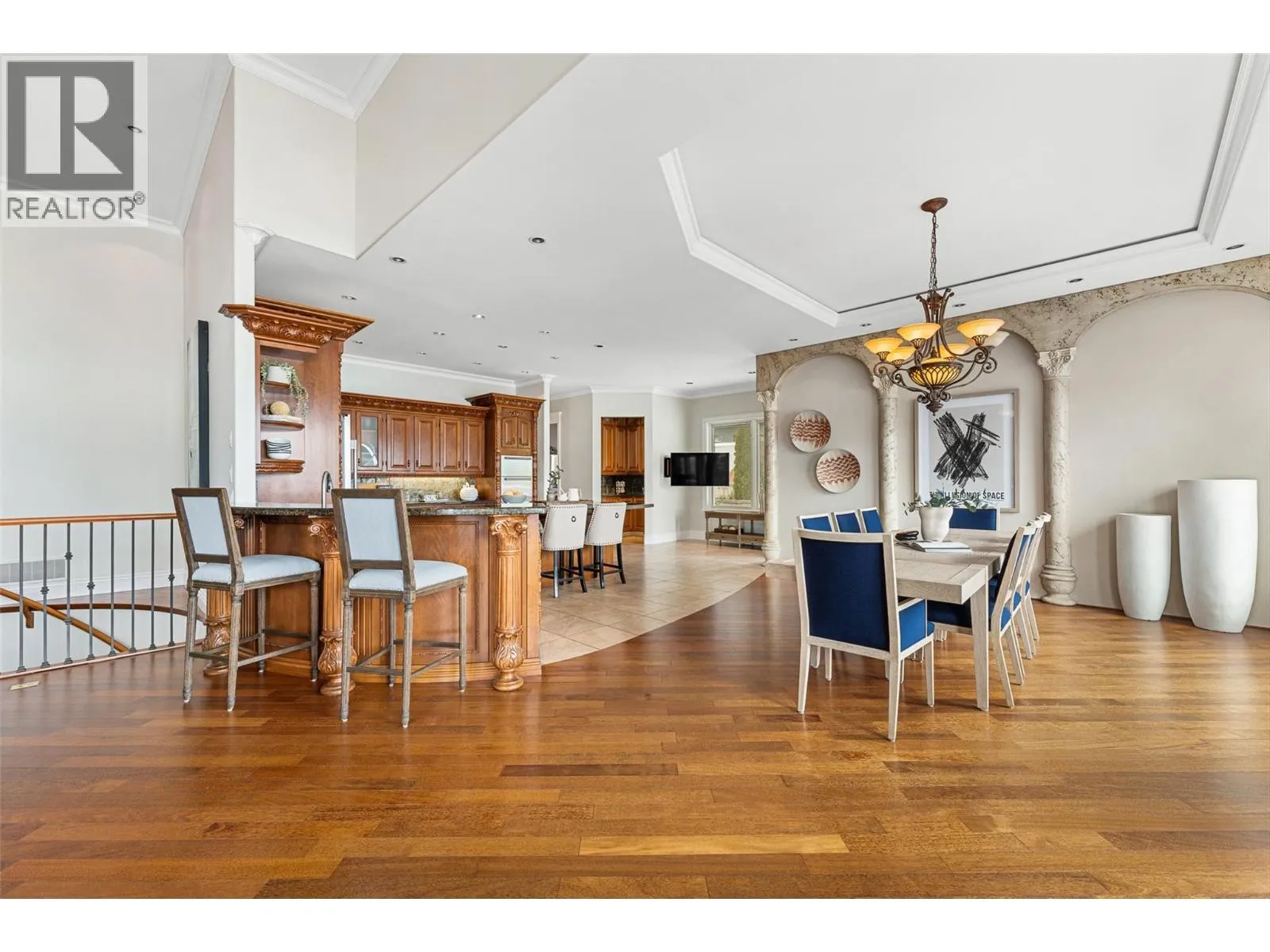 Enjoy sweeping lake and city views from this beautiful home offering over 7000 sq. ft. of living space in the sought-after neighborhood of Lakeview Heights. The home offers 4 bedrooms and expansive areas for entertaining, with 3 levels of lakeview decks. Throughout the home, youâll find superior craftsmanship, including hand-crafted cabinets, custom wood detailing, wainscoting, coffered ceilings, and molding. On the main level, enjoy open-concept living with high ceilings, a gas fireplace, and stunning lake views as the backdrop. The generous-sized kitchen is ideal for hosting and gathering, finished with custom wood cabinetry, granite countertops, and stainless-steel appliances, including a gas range. Step through the sliding doors to a large deck offering the perfect setting for al fresco dining and outdoor living. The expansive main floor lakeview primary bedroom features built-ins, a walk-through closet, and a large 5-piece en suite with a soaking tub and a glass shower. The lower level is an entertainerâs delight with a rec room, indoor pool, gym, home theater, 2 beds, and 3 baths, and a hot tub on the deck. The in-law suite on the basement level offers 1 bedroom, 1 bathroom, a kitchen, a living room, and another spacious covered patio. The home also includes a two-car garage with an oversized driveway and low-maintenance landscaping. This is an excellent neighborhood just minutes from downtown Kelowna, Okanagan Lake, and West Kelowna amenities. (id:27476)