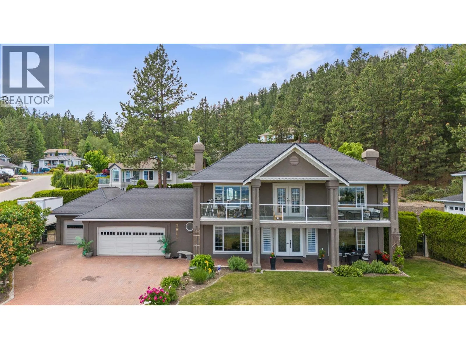 Are you looking for a beautiful home with amazing views, tons of parking, and a giant pool? This expansive 15,000 s/f property boasts a rare combination of amenities which include: unobstructed East/South facing the Lake, Valley and Vineyard views, a three car garage equipped with a Tesla EV charging station combined with a massive flat driveway, and a separate rear parking area for the boat, RV, and other toys, along with a large L shaped pool with an 8' deep end. This home has been wonderfully cared for and updated over the years. It features a classic 90's main floor layout with plenty of room to entertain, a spacious office with stunning views, and a bright Kitchen that overlooks the pool. The private backyard features plenty of space to entertain, garden and relax in the sun. There is an option for a Carriage home for extra income or for friends and family to stay over. This stunning home is a must-see to be fully appreciated!! (id:27476)
