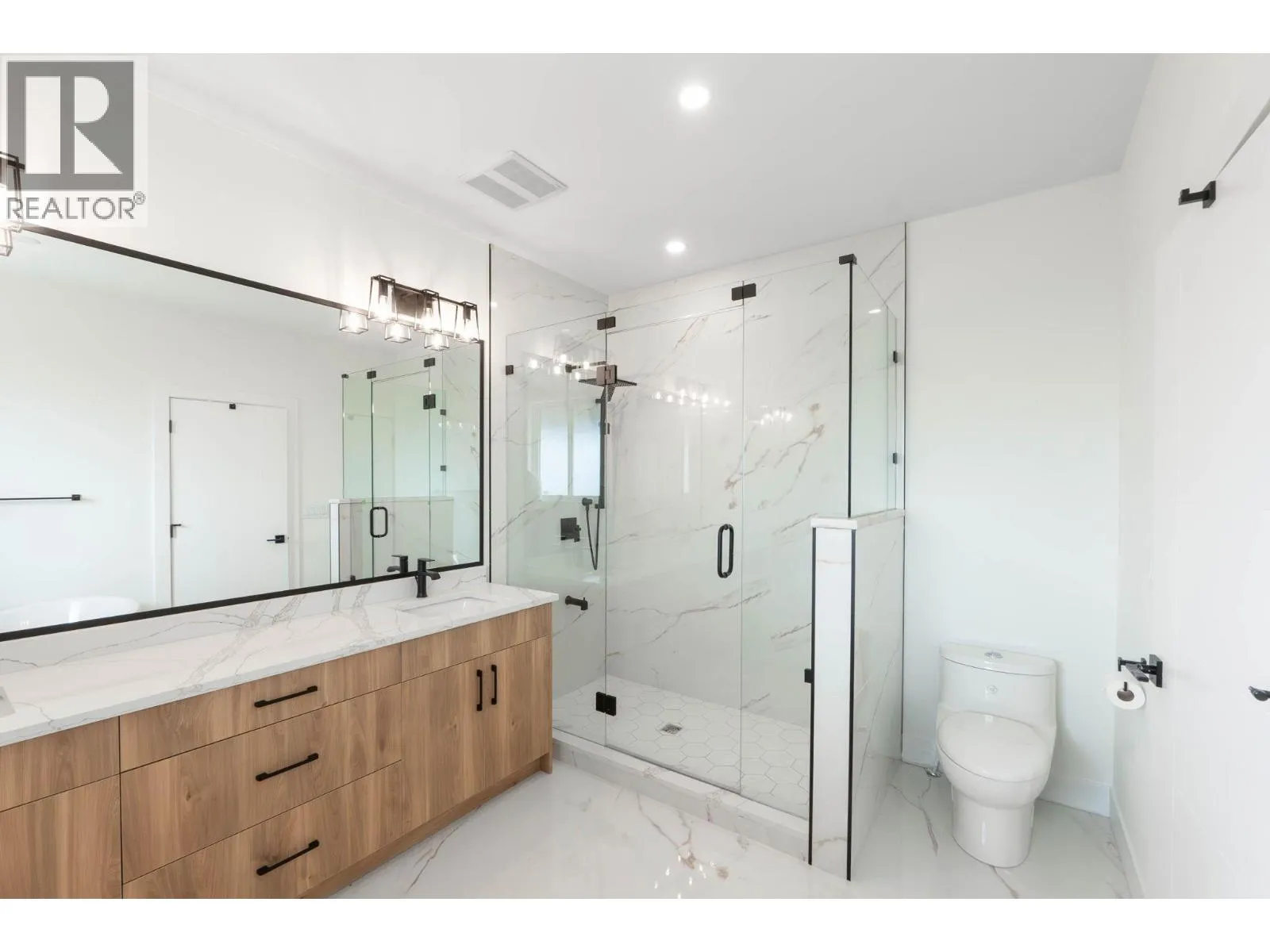 This stunning brand new modern home features high ceilings and an open concept kitchen with a massive island, perfect for entertaining. The main floor includes a versatile room that can serve as an office or a bedroom, alongside a full bathroom for convenience. On the second level you'll find four spacious bedrooms and three full bathrooms, including a luxurious primary suite with a feature wall, an ensuite boasting a double vanity, a freestanding tub, and a separate shower. The lower level includes a legal two-bedroom suite and a studio suite, ideal for guests or rental income. Enjoy a private backyard with breathtaking mountain views, all while being close to schools, parks, and just minutes from downtown Kelowna. This is contemporary living at its finest. (id:27476)