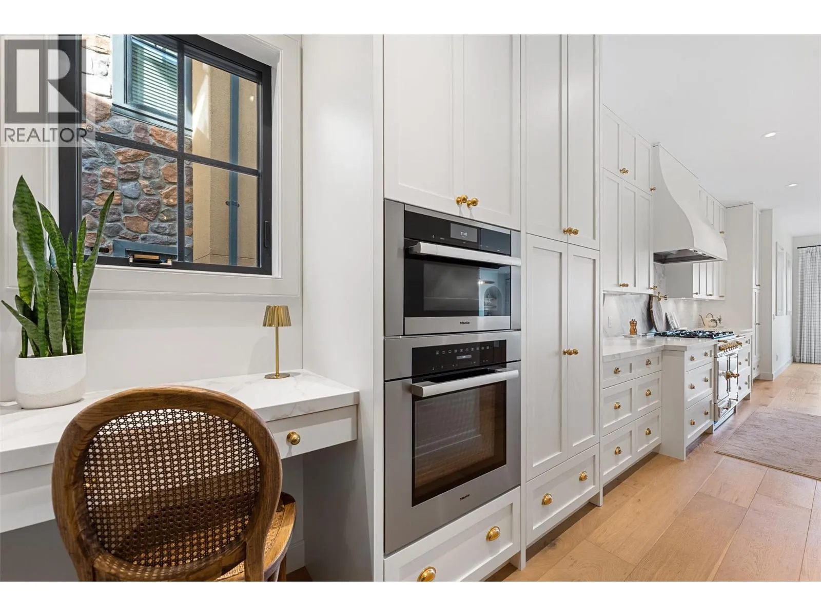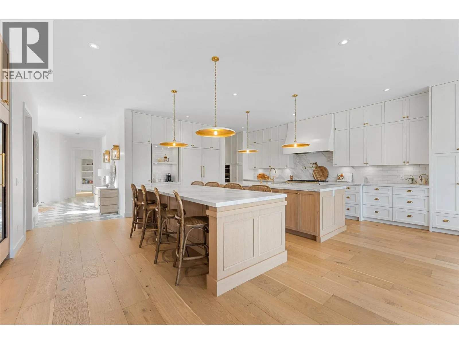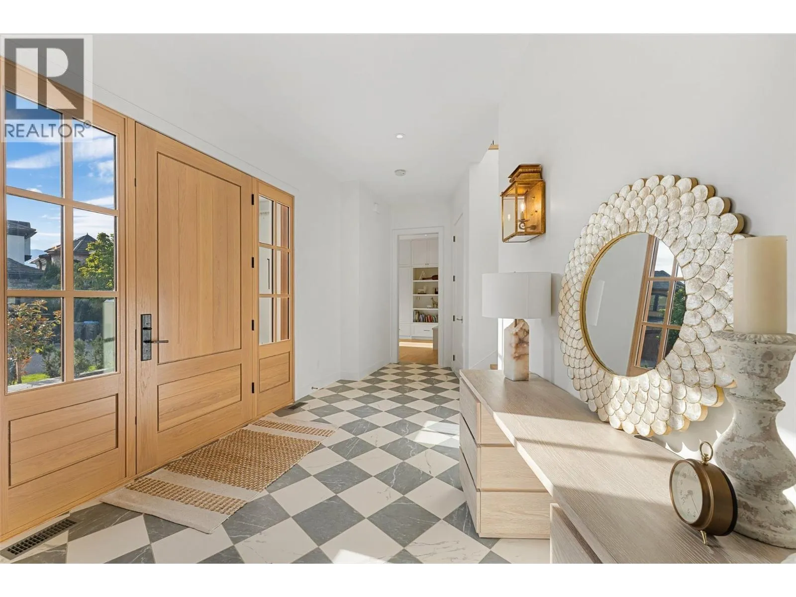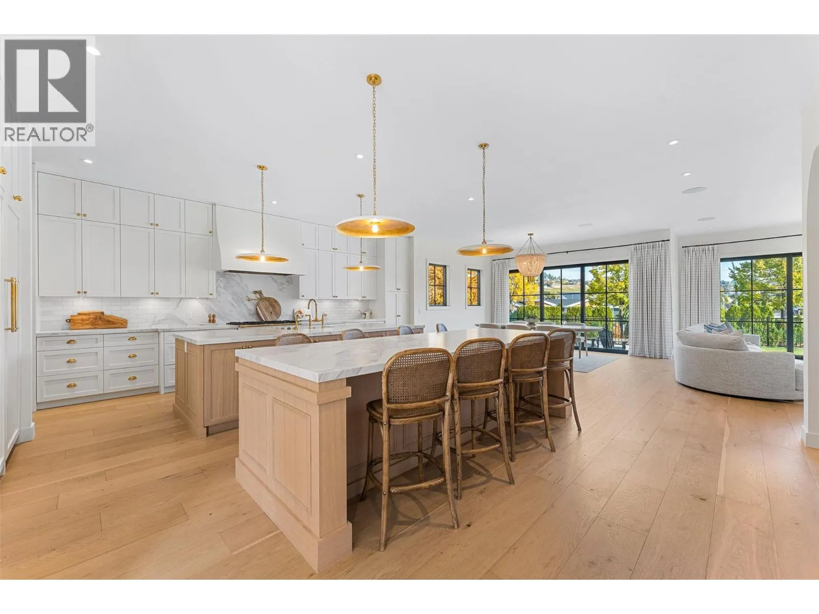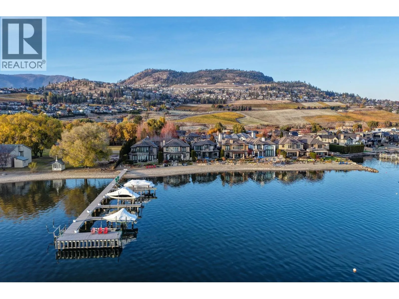 Located within one of West Kelownaâs most desirable gated lakefront communities, Green Bay Landing. This custom residence offers a picturesque blend of thoughtful design, refined finishes, and exceptional livability. Set along the tranquil canal with lake and mountain views, the home provides effortless access to life on the water with your own private boat slip just steps away and designed for a future private pool. Inside, wide-plank hardwood, elegant archways, and bespoke millwork establish a timeless foundation carried consistently throughout. The chefâs kitchen is a showpiece, featuring dual islands, a La Cornue range, integrated Miele and Fisher & Paykel appliances, and a hidden butlerâs pantry with additional refrigeration, dishwasher drawers, and workspace. The open-concept dining and living areas flow seamlessly to the patio and gardens through wall-to-wall glass doors, creating an inviting indoor-outdoor connection. With seven beds and eight baths the layout is ideal for hosting family and guests in comfort and privacy. Both the main-level and upper-level primary suites feature fireplaces, spa-inspired baths, and custom closets, while additional spaces such as a home office, dual laundry rooms, and abundant storage enhance everyday functionality. From its cohesive design to its curated finishes, this home is a showcase of craftsmanship, comfort, and connection to the Okanagan waterfront lifestyle (id:27476)