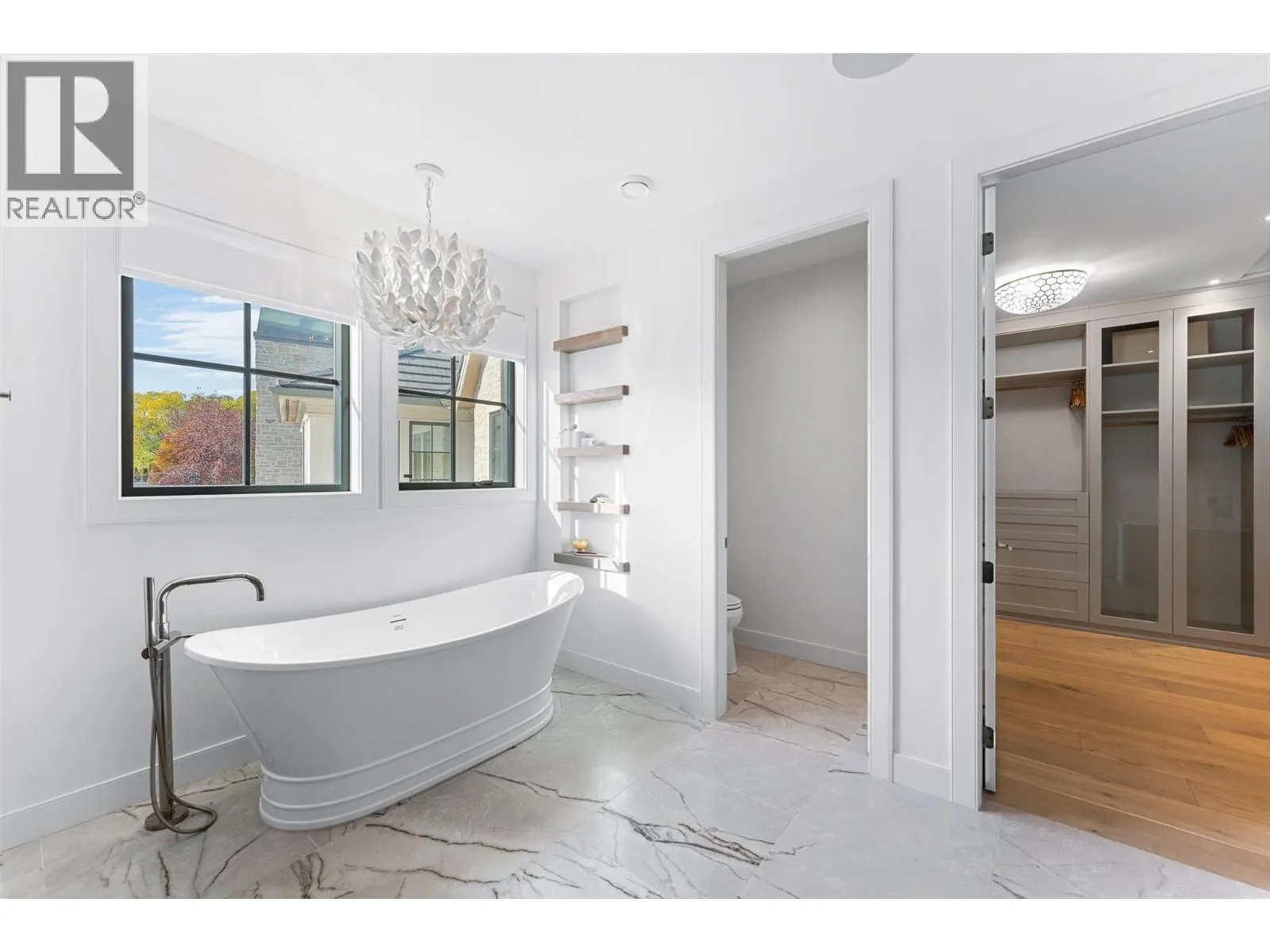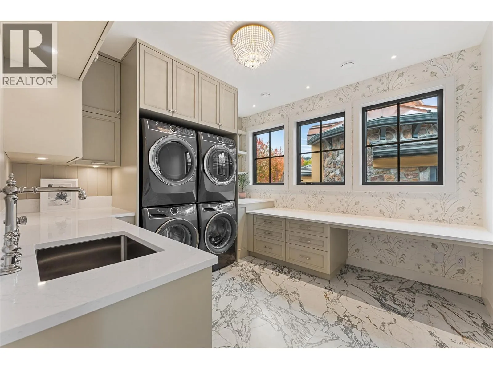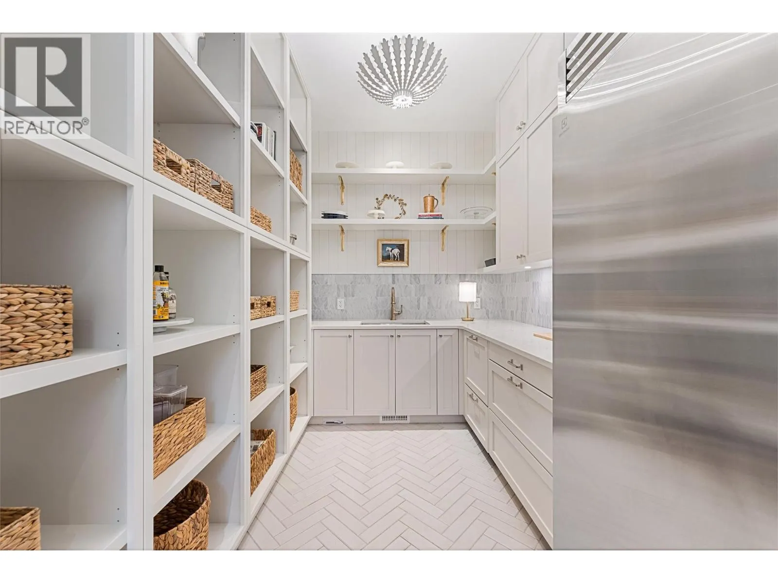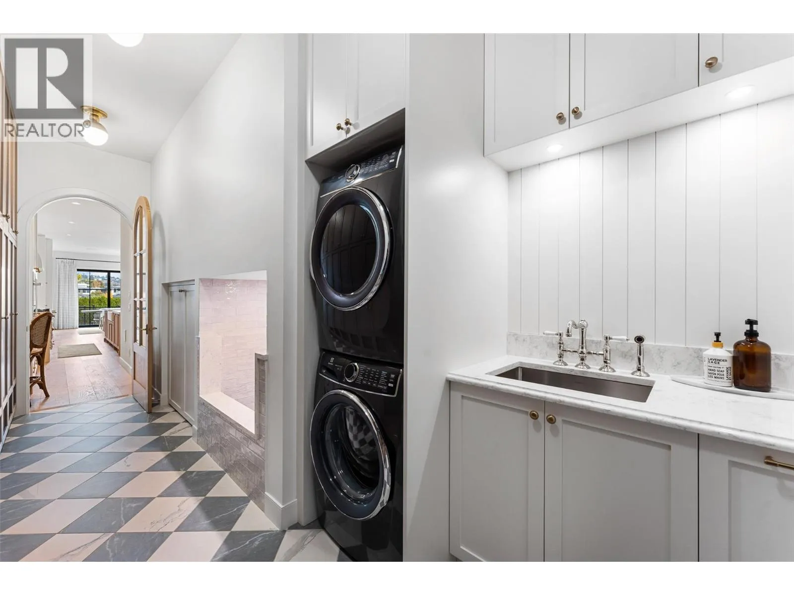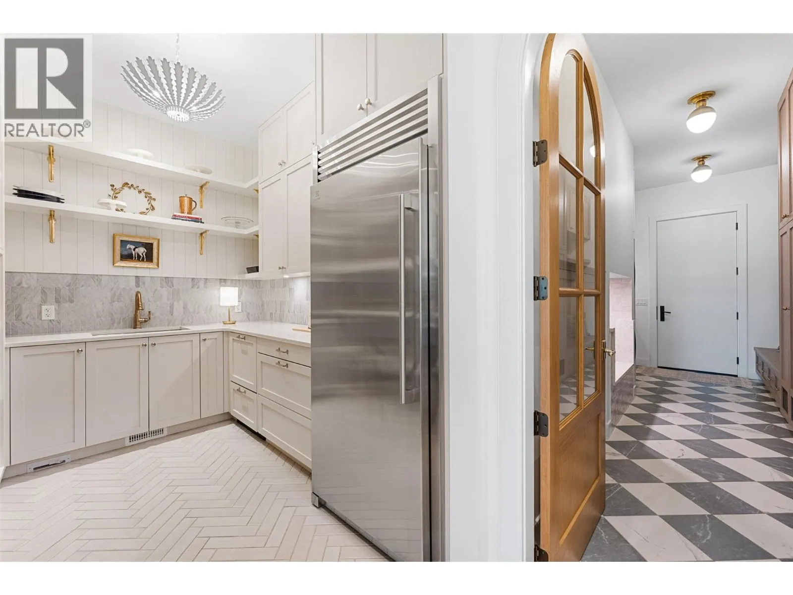 Located within one of West Kelownaâs most desirable gated lakefront communities, Green Bay Landing. This custom residence offers a picturesque blend of thoughtful design, refined finishes, and exceptional livability. Set along the tranquil canal with lake and mountain views, the home provides effortless access to life on the water with your own private boat slip just steps away and designed for a future private pool. Inside, wide-plank hardwood, elegant archways, and bespoke millwork establish a timeless foundation carried consistently throughout. The chefâs kitchen is a showpiece, featuring dual islands, a La Cornue range, integrated Miele and Fisher & Paykel appliances, and a hidden butlerâs pantry with additional refrigeration, dishwasher drawers, and workspace. The open-concept dining and living areas flow seamlessly to the patio and gardens through wall-to-wall glass doors, creating an inviting indoor-outdoor connection. With seven beds and eight baths the layout is ideal for hosting family and guests in comfort and privacy. Both the main-level and upper-level primary suites feature fireplaces, spa-inspired baths, and custom closets, while additional spaces such as a home office, dual laundry rooms, and abundant storage enhance everyday functionality. From its cohesive design to its curated finishes, this home is a showcase of craftsmanship, comfort, and connection to the Okanagan waterfront lifestyle (id:27476)