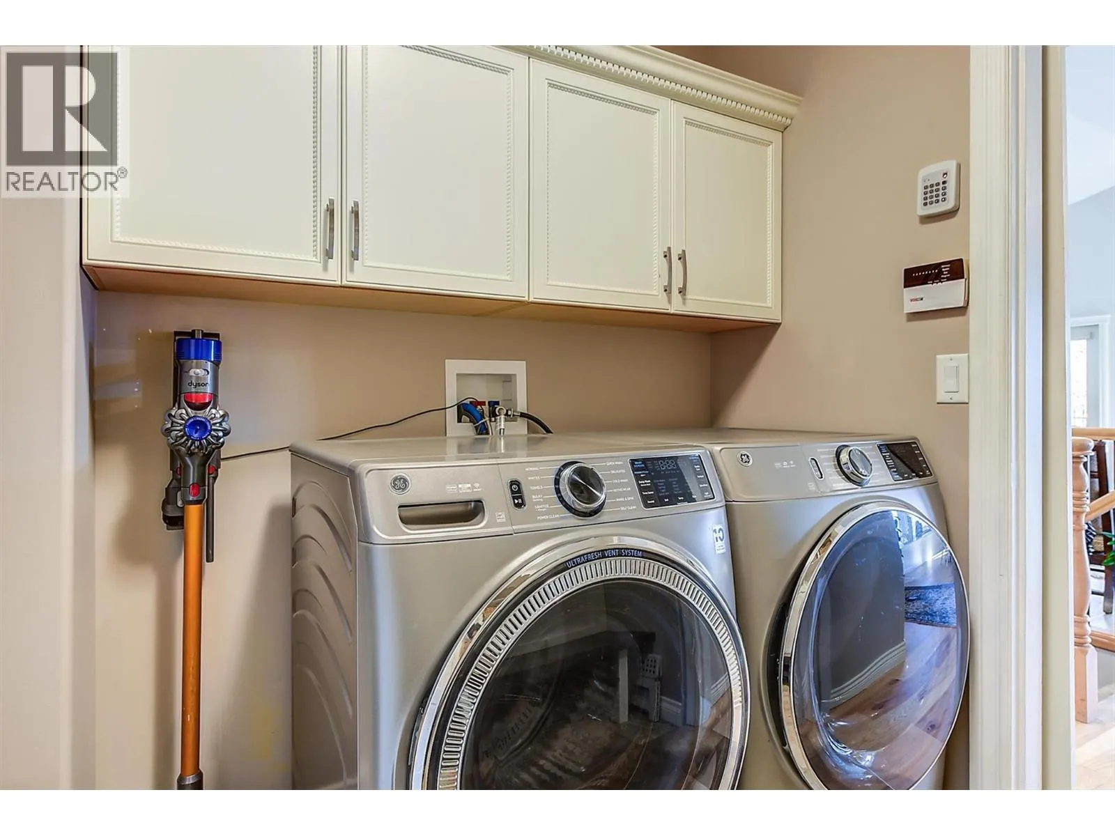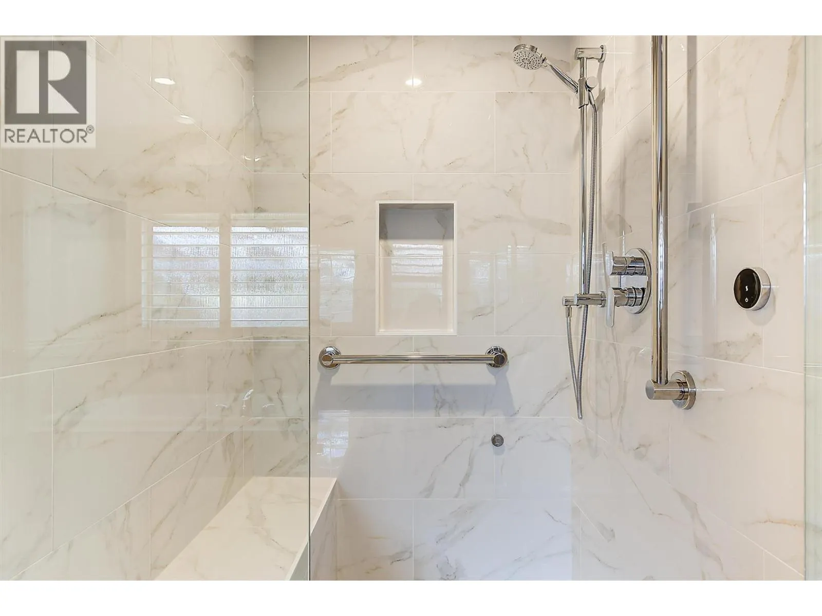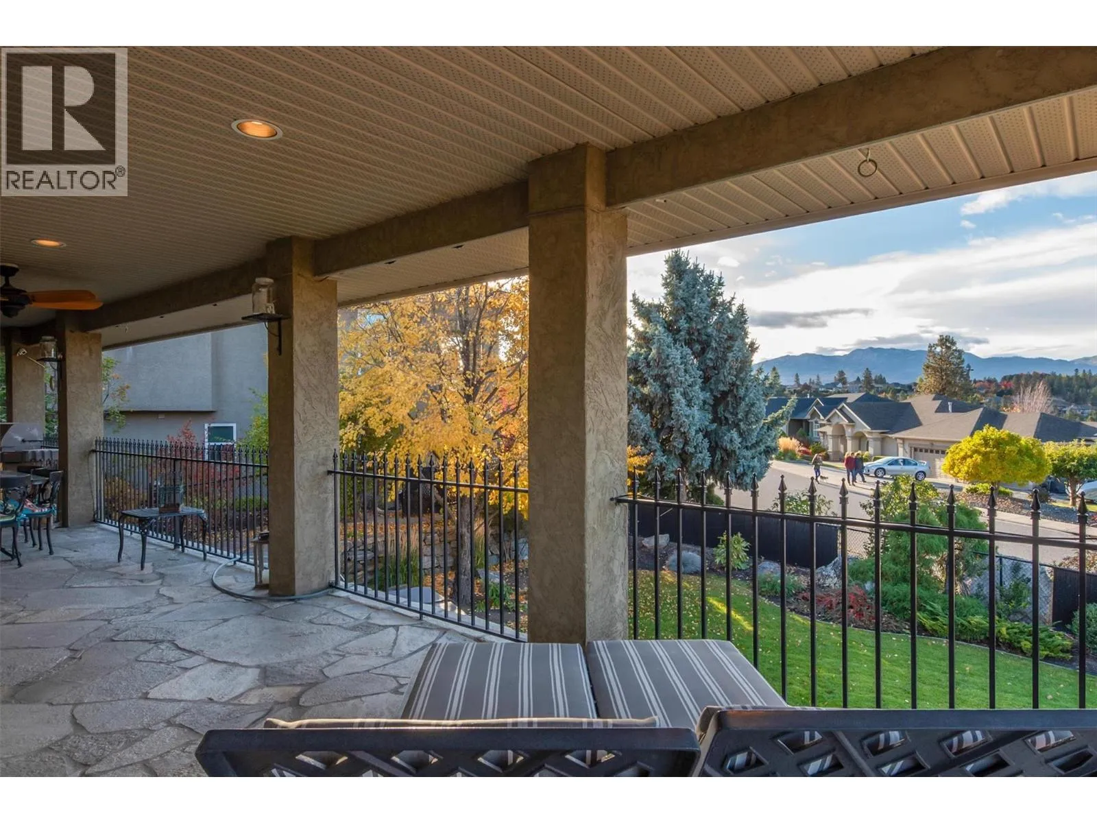 Welcome to Vineyard Estates & this custom walk-out rancher, blending timeless design & relaxed Okanagan luxury. Set on a beautifully landscaped 0.32-acre property, this home offers spectacular lake & mountain views, impeccable craftsmanship, & thoughtful updates throughout. From the moment you arrive, the level driveway, extensive rock landscaping, & private RV parking set the tone for easy, elegant living. Inside, vaulted ceilings & an open layout highlight stunning views. The gourmet kitchen, featuring quartz countertops, custom cabinetry, Fisher Paykel appliances, & a Miele steam oven are perfect for the home chef or entertainer. The main level flows naturally to the wrap-around flagstone terrace, through 3 sets of French doors, framing breathtaking panoramas of the lake and surrounding hills. The primary suite offers a serene retreat, a walk-in closet & large ensuite, while a new luxury steam shower brings spa-level comfort to your daily routine. The walk-out level features a TV/ family room, gym, huge guest bedroom w. office/flex space, & a pantry/ storage area.Step outside to a park-like backyard with lush gardens, a water feature, new hot tub & room for a pool. With abundant parking, gorgeous indoor/outdoor living space, proximity to Mission Hill Winery, Two Eagles Golf Course, & Mount Boucherie trails, this home captures the very best of Okanagan livingâideal for discerning empty nesters or anyone seeking luxurious comfort, elegance, & unforgettable views. (id:27476)