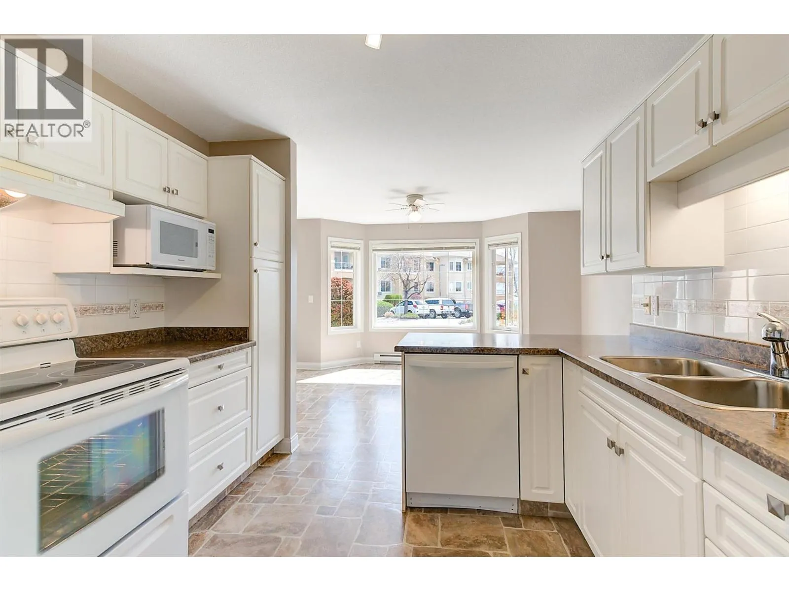 Welcome to Monticello â West Kelownaâs sought-after 55+ community offering comfort, convenience, and connection! Residents enjoy outstanding amenities, including a clubhouse with social spaces for card nights and happy hours, guest suites, a workshop, community garden, and RV parking. Perfectly located just steps from shops, dining, banks, and medical offices, Monticello provides the ideal setting for relaxed and carefree living. This bright and spacious ground-floor 2-bedroom, 2-bathroom condo is one of the largest floor plans in the complex. Thoughtfully designed for privacy, the bedrooms are ideally separated â perfect for hosting guests or creating a private den or hobby room. The kitchen offers a generous breakfast nook with direct deck access, while the inviting living room features a cozy gas fireplace and sliding doors that open to outdoor space. The primary suite includes a walk-in closet and a full ensuite bathroom. Additional highlights include new laminate flooring (2023), a large dining area, separate laundry room with space for a freezer, two secure underground parking stalls, and a storage locker. Pet friendly (1 cat or dog, with size restrictions). Experience comfortable, low-maintenance retirement living at its finest in one of West Kelownaâs most desirable 55+ communities. (id:27476)