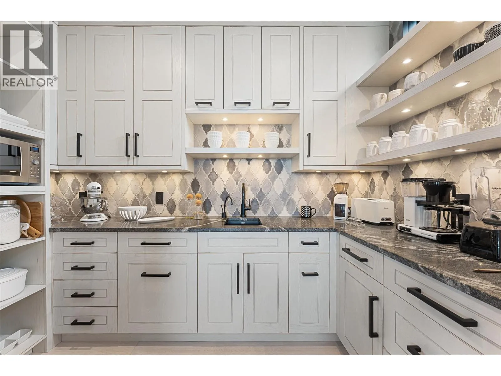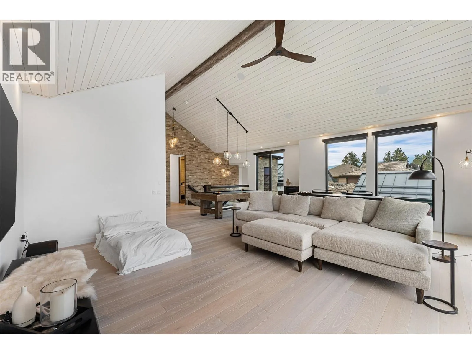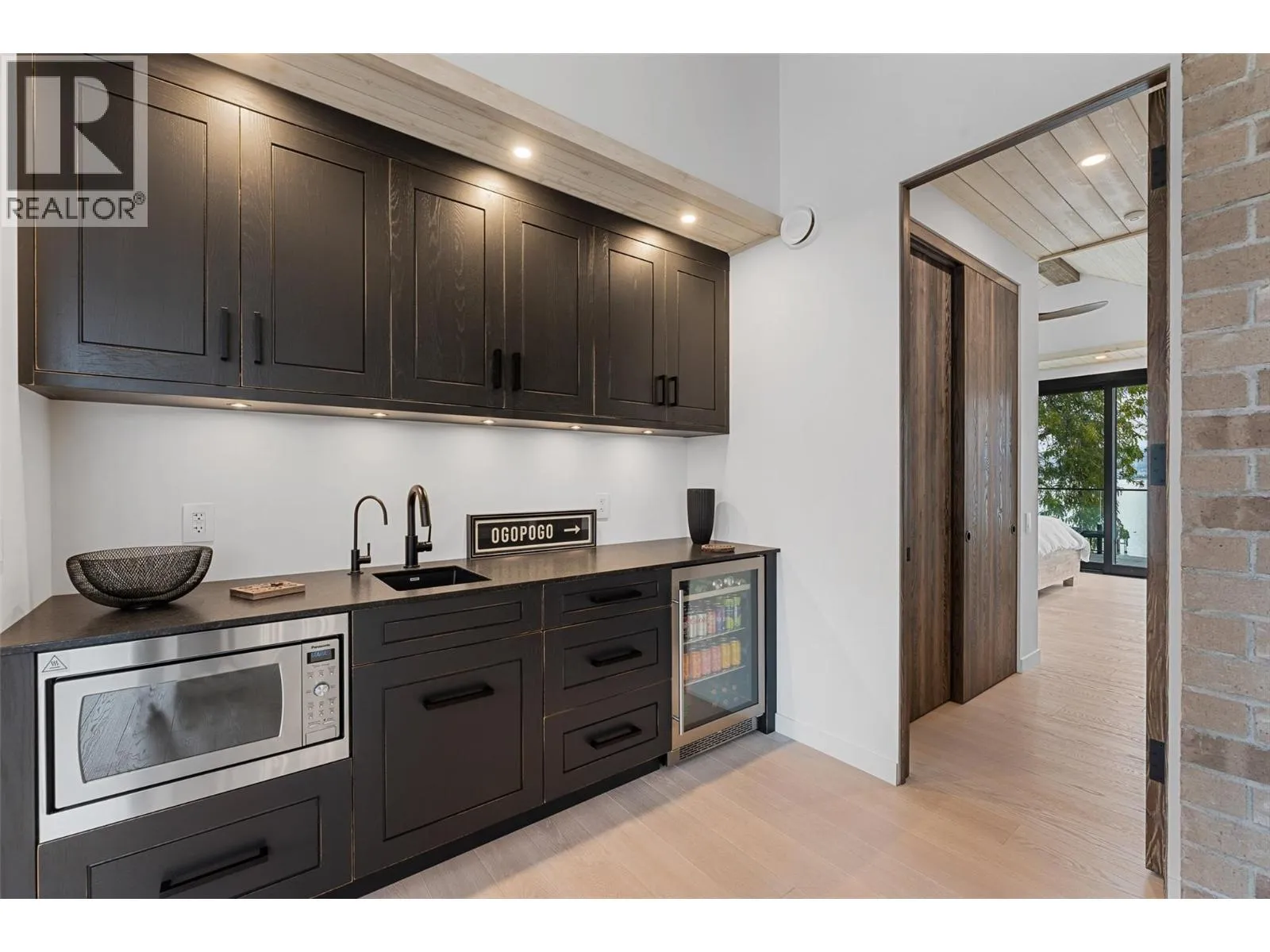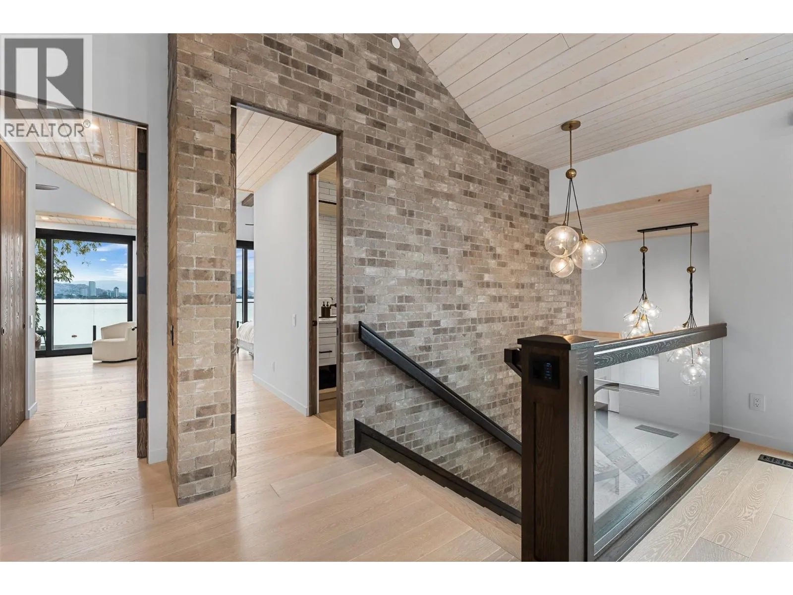 Welcome to The Lake Houseâa masterfully crafted waterfront retreat along the shores of Okanagan Lake in West Kelowna. Designed and built by award-winning SanMarc Homes, this contemporary residence blends timeless materials with modern sophistication. White-washed wood, exposed brick, and luminous glass lighting complement the rich tones of dark granite and sleek metal accents, creating an effortless lakeside elegance. The open-concept main level captures panoramic lake views through expansive windows and sliding glass doors that blur the line between the indoors and out. A chef-inspired kitchen anchors the space with a striking centre island, professional-grade appliances, and an artful wine display alcove. The main-floor primary suite offers a serene escape with lake views, a spa-like ensuite featuring a freestanding tub, and a custom walk-in closet. Upstairs, a spacious rec room with wet bar connects two lakeview bedroomsâeach with a private patio and ensuiteâoffering an ideal setting for guests or family. Outside, enjoy the ultimate waterfront lifestyle with a top-tier dock featuring a Quality Super Lift, seadoo lift, and paddleboard racks. The car enthusiast will appreciate the double car garage with cabinetry and epoxy flooring plus an additional single car garage with an oversized bay and lift. Perfectly positioned near world-class wineries, trails, and downtown Kelowna, this is lakeside living at its finest. (id:27476)