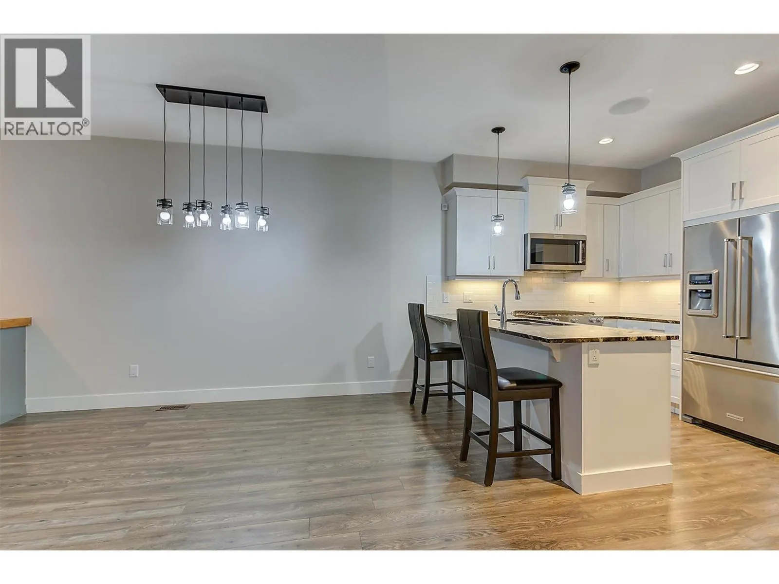 Massive garage? Central & mins to golf, wineries, schools, parks, shopping, and beaches? Look no further! Welcome to Tesoro Arca, aka the Townhomes for Toys. This modern & open 3 bed, 4 bath townhome is ideal for those who need lots of space & luxury comforts. The kitchen features quartz countertops, soft-close cabinets, modern stainless steel appliances, under-cabinet lighting & walk-in pantry. The spacious outdoor deck is big enough for a hot tub & has a gas BBQ hookup. The modern lighting & gas fireplace gives the home a cozy feel. Want to go work on your project car or boat? The giant, heated RV-sized garage, which can fit 3 vehicles & a car hoist, features a 23.5 ft long by 12.5 ft wide mezzanine, bathroom, RV sani-dump, & power hook-ups. 2 more outdoor parking spots are also available. Parking and storage will never be a problem. Tired from all the entertaining or work you just did? No problem! Take your private elevator to the top-floor bedrooms. The primary bedroom features 2 walk-in closets with a spa-like ensuite with in-floor heating. This vacant home recently had the paint touched up and fully cleaned for a quick move in. With no PTT, GST or SPEC tax, don't miss out on this turn-key opportunity! (id:27476)