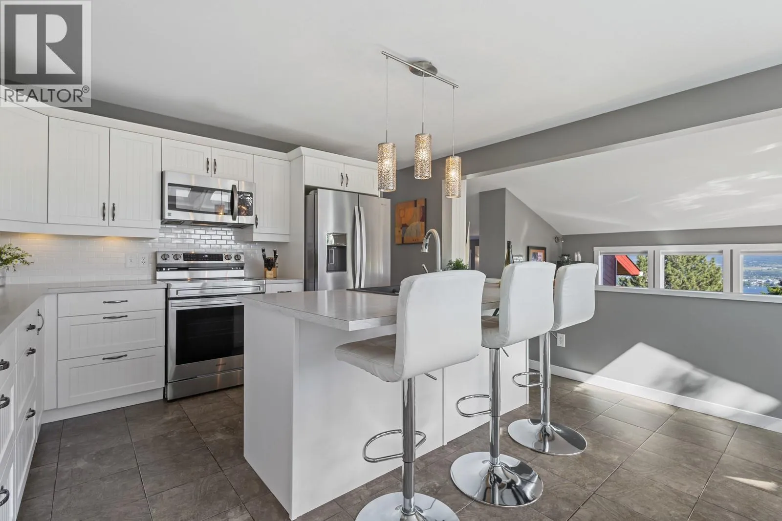 $40,000 PRICE REDUCTION!! Tucked into a quiet cul-de-sac in West Kelowna Estates and set on a beautifully landscaped 0.44-acre lot, this 4,000 sq. ft. home captures the kind of lake and city views that instantly slow you down. From sunrise over the water to the glow of the valley at night, this is a property that feels peaceful the moment you arrive. There is a warmth and character to this mature home that newer homes rarely offer. Architecture is thoughtful, with large windows that frame the scenery, and inviting spaces that draw people in. Families will love the generous layout: 4 bedrooms, 4 bathrooms, and multiple living areas that give everyone room to breathe. The flexible floorplan can easily be adapted to create a fifth bedroom, and the separate lower-level entrance adds possibilities for a home business, extended family, or private guest space. Inside, natural light pours through new skylights and across the main living areas, enhancing the views and creating a bright, uplifting atmosphere. The refreshed kitchen, complete with newer appliances and a skylit dining nook, feels like the heart of the home, perfect for slow mornings and family dinners. Outdoors, the property truly comes alive. Multiple decks invite you to step outside with a coffee or glass of wine and take in the ever-changing landscape. A covered lounge offers a cozy spot to unwind, while the fire pit and three-hole putting green create endless opportunities for connection and play. The fully fenced, expansive yard is ideal for kids and pets, and the lot provides space for a pool or future carriage home. Moments from an elementary school, endless hiking trails, and just minutes to Kelowna, this home blends convenience with a sense of retreat. It is a rare offering; space, views, privacy, and character all in one, ready for the next family to make it their own story! (id:27476)