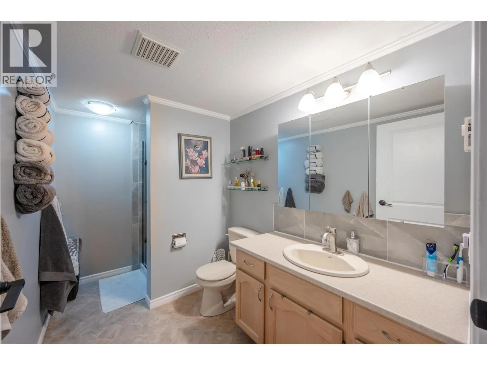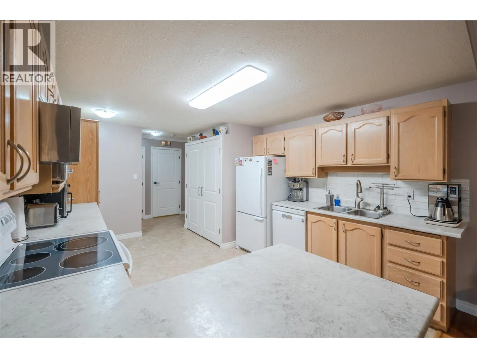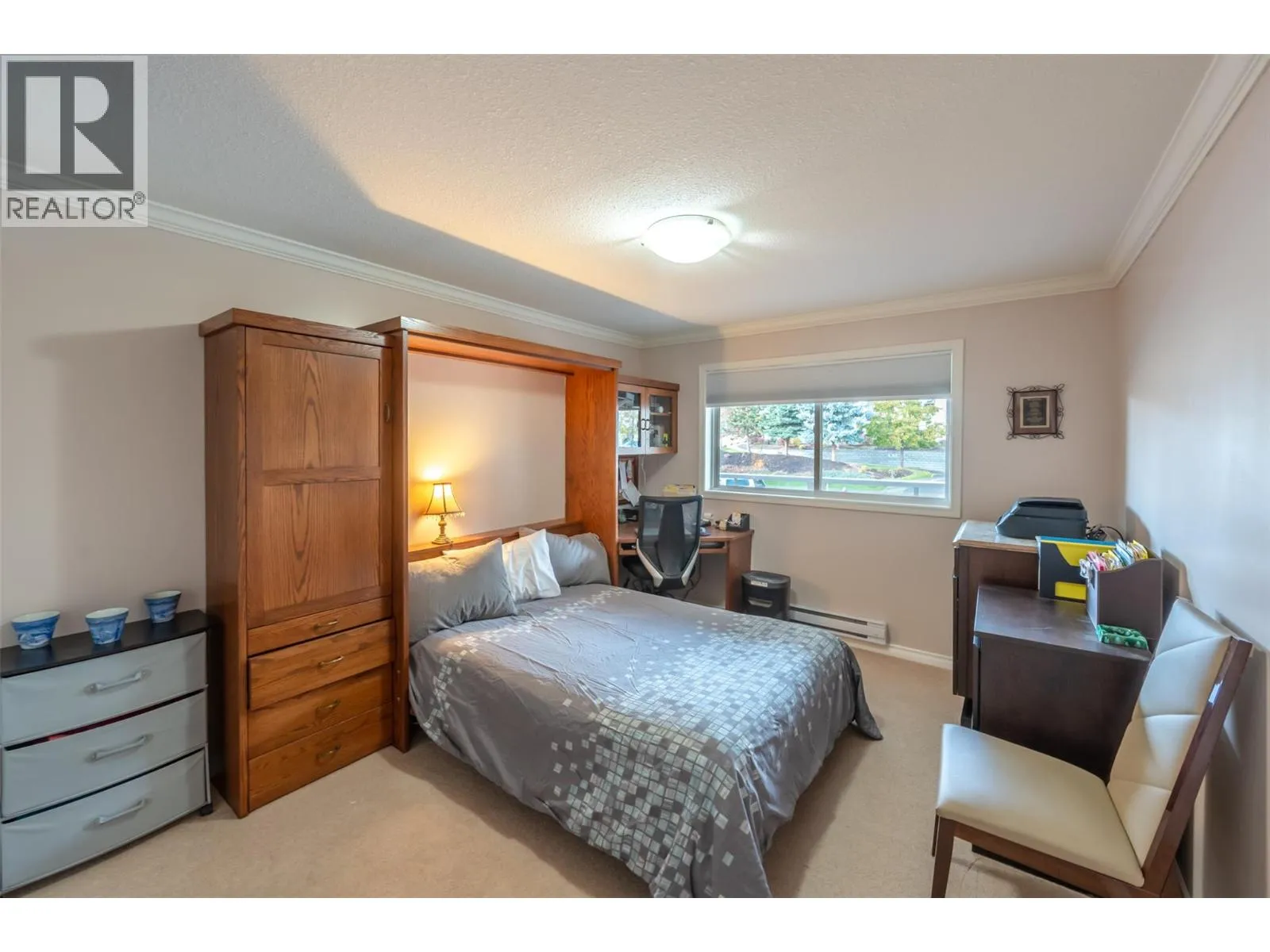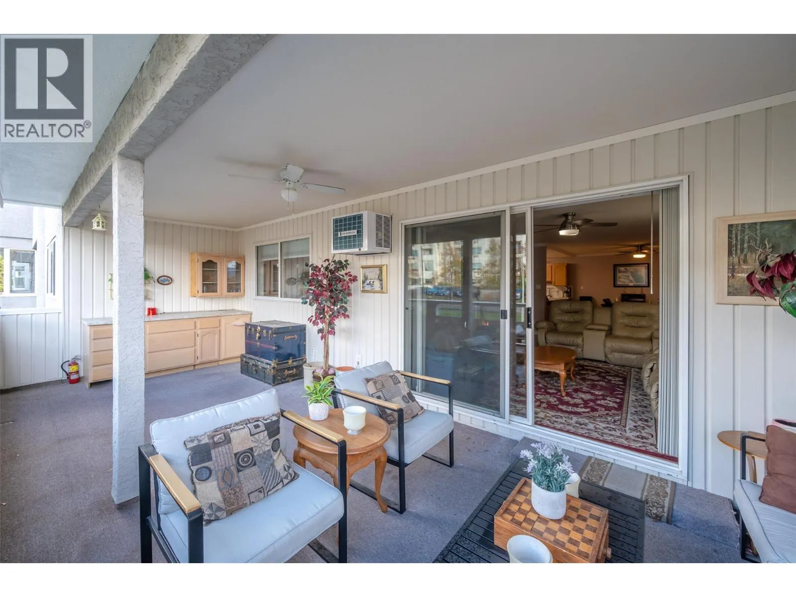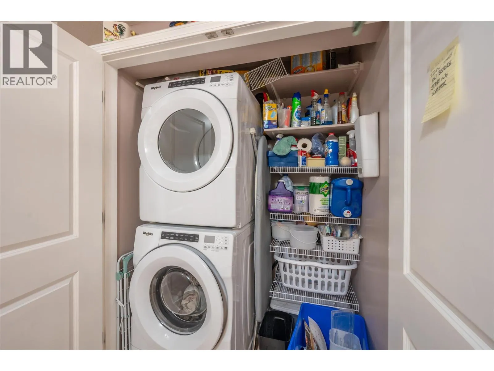 Spacious and bright, this 2 bed 2 bath condo offers 1,428 sqft of comfortable living in a well-maintained 55+ community. The open-concept design features a large, inviting kitchen with white appliances and plenty of storage, while the living area opens to a covered deck with beautiful mountain viewsâperfect for relaxing or barbecuing, with handy deck storage included fpr all your BBQ needs. The primary bedroom boasts a generous layout with a 3pc ensuite, and both bedrooms are well-sized with ample closet space. Additional highlights include a wall A/C unit, stacking washer/dryer, and a separate storage room. Enjoy the convenience of an underground parking stall with storage locker, plus access to recreation facilitiesâall within easy reach of shopping, transit, and local amenities. Contact the listing agent to view! (id:27476)