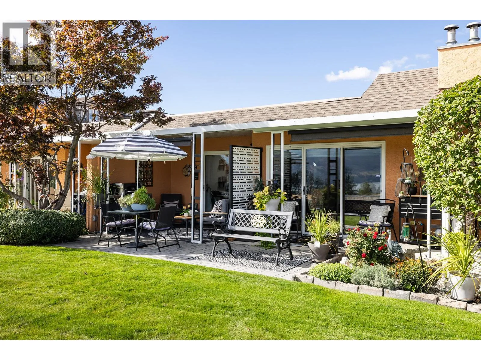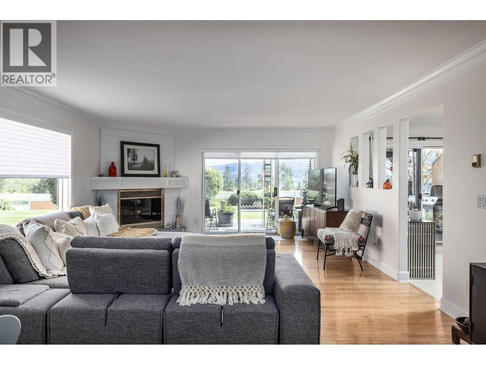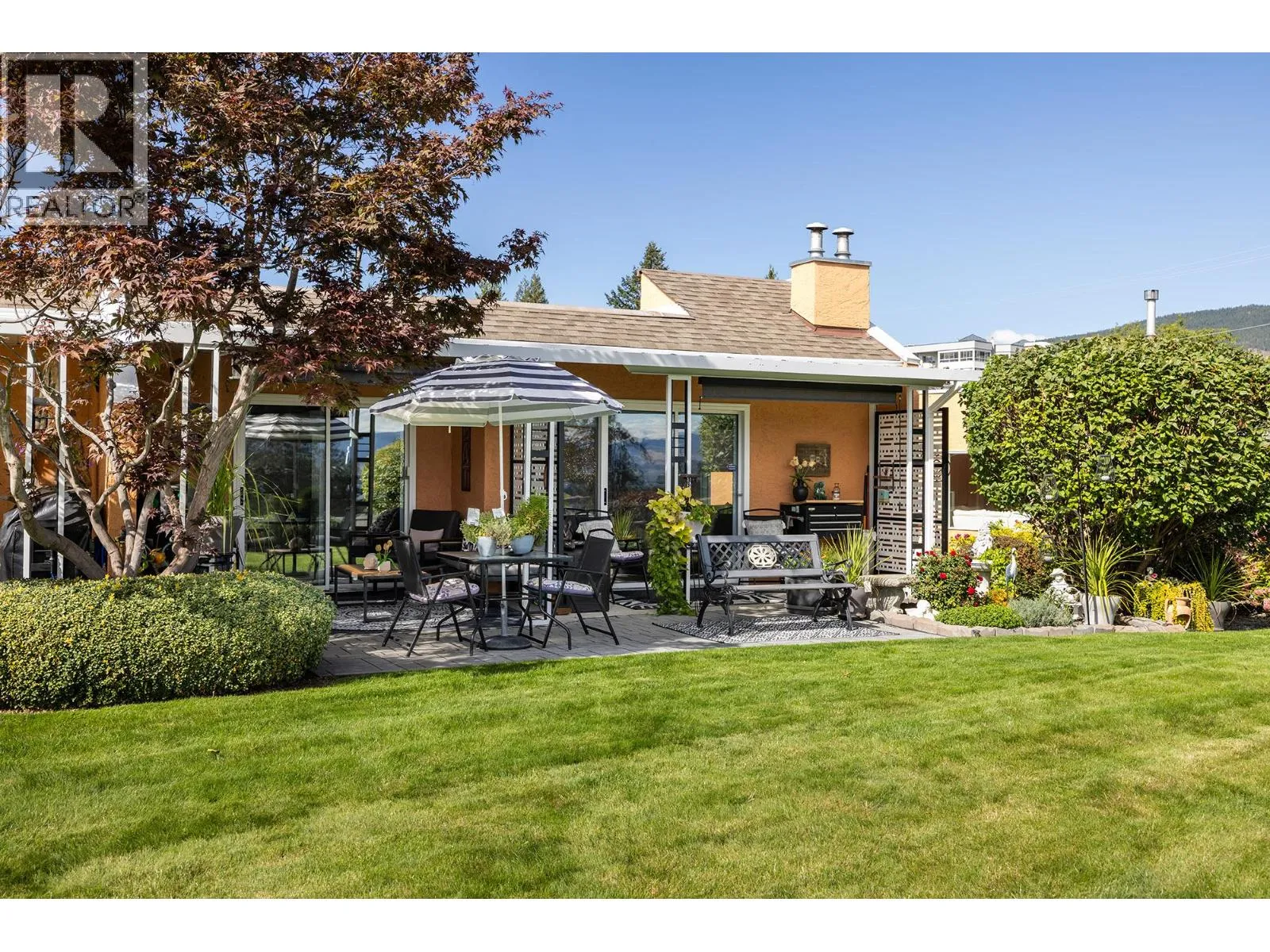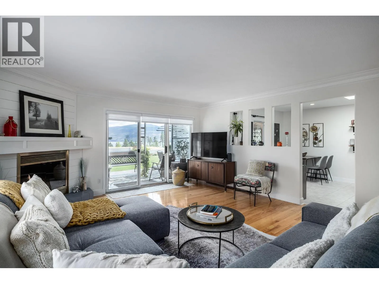 Immaculate FREEHOLD Bare Land Strata semi-detached duplex with Lake and Mountain Views and leisure gardens 55+. Fully renovated with 2 primary suites, featuring upgraded crown moldings, hardwood & vinyl flooring, and 3 skylights. The layout includes a spacious eat-in kitchen with SS appliances, roll-out cabinetry, and loads of storage. Enjoy the warmth of two gas fireplaces and ductless A/C. The strata covers heat, hot water & gas for fireplaces. Additional highlights are the extra large patio, garage, and proximity to amenities, including the beach and rec center. This property boasts shiplap details in all three bathrooms, radiant baseboard heat. Electricity only $56/month, Experience elegance and comfort in this gem. On;y one owner must be 55yrs+. (id:27476)