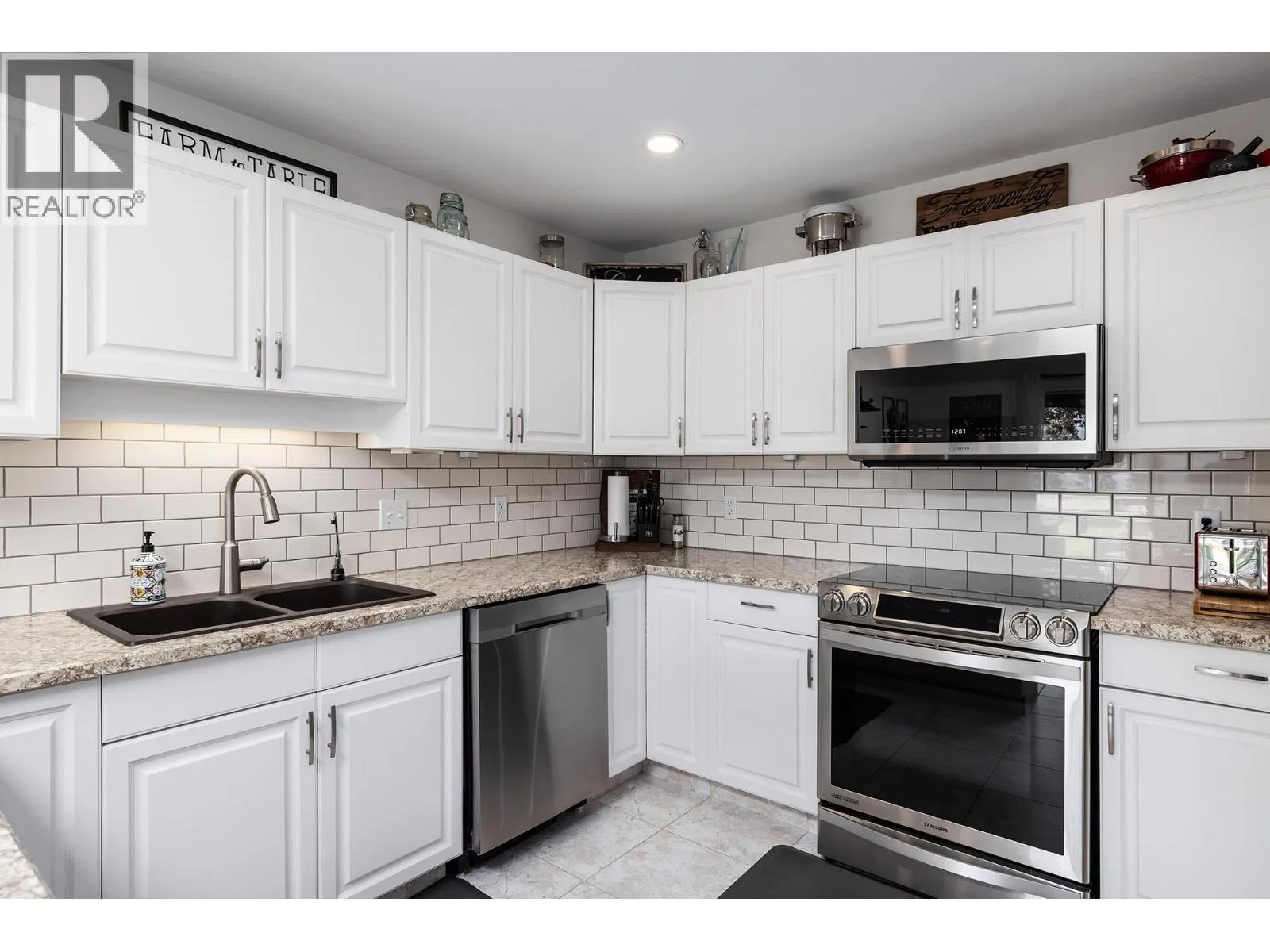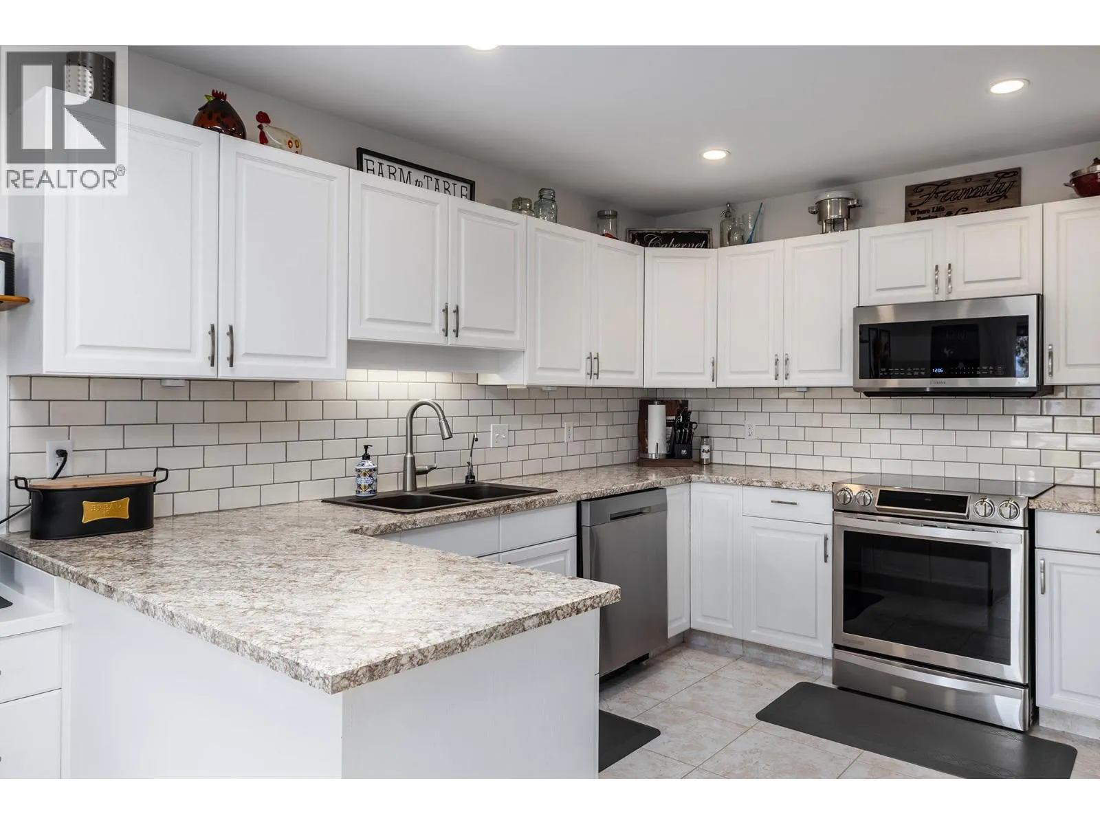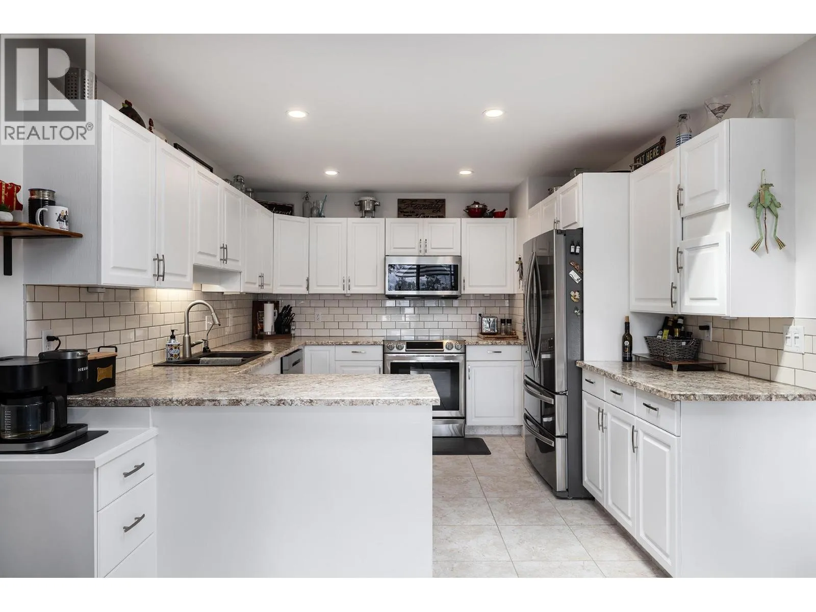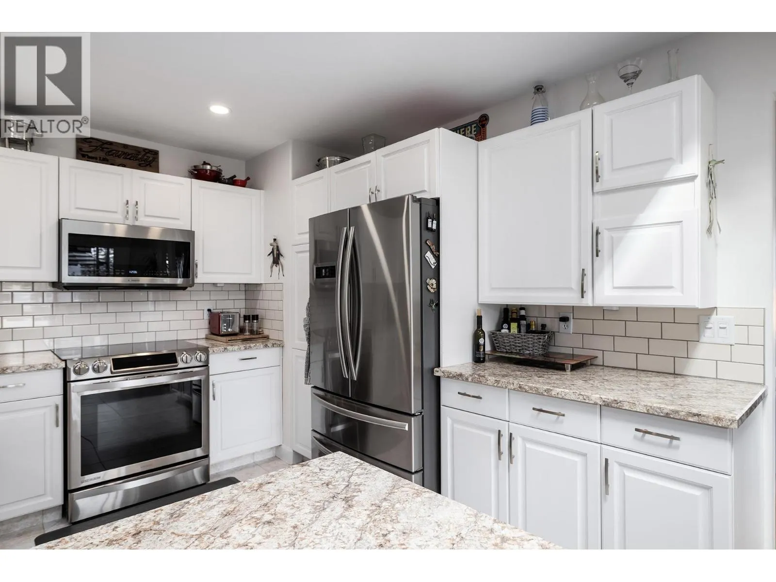 Immaculate FREEHOLD Bare Land Strata semi-detached duplex with Lake and Mountain Views and leisure gardens 55+. Fully renovated with 2 primary suites, featuring upgraded crown moldings, hardwood & vinyl flooring, and 3 skylights. The layout includes a spacious eat-in kitchen with SS appliances, roll-out cabinetry, and loads of storage. Enjoy the warmth of two gas fireplaces and ductless A/C. The strata covers heat, hot water & gas for fireplaces. Additional highlights are the extra large patio, garage, and proximity to amenities, including the beach and rec center. This property boasts shiplap details in all three bathrooms, radiant baseboard heat. Electricity only $56/month, Experience elegance and comfort in this gem. On;y one owner must be 55yrs+. (id:27476)