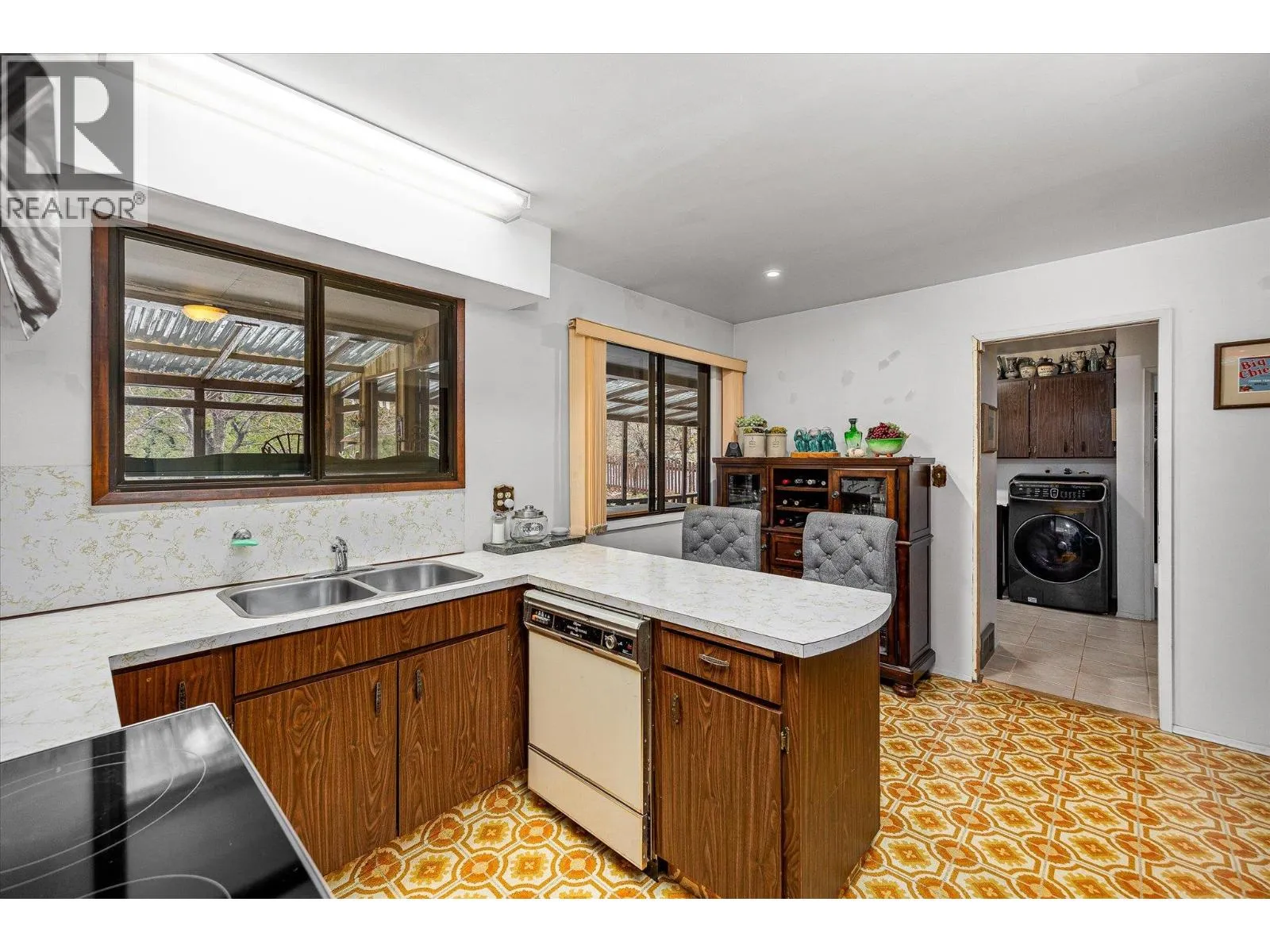 Welcome to this warm and inviting 4-bedroom, 3-bathroom home located in one of the most sought-after, family-oriented neighbourhoods just moments from Okanagan Lake and listed nearly $100,000 under assessed value. This property offers an incredible opportunity to enjoy an exceptional location with endless potential to update and personalize to your taste. The layout is highly functional, featuring two bedrooms on the main level, a large living area with a charming wood-burning fireplace, and generous storage throughout, including a spacious cold room. But itâs the backyard that truly sets this home apart. Extremely private and beautifully landscaped, the outdoor space is framed by mature cedars and filled with an abundance of fruit trees, lush gardens, and thoughtful irrigation throughout. With so much natural produce at your fingertips, you may never need to visit the farmers market again. A large sun deck overlooks the yard, creating the perfect setting for morning coffee, summer dinners, or quiet evenings enjoying your picturesque backyard oasis. Additional highlights include a large garage, tons of parking, room for recreational vehicles, and ample storage options for busy families or hobbyists. This is a rare opportunity to secure a property in an incredible location with a spectacular backyardâoffering both immediate enjoyment and long-term potential to personalize the home of your dreams. (id:27476)