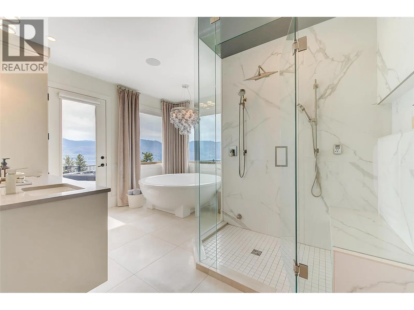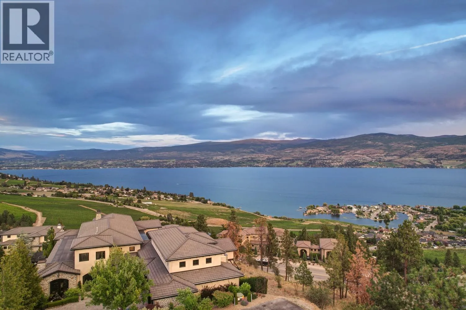 Truly beyond compare! Gorgeous custom home in the desirable private gated neighborhood of Vineyard Estates. From this residence you will enjoy remarkable panoramic views of Okanagan Lake, rolling hills, mountains, & vineyards, including the bell tower at Mission Hill. The outdoor living area is breathtaking with sweeping views, a pool, spacious areas for lounging & an outdoor kitchen is the ideal set up for dining, lounging, and playing outside all summer long. Inside no detail has been spared. The entire home features exceptional customizations creating the perfect backdrop for living & entertaining. Main level is designed to ensure all living spaces take full advantage of the view. From the great room enjoy soaring ceilings, & expansive windows. Flow seamlessly from the dining area to the gourmet kitchen. Prep, & host from the kitchen enjoying access to the outdoor oasis. Kitchen has been customized with a unique L-shaped entertainment-sized island and professional appliances. Unwind in the family room with a luxurious wet bar, tiled fireplace, and room for pool table. Bedroom on the main floor could be used as a home office. The primary retreat is located on the main level & features an opulent en suite & walkâin closet. The upper level offers two additional bedrooms with en suites, a loft flex space & a huge balcony overlooking the lake. Room for all your toys in the 5-car garage. Excellent location minutes to world-class wineries, trail networks & Okanagan Lake. (id:27476)