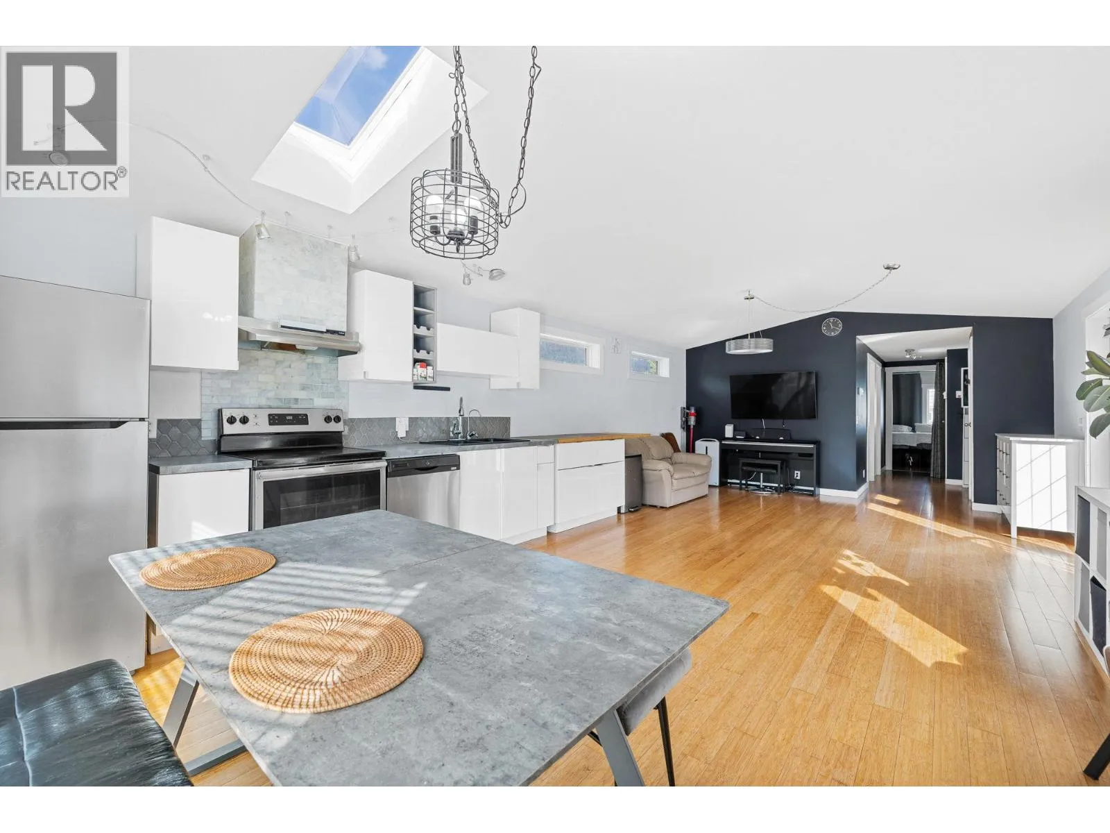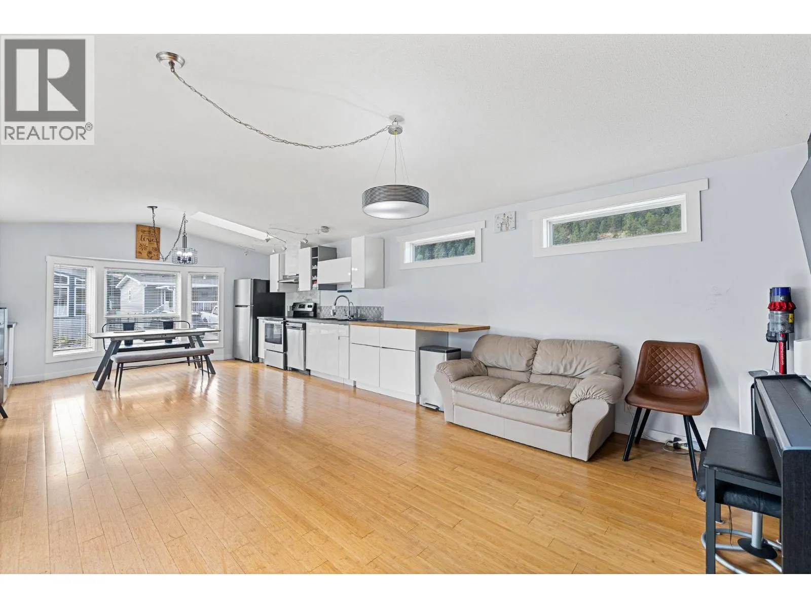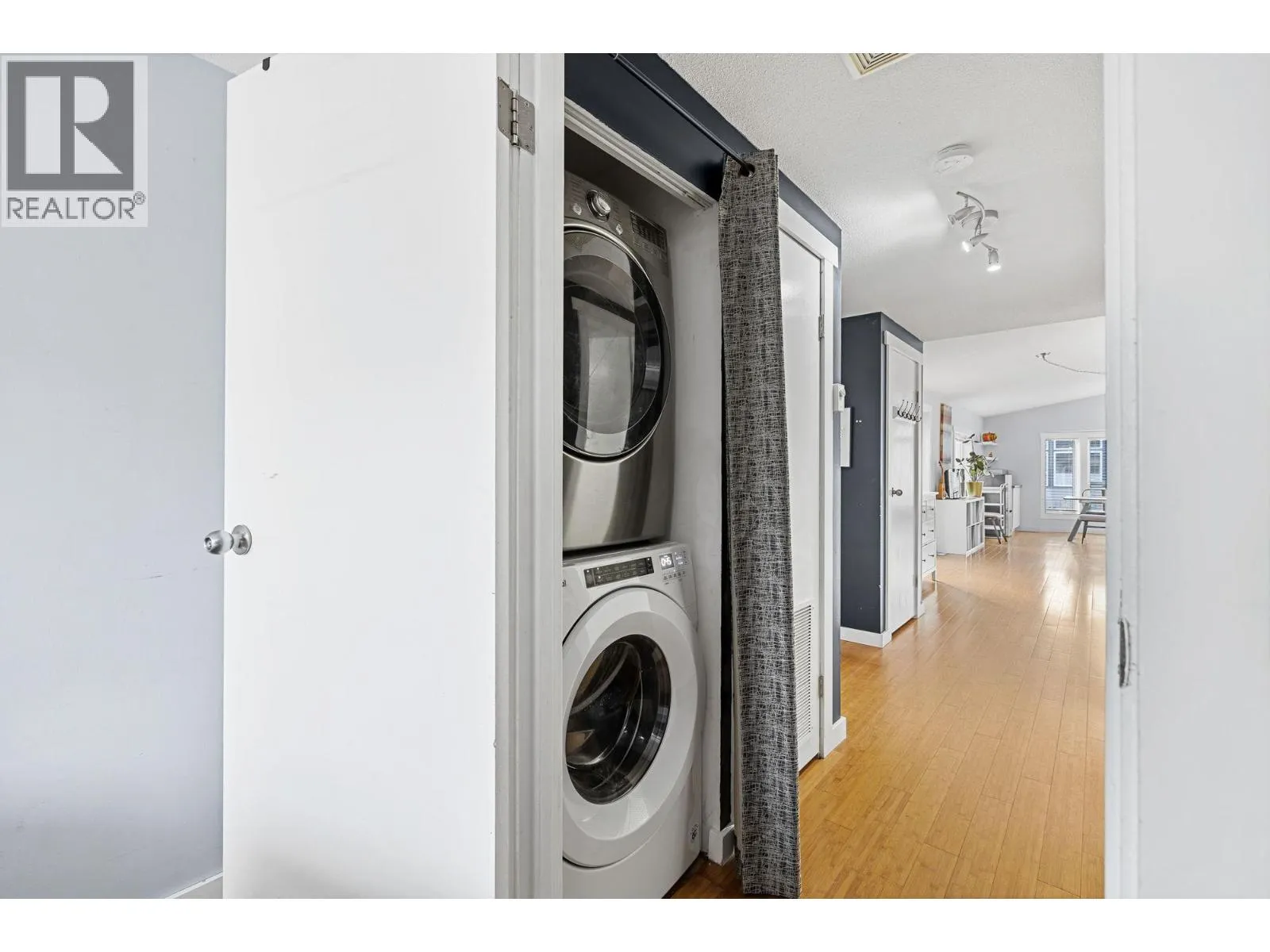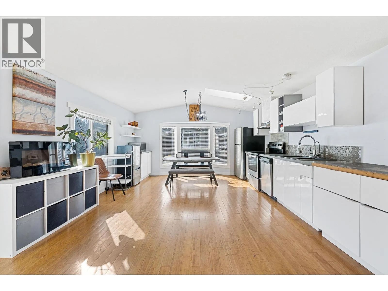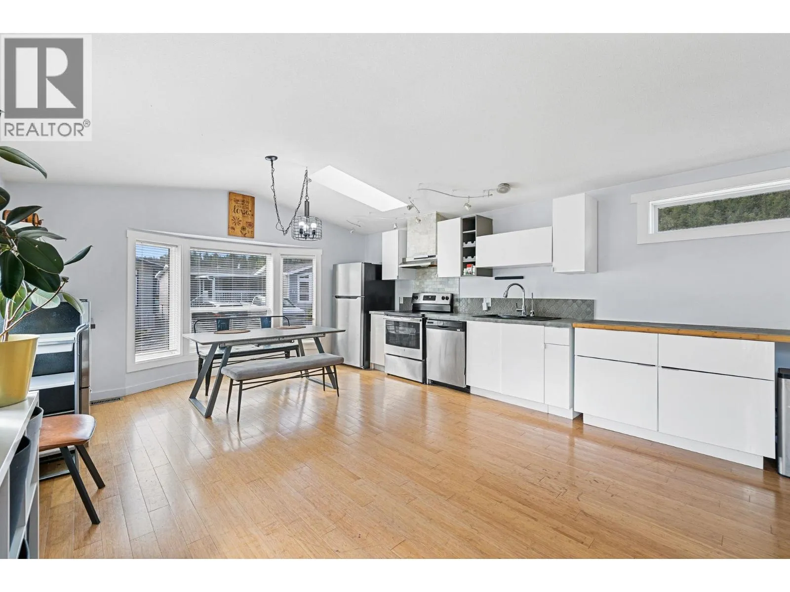 This 2-bedroom, 1-bath home offers a modern feel with a spacious, well-laid-out open-concept design and 9' vaulted ceilings. Located in a well-managed park just steps from hiking trails and only minutes to shopping and beaches, itâs ideal for first-time buyers, downsizers, or those seeking an easy lock-and-leave lifestyle. Recent updates include a remodeled kitchen, new window coverings, fresh trim paint, a new air conditioner, and new washer and dryer. The fenced yard provides privacy with space for gardening or pets, and there are two sheds for extra storage. No age restrictions, and the park allows two pets (15"" to the shoulder with park approval). Pad rent covers water, sewer, trash, and snow removal. Conveniently located just minutes from downtown Kelowna and West Kelowna. Buyer subject to park approval. All measurements should be verified by the purchaser if important. (id:27476)
