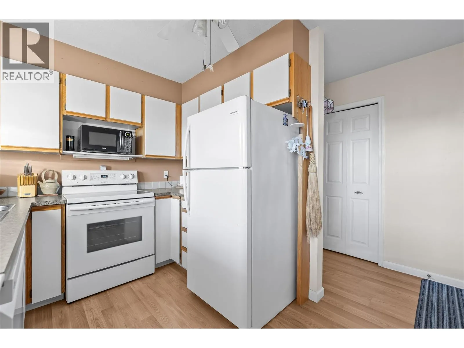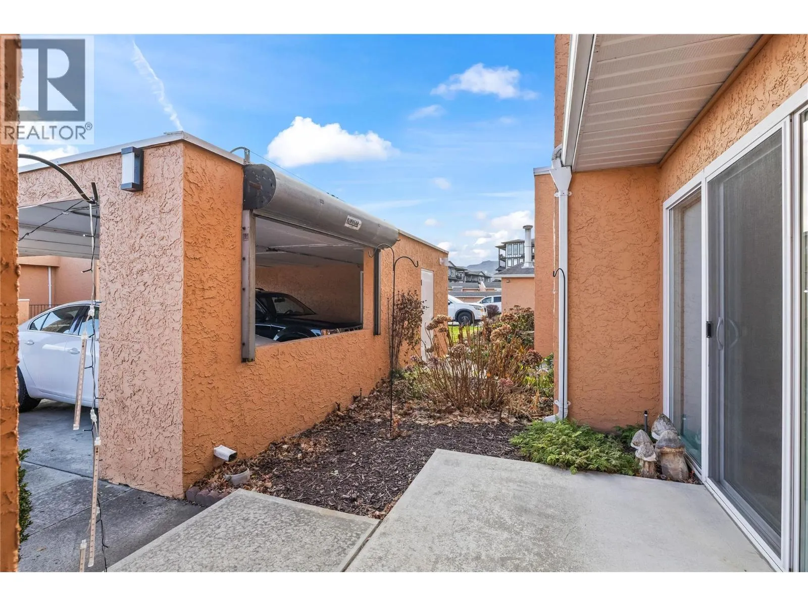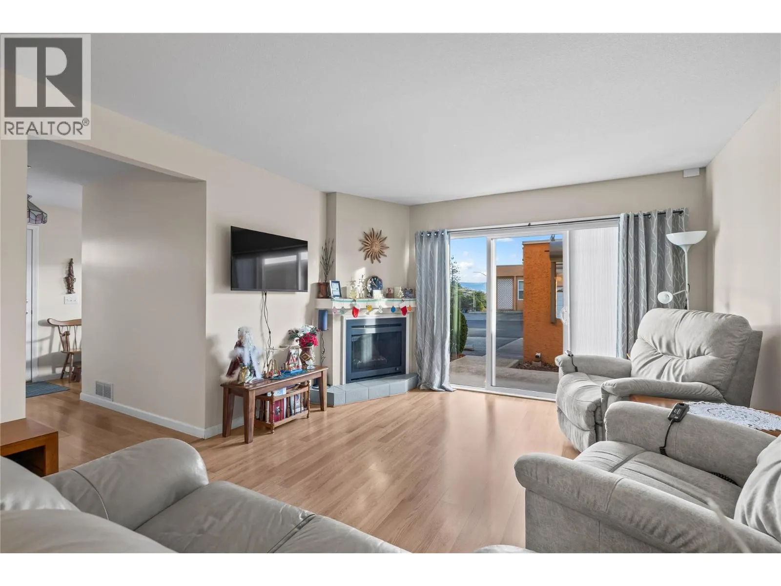 Great Location & Price! Lovely 2 bedroom home in Leisure Gardens. Centrally located minutes from shopping, aquatic centre, other amenities, walking trails & wineries. This ground floor, corner unit is bright and open and perfectly located within the community. Kitchen has views to the lake & newer appliances. (Dishwasher 2021, Dryer & Range 2020, Maytag washer 2022, fridge 2019) The large living room area with gas fireplace & newer solar blinds has direct access to your spacious patio. Covered parking is also right outside your patio door. Enjoy the best of convenience and tranquility in this 55+ community. 1 dog or 1 cat allowed, max 14"" at the shoulder. Strata fee includes heat for the unit (in-floor heating) & gas for the fireplace. Great value! (id:27476)