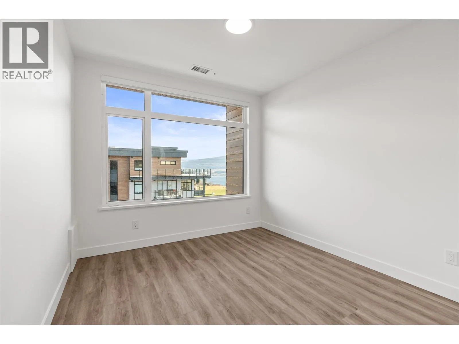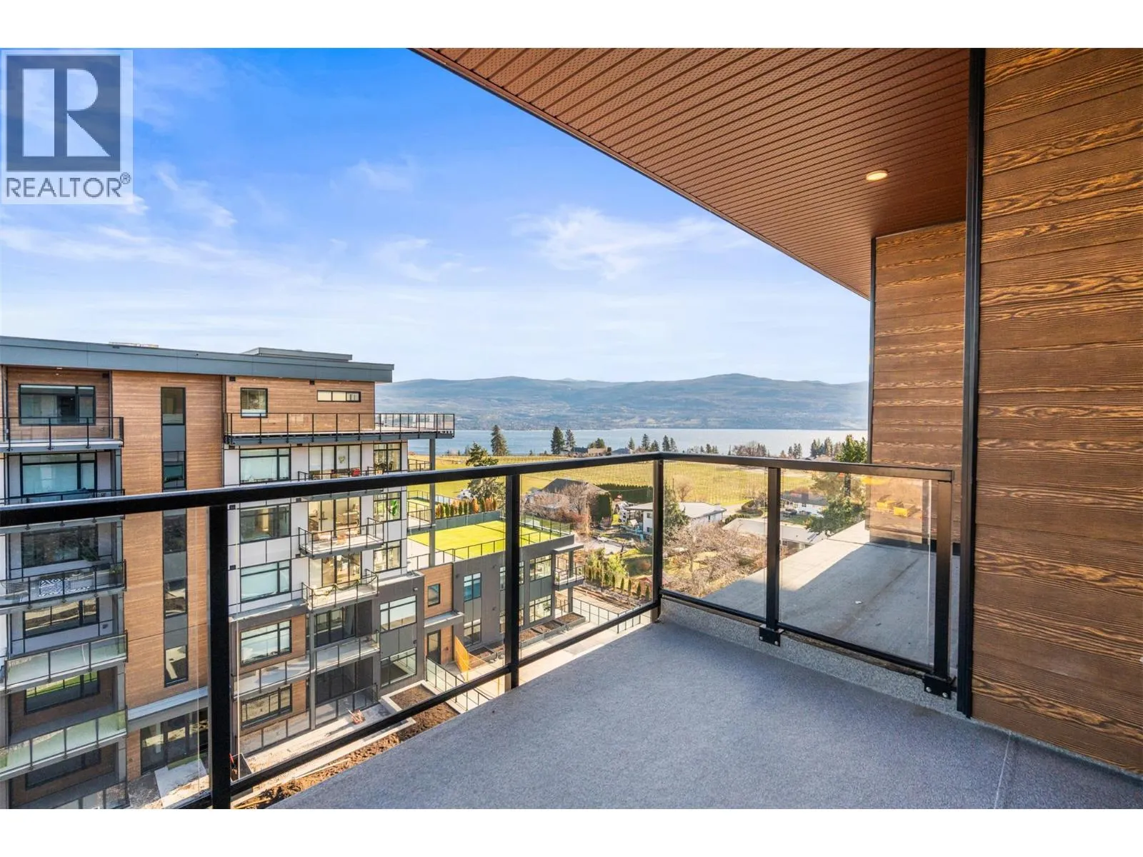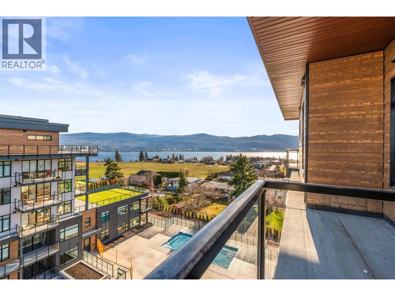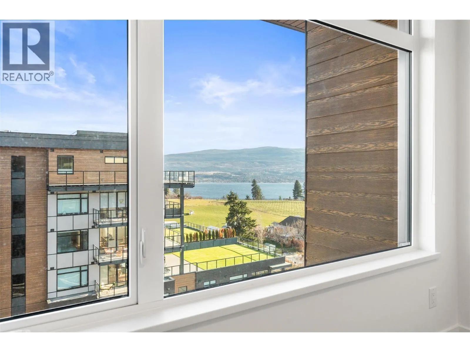 Experience elevated living in this brand-new 2 bedroom + den, 2 bathroom corner residence, where thoughtful architecture meets breathtaking surroundings. Wrapped in an expansive glass deck, the home captures sweeping views across the lake, vineyards, and mountains, while floor-to-ceiling windows bathe the interior in natural light. At the heart of the home is a stunning chef-inspired kitchen, anchored by an oversized quartz island perfect for entertaining. Premium finishes include a gas cooktop, built-in wine fridge & pantry wall, microwave, custom drawer organizers, imported Italian cabinetry, and sleek luxury vinyl plank flooring that flows seamlessly through the space. The smart layout places the bedrooms on opposite sides of the home, offering enhanced privacy for owners and guests alike. Wake up to unforgettable vistas in the primary retreat, featuring a walk-through closet and a serene, spa-style ensuite with heated tile flooring. Designed with comfort and convenience in mind, this home also includes a spacious deck, one secure parking stall + storage locker, and welcomes up to 2 pets. Residents enjoy a resort lifestyle with access to an onsite greenhouse, outdoor pool + hot tub, fitness centre, dog wash, community gardens, secure parcel delivery, and the advanced Butterfly entry system. Ideally located, this home is just steps from a brand-new community centre, schools, bistro, market, & sports courts & only minutes to beaches, boat launches, and celebrated wineries. (id:27476)