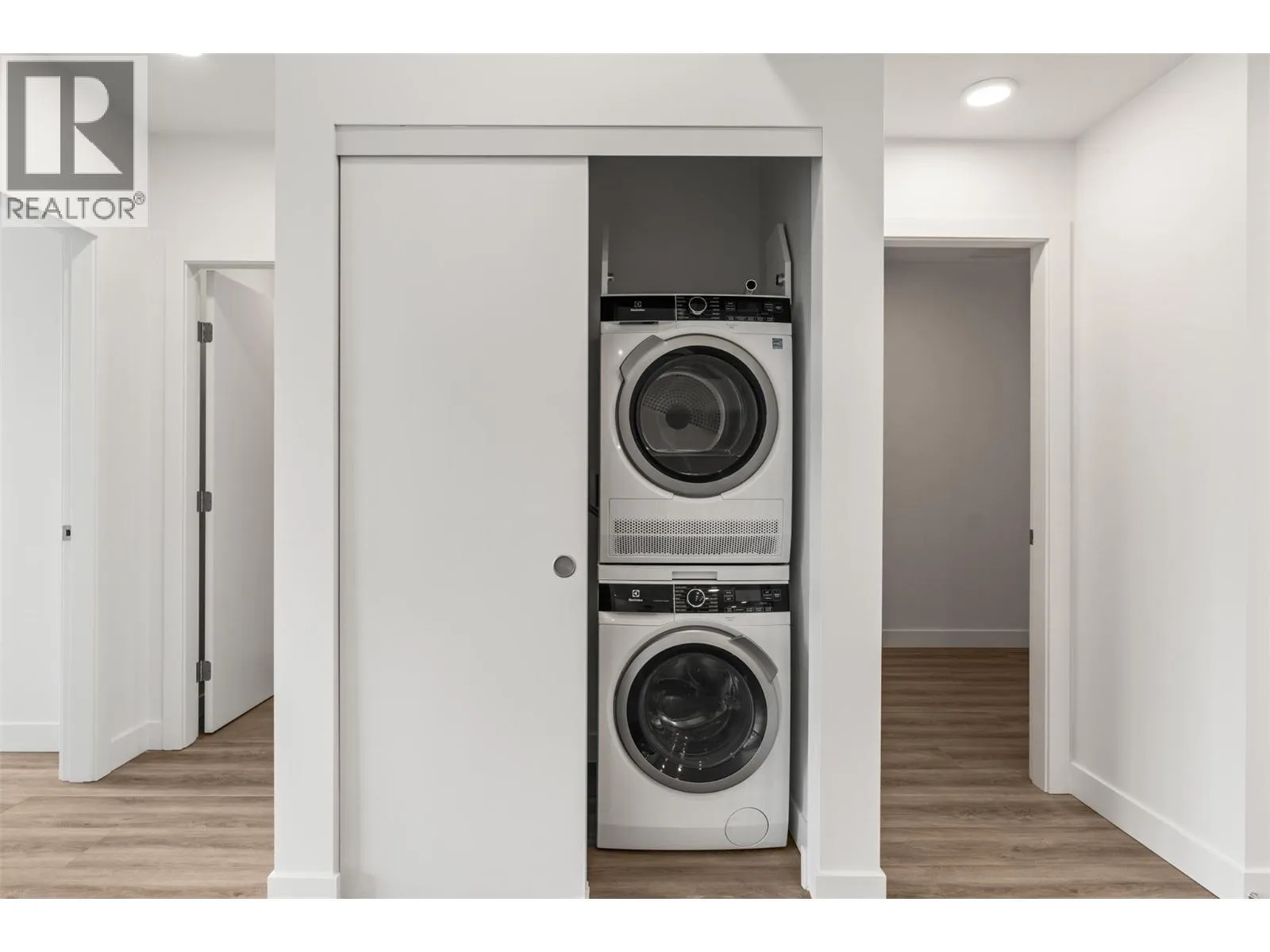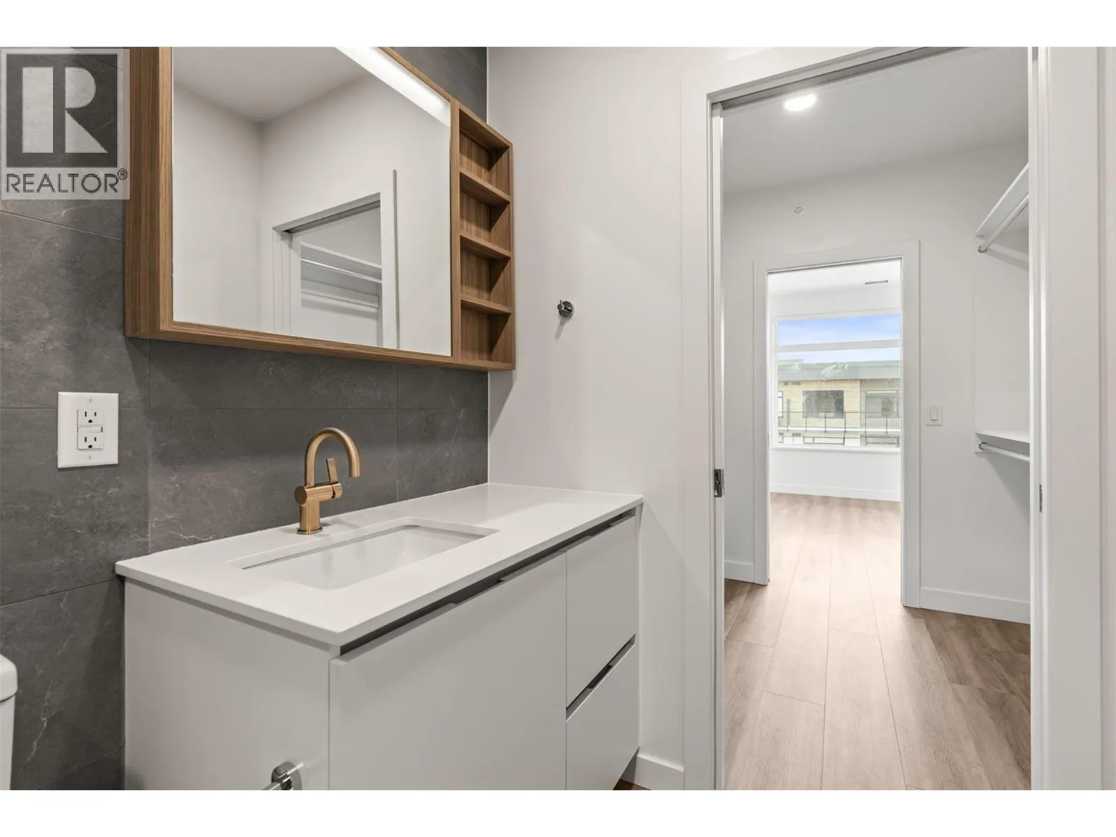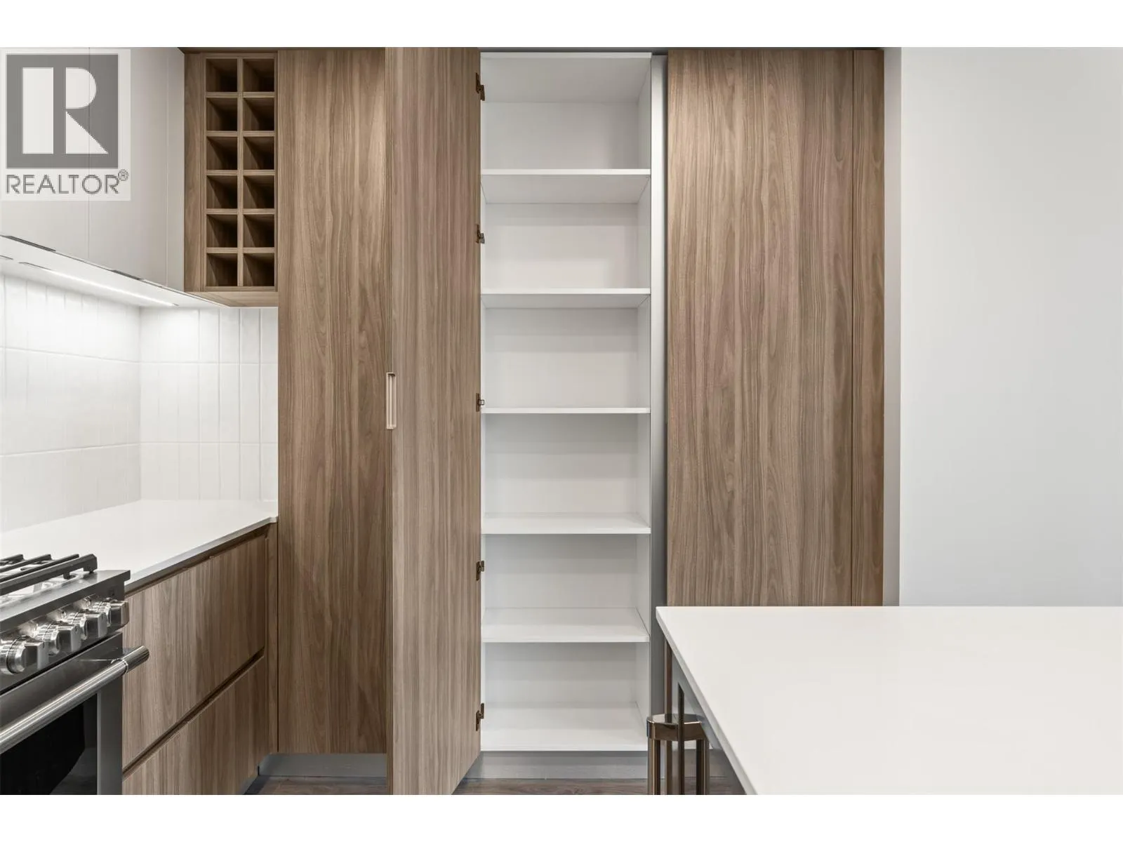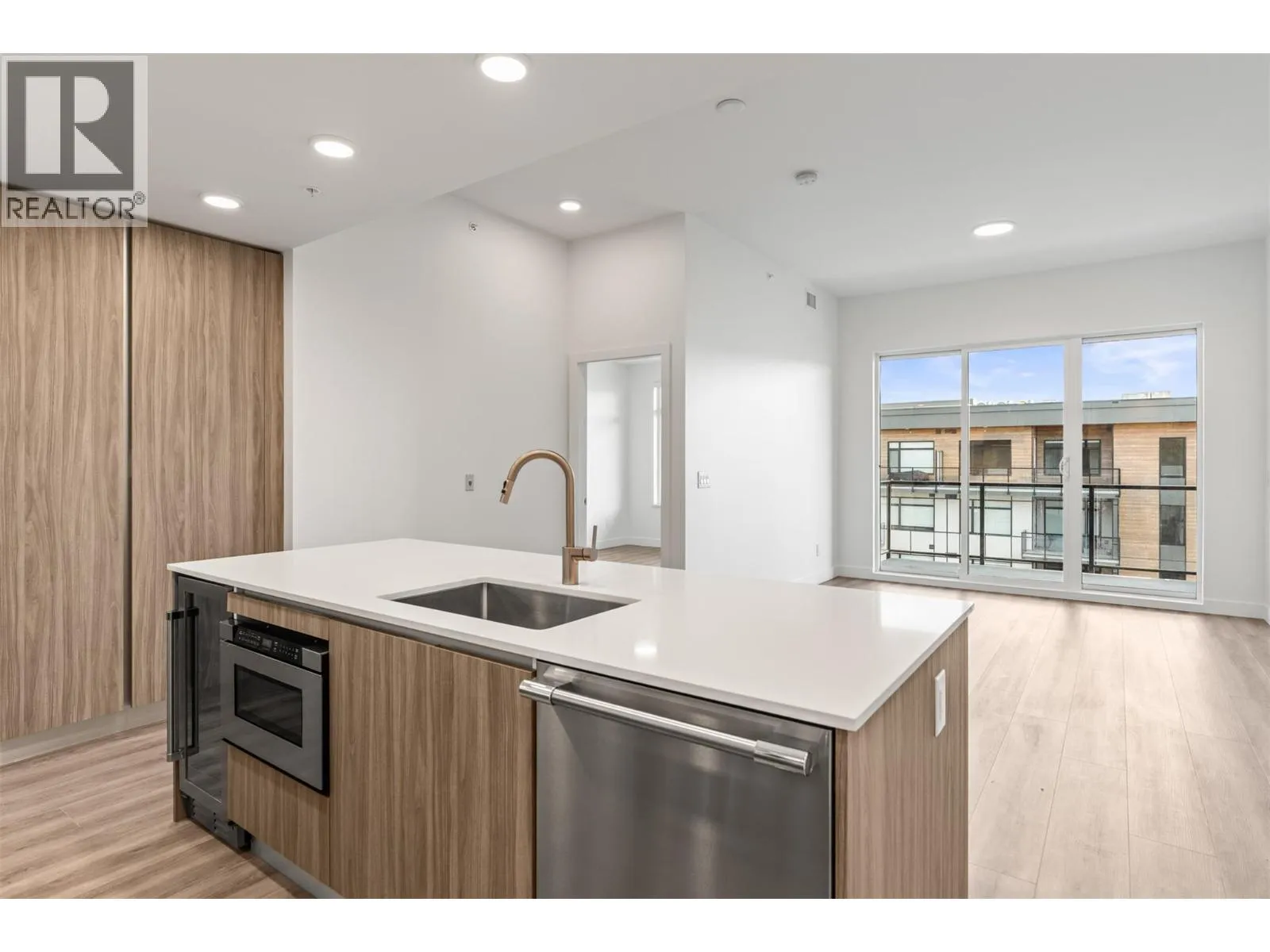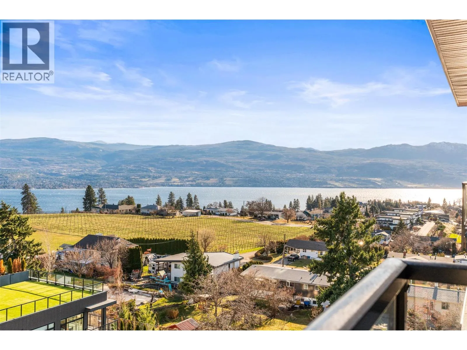 Experience elevated living in this brand-new 2 bedroom + den, 2 bathroom corner residence, where thoughtful architecture meets breathtaking surroundings. Wrapped in an expansive glass deck, the home captures sweeping views across the lake, vineyards, and mountains, while floor-to-ceiling windows bathe the interior in natural light. At the heart of the home is a stunning chef-inspired kitchen, anchored by an oversized quartz island perfect for entertaining. Premium finishes include a gas cooktop, built-in wine fridge & pantry wall, microwave, custom drawer organizers, imported Italian cabinetry, and sleek luxury vinyl plank flooring that flows seamlessly through the space. The smart layout places the bedrooms on opposite sides of the home, offering enhanced privacy for owners and guests alike. Wake up to unforgettable vistas in the primary retreat, featuring a walk-through closet and a serene, spa-style ensuite with heated tile flooring. Designed with comfort and convenience in mind, this home also includes a spacious deck, one secure parking stall + storage locker, and welcomes up to 2 pets. Residents enjoy a resort lifestyle with access to an onsite greenhouse, outdoor pool + hot tub, fitness centre, dog wash, community gardens, secure parcel delivery, and the advanced Butterfly entry system. Ideally located, this home is just steps from a brand-new community centre, schools, bistro, market, & sports courts & only minutes to beaches, boat launches, and celebrated wineries. (id:27476)