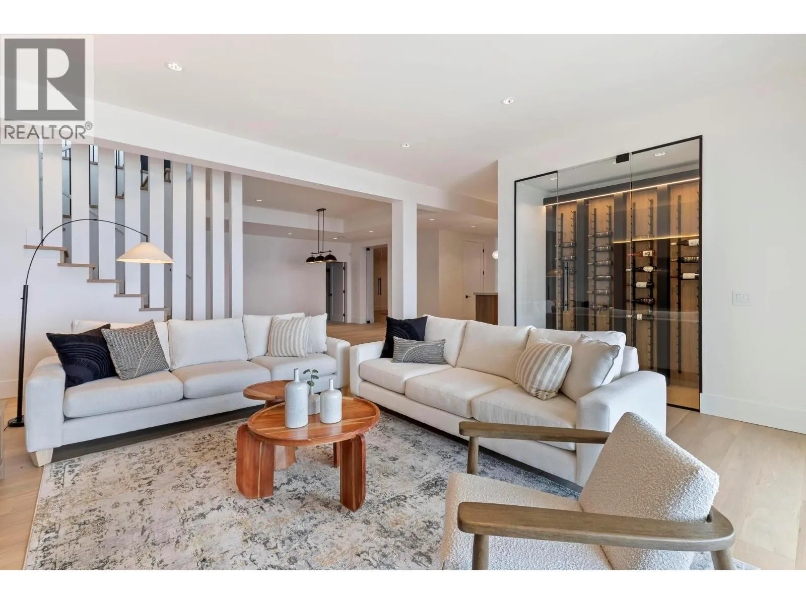 **NO GST**This thoughtfully designed home embraces elegant arches and warm, craftsman-inspired farmhouse aesthetic throughout. This main level living home is intelligently planned with no wasted space, featuring an open-concept main living area that flows seamlessly from the chefâs kitchen into the vaulted great room & dining space. Expansive windows frame panoramic, unobstructed lake views, with homes behind situated well below for added privacy and uninterrupted sightlines. Main level boasts spacious primary suite with spa-inspired ensuite and walk-in closet, along with 2 additional bedrooms and beautifully finished ensuites. The office is complete with built in desk. Every detail has been carefully considered, with timeless interior finishes and a calm, inviting palette. Downstairs, a fully self-contained legal suite provides exceptional versatility, perfect for extended family, guests, or as a mortgage helper. Basement offers a media rm, currently set up for a gym, a flexible space to suit your lifestyle. A large recreation rm w/ an island bar, access to a backyard that delivers the best of both worlds: a concrete inground pool paired with landscaped green space, ideal for kids or pets. Situated in one of West Kelownaâs most sought after neighborhoods, this property blends lifestyle & location with craftsmanship & comfort. (id:27476)