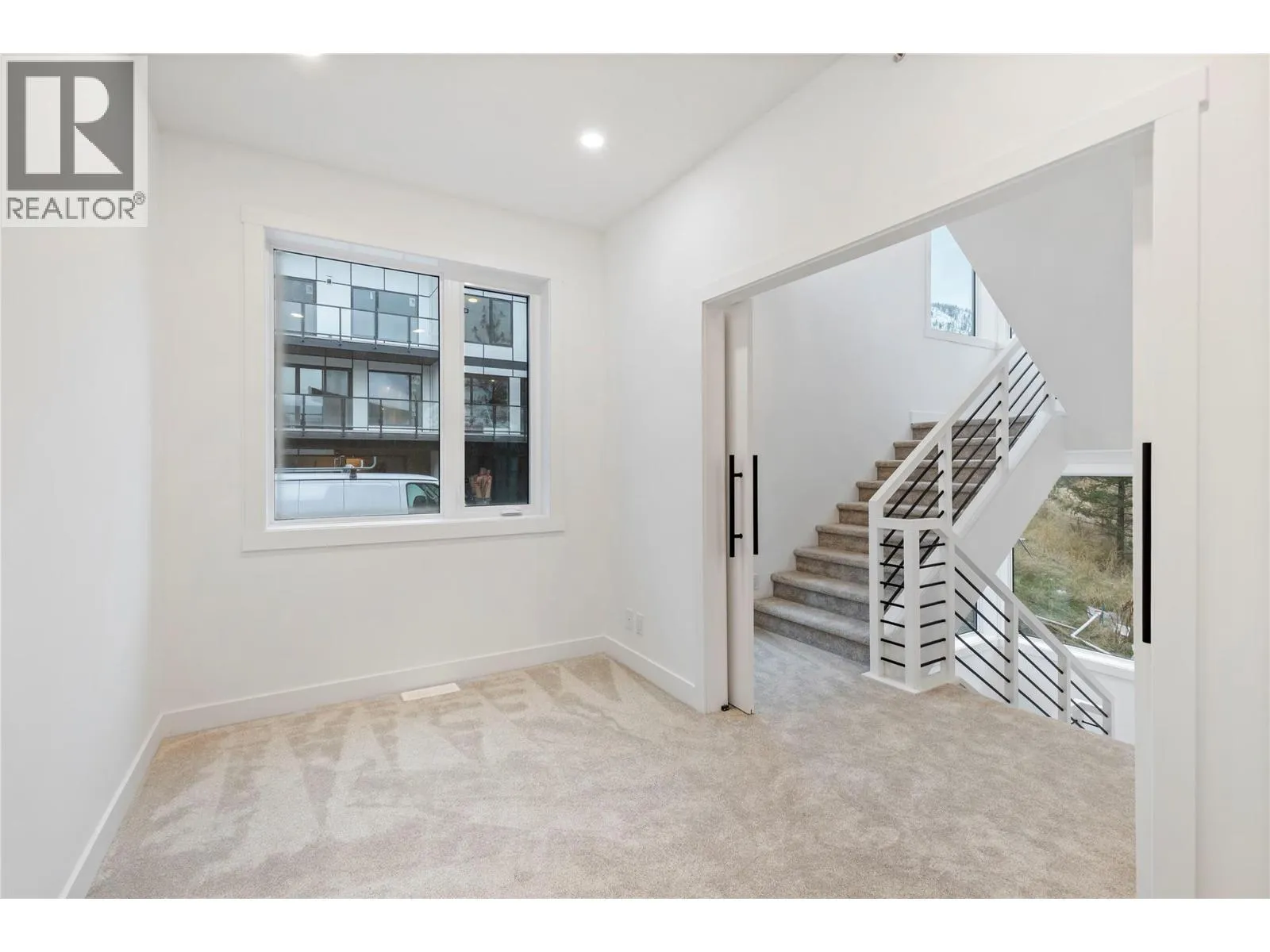 Largest unit in the development, lake and forest views. This NEW two bedroom and den or third bedroom, A floorplan boasts two decks plus a rooftop patio, ready for your hot tub. You'll love the upscale modern finishing, which will include quartz countertops, dual-tone cabinetry, vinyl plank flooring, stainless steel appliances with wall oven and microwave, full sized washer and dryer, nine foot ceilings on main and second floor, large decks, double attached garage plus boasts an amenities centre with fitness, pickle ball, theatre, yoga studio, meeting rooms, games room, and BBQ & lounge area! Luxury Lakeside Living Located in an established neighborhood that boasts not only the golf course, fishing, urban forest walking trails and local schools. Two pets, no size restrictions. Light color package, no PTT. (id:27476)