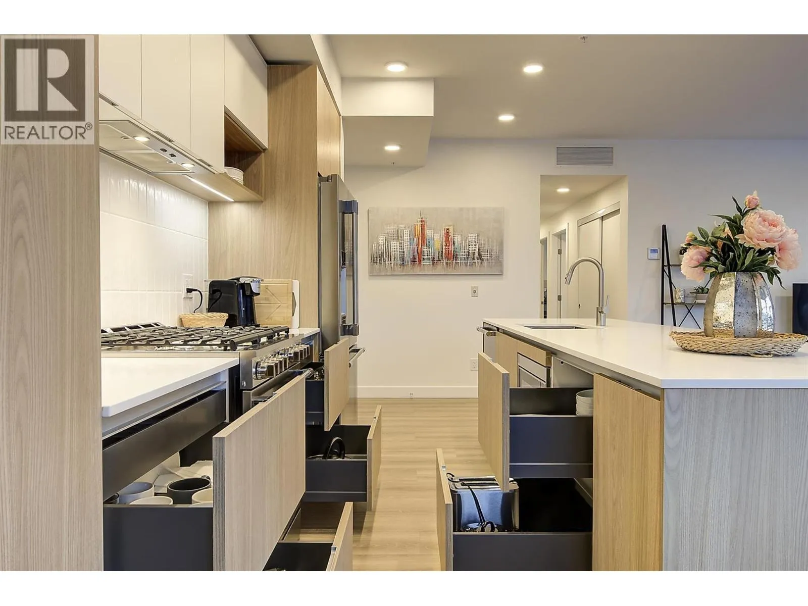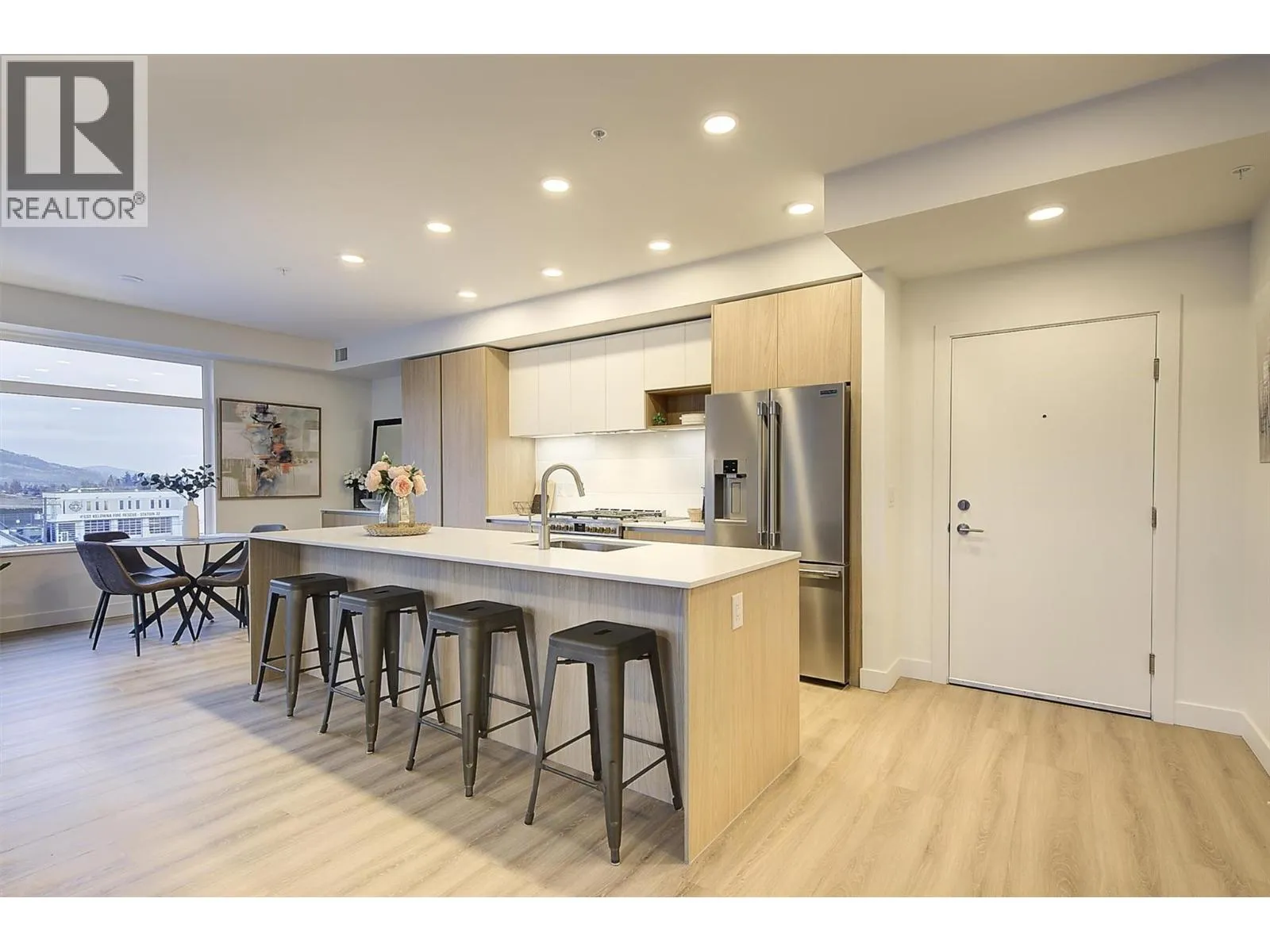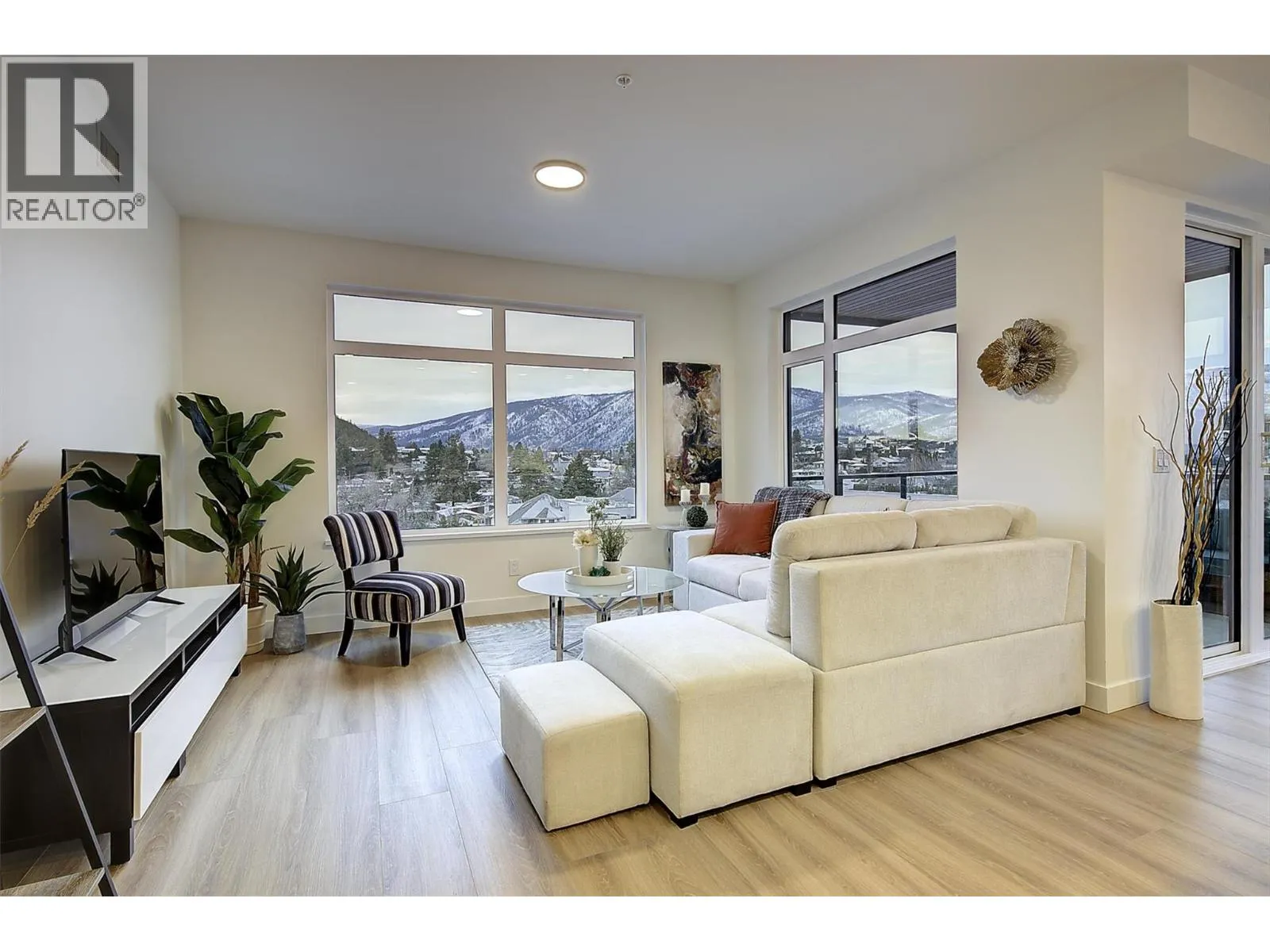 Stunning 5th Floor Corner Unit at The Residences at Lakeview Village, featuring 2 bedrooms plus a den, 2 parking stalls and a storage locker. As you enter, floor-to-ceiling windows frame the panoramic lake and mountain views, creating an immediate wow factor. Step onto the covered deck, complete with gas bbq hookup, and you will experience the pleasure of Okanagan living. Inside, you will be impressed by the contemporary design and premium finishes featuring light oak and white cabinetry, elegant quartz countertops, and sophisticated large-format tile accents. The chef-inspired kitchen boasts premium appliances, including a 6-burner gas stovetop, providing inspiration to experiment with new recipes. And with 9-foot ceilings, the home provides a fantastic open and airy feeling â ideal for entertaining while taking in the views. The primary ensuite offers a large glass-walled shower, double vanity, heated floors, and custom lighting for a luxurious personal retreat. Residents of Lakeview Village will enjoy an impressive array of amenities â an outdoor pool and hot tub, large fitness room, greenhouse, rooftop terrace and lounge, all within minutes to restaurants, breweries, wineries, groceries, golf, tennis and pickleball courts, hiking and biking trails, beaches and so much more. This exceptional home is a gem â book your showing before itâs gone! (id:27476)