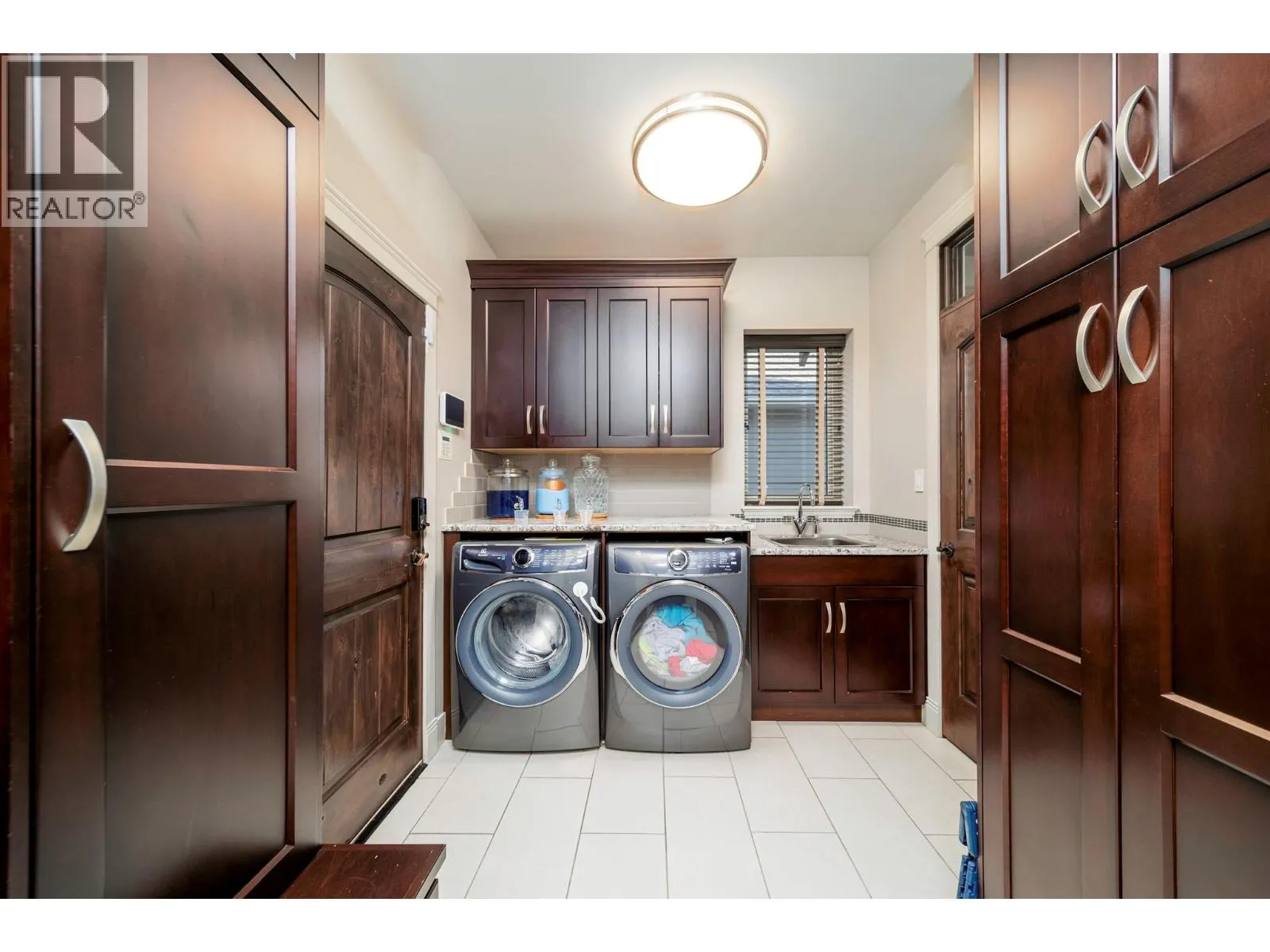 Rare Lot offering Commanding lake views and a refined, executive feel set the tone for this 5-bedroom, 4-bath single-family residence on a 0.18-acre freehold lot. Designed for both elevated everyday living and hosting at scale, the upper level features walnut hardwood floors, a striking two-sided gas fireplace, and open sight lines that extend to an upper deck with gas BBQ hookup and expansive lake views. The primary bedroom is positioned as a true retreat, with direct patio access and a spa-inspired 5-piece ensuite featuring heated floors and granite counters. A second bedroom and a heated-floor 3-piece bathroom complete the upper level, ideal for guests or home office use. The lower level is tailored for entertaining, anchored by a gas fireplace, wet bar, fridge and freezer combination, wine fridge, and a dedicated wine room. A media area with an upgraded screen and projector creates a natural gathering space, while three additional bedrooms and two bathrooms provide excellent separation for family or visitors. Walk out to the lower patio with hot and cold hose bib and gas line for seamless outdoor functionality. An insulated and heated 700+ sq.ft. three-car garage, along with parking for up to six vehicles on the driveway. A separate workshop is located beneath the garage and is accessed exclusively from the exterior along the side of the home. This home delivers presence, comfort, and flexibility in a premier West Kelowna setting. (id:27476)