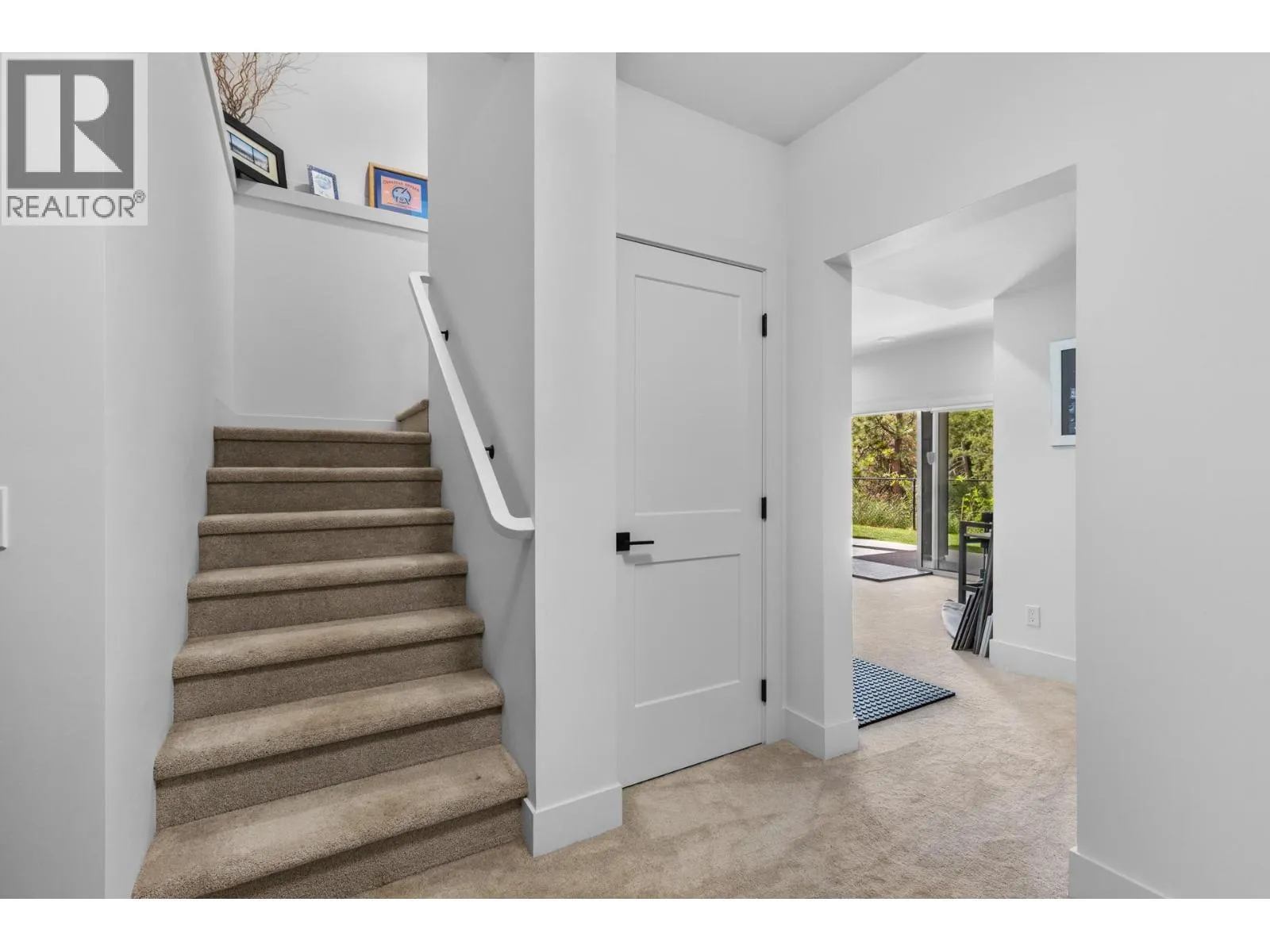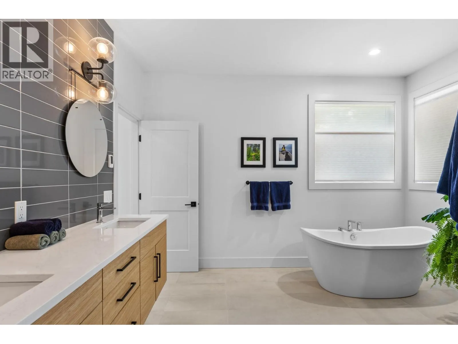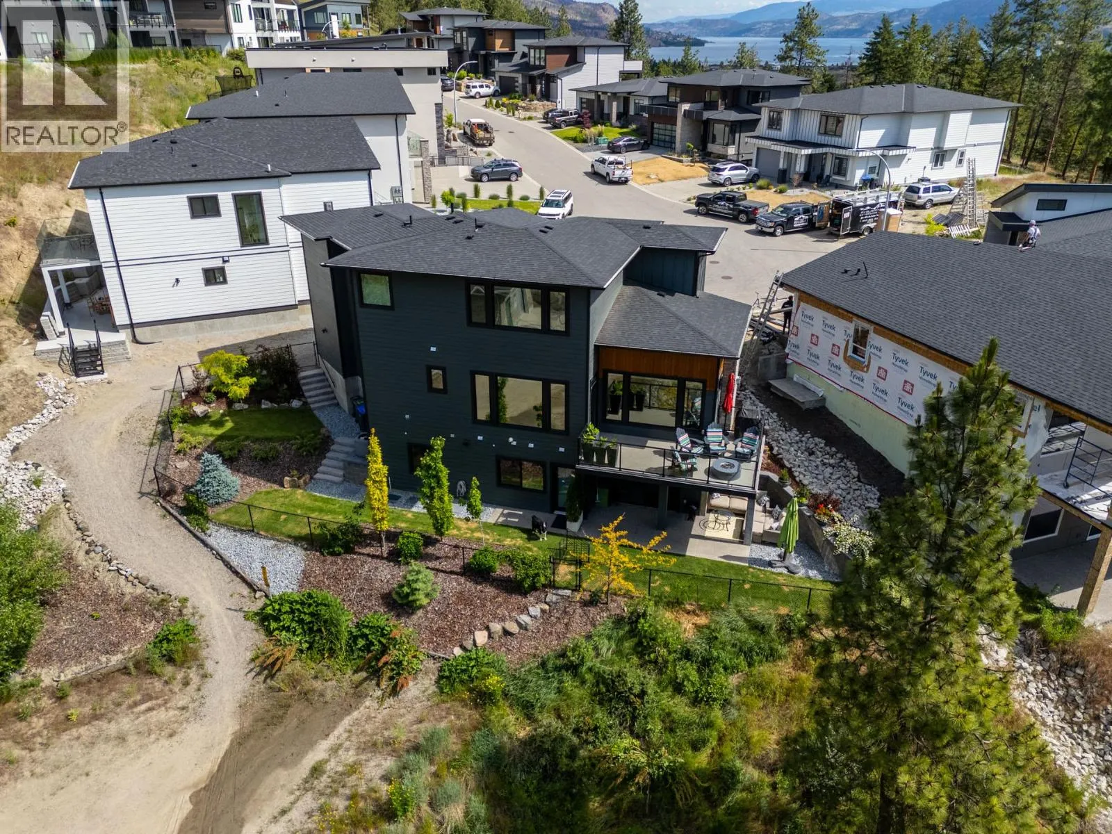 Discover this 2022-built, 3 level, 4-bedroom, 5-bathroom home in the desirable Keefe Creek community of West Kelowna Estates. Perfectly positioned on a quiet cul-de-sac and backing onto parkland, this nearly 3,000 sq. ft. home offers rare privacy, tranquil views, and immediate access to a trail which is ideal for dog walking and nature lovers. The main level welcomes you with a sleek, open-concept design highlighted by oversized windows, wide-plank hardwood flooring, and a striking gas fireplace. The designer kitchen features quartz counters, a gas range, tiled backsplash, and a spacious island with a waterfall edge. Step outside to a balcony overlooking the well maintained yard and natural green space beyond. Upstairs, unwind in the luxurious primary suite with a walk-in closet and spa-inspired ensuite bathroom complete with two sinks, a tiled shower, and a soaker tub. Two additional bedrooms and a full bathroom round out the upper level. Downstairs offers a large recreation/media room, powder room, and a fully self-contained 1-bedroom suite with its own entrance that is ideal for extended family or rental income. Located just minutes to downtown Kelowna or into West Kelowna schools, grocery stores, amenities and hiking, this is stylish living with space, serenity, and income potential. (id:27476)