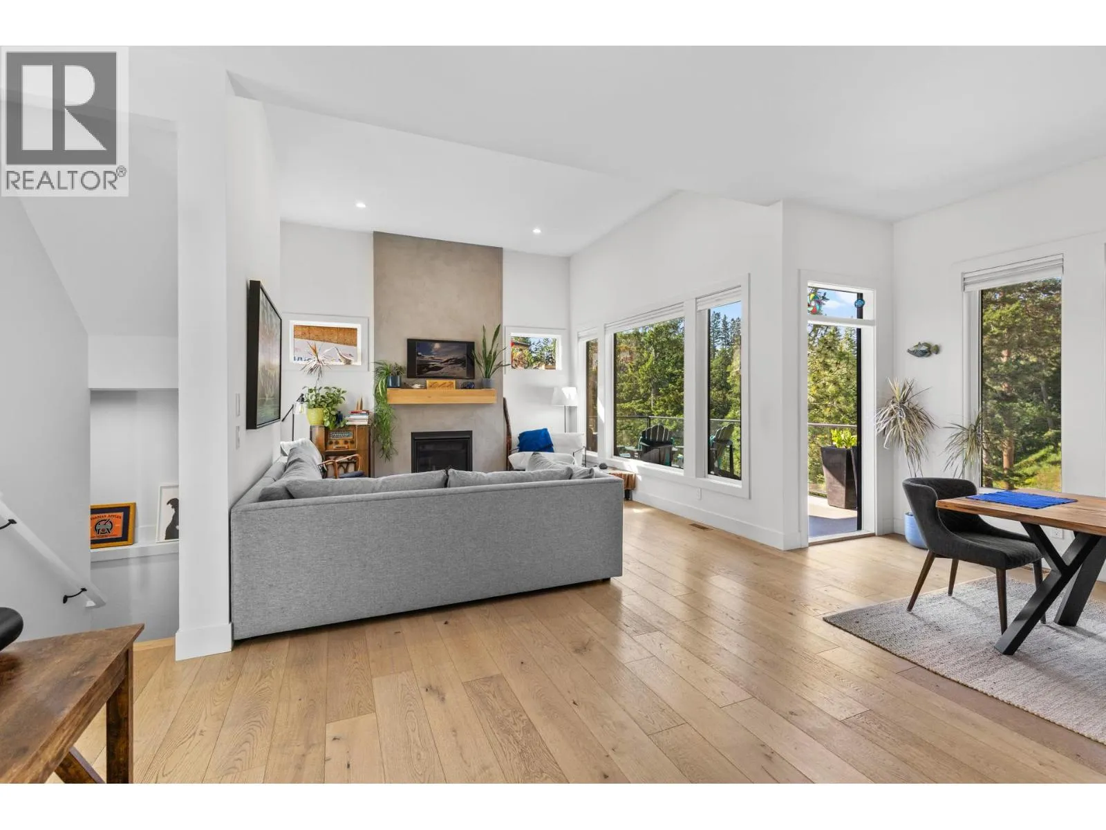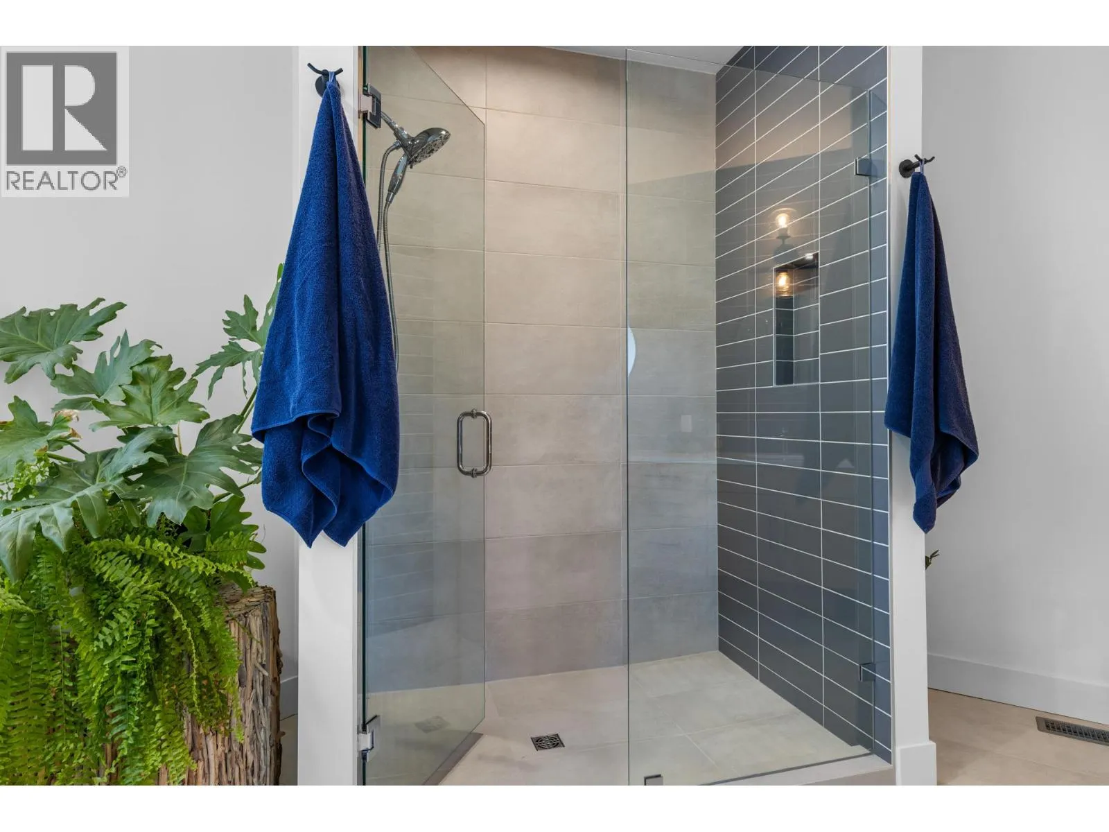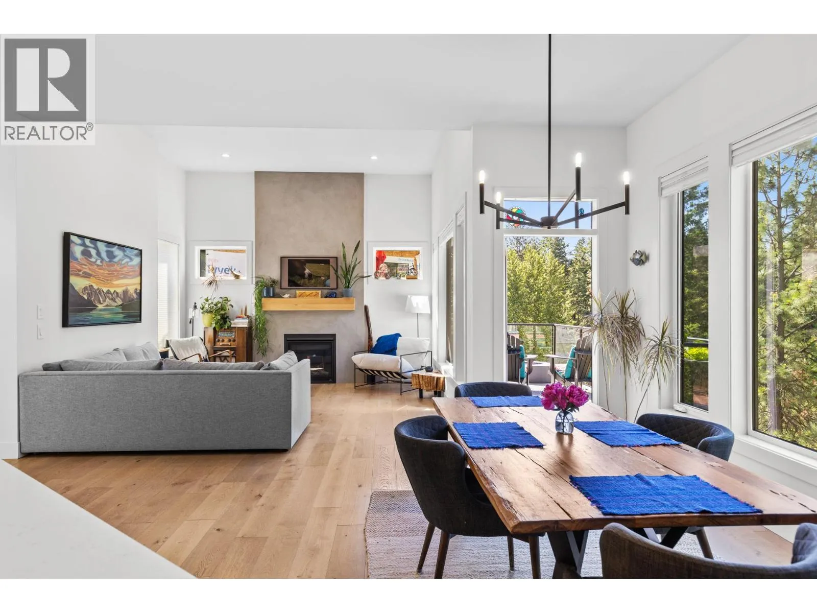 Discover this 2022-built, 3 level, 4-bedroom, 5-bathroom home in the desirable Keefe Creek community of West Kelowna Estates. Perfectly positioned on a quiet cul-de-sac and backing onto parkland, this nearly 3,000 sq. ft. home offers rare privacy, tranquil views, and immediate access to a trail which is ideal for dog walking and nature lovers. The main level welcomes you with a sleek, open-concept design highlighted by oversized windows, wide-plank hardwood flooring, and a striking gas fireplace. The designer kitchen features quartz counters, a gas range, tiled backsplash, and a spacious island with a waterfall edge. Step outside to a balcony overlooking the well maintained yard and natural green space beyond. Upstairs, unwind in the luxurious primary suite with a walk-in closet and spa-inspired ensuite bathroom complete with two sinks, a tiled shower, and a soaker tub. Two additional bedrooms and a full bathroom round out the upper level. Downstairs offers a large recreation/media room, powder room, and a fully self-contained 1-bedroom suite with its own entrance that is ideal for extended family or rental income. Located just minutes to downtown Kelowna or into West Kelowna schools, grocery stores, amenities and hiking, this is stylish living with space, serenity, and income potential. (id:27476)
